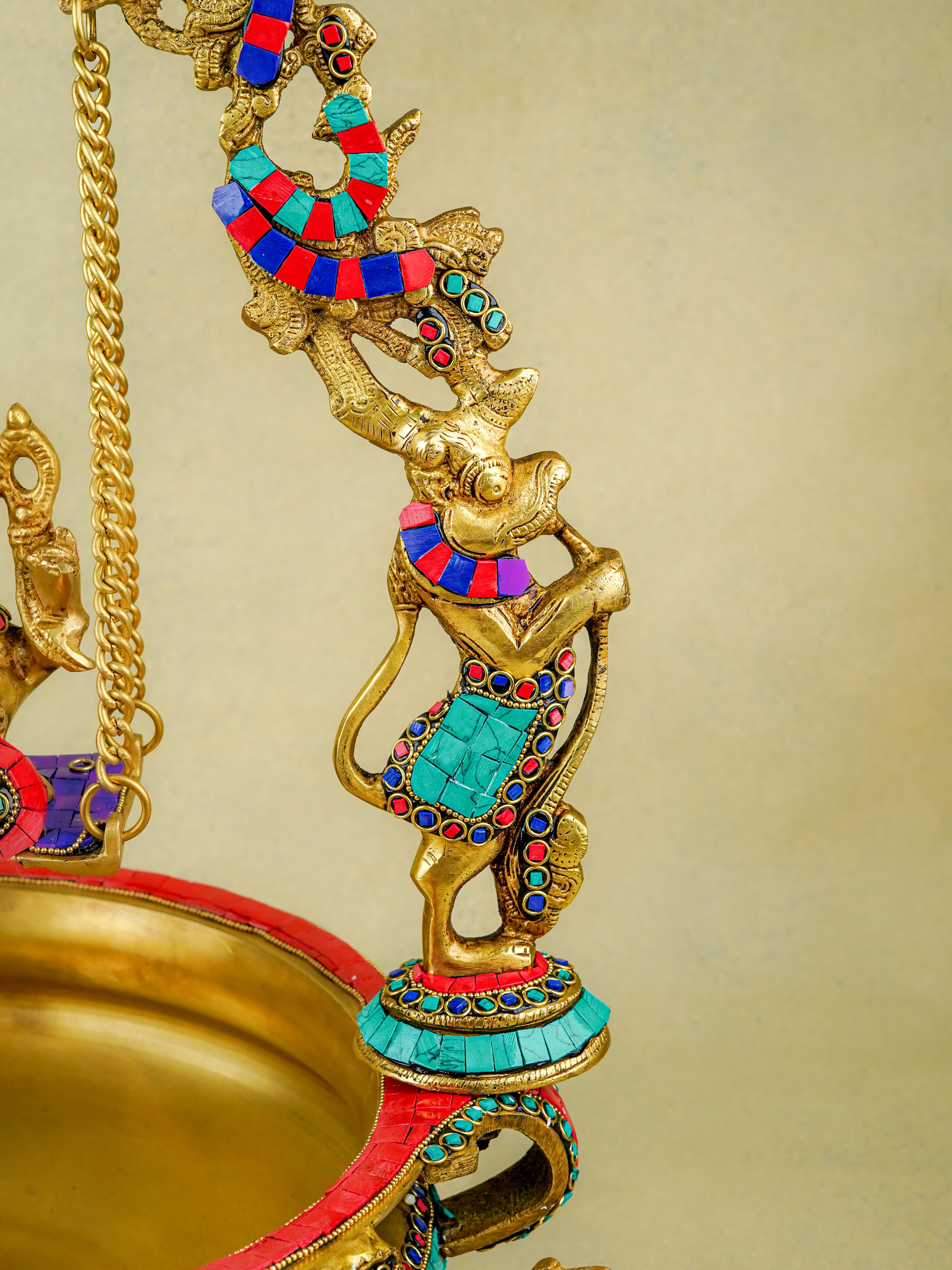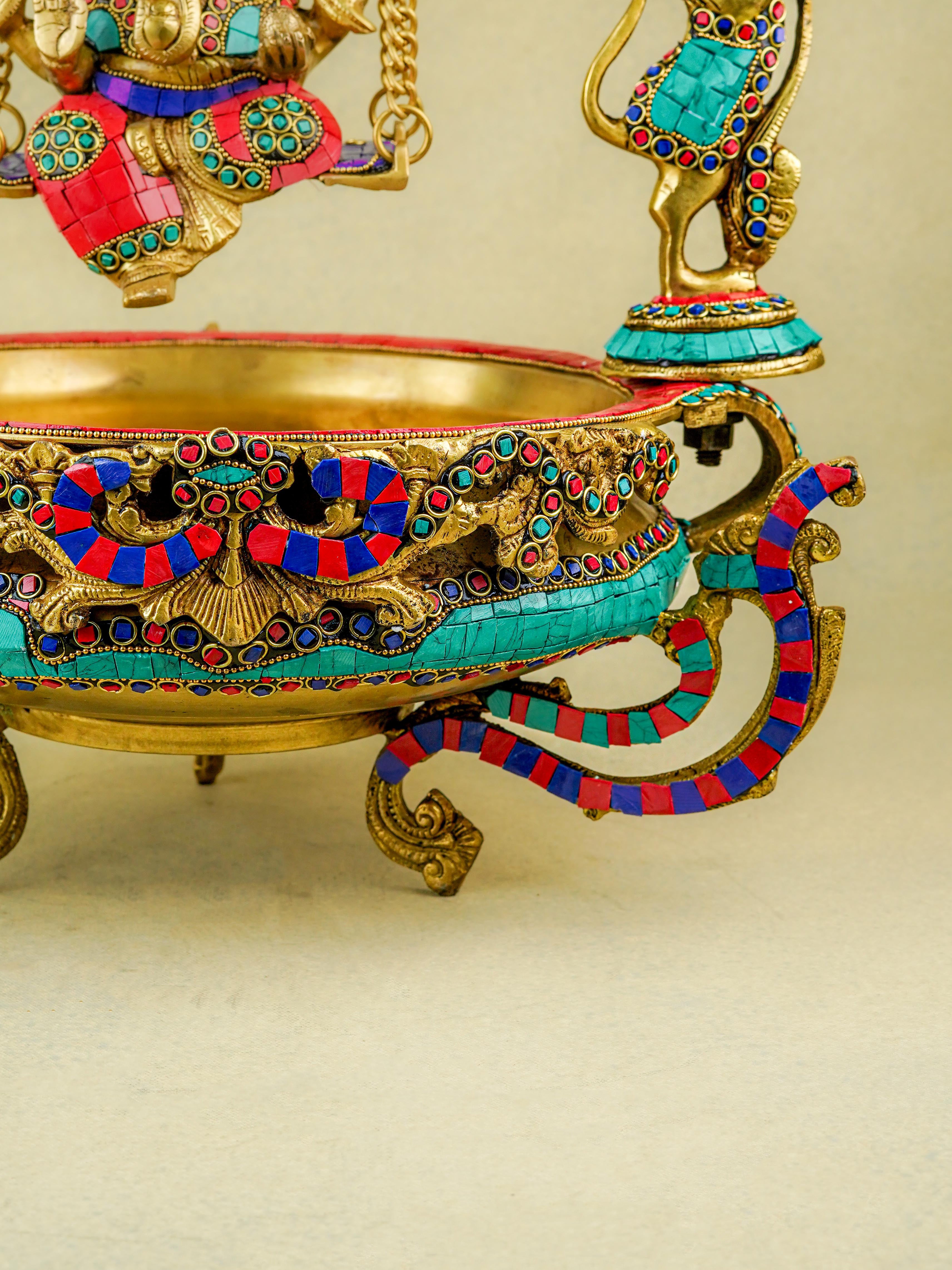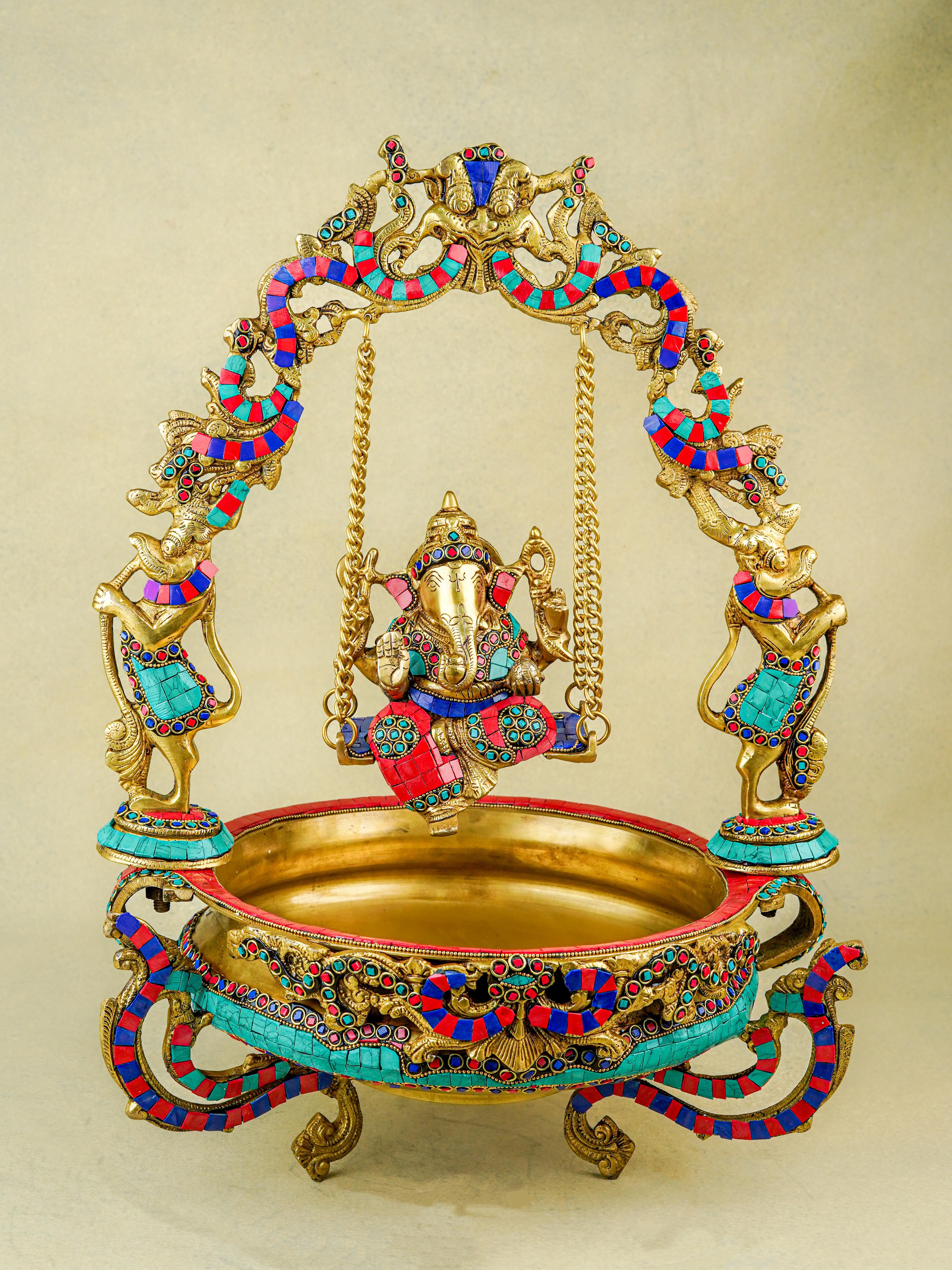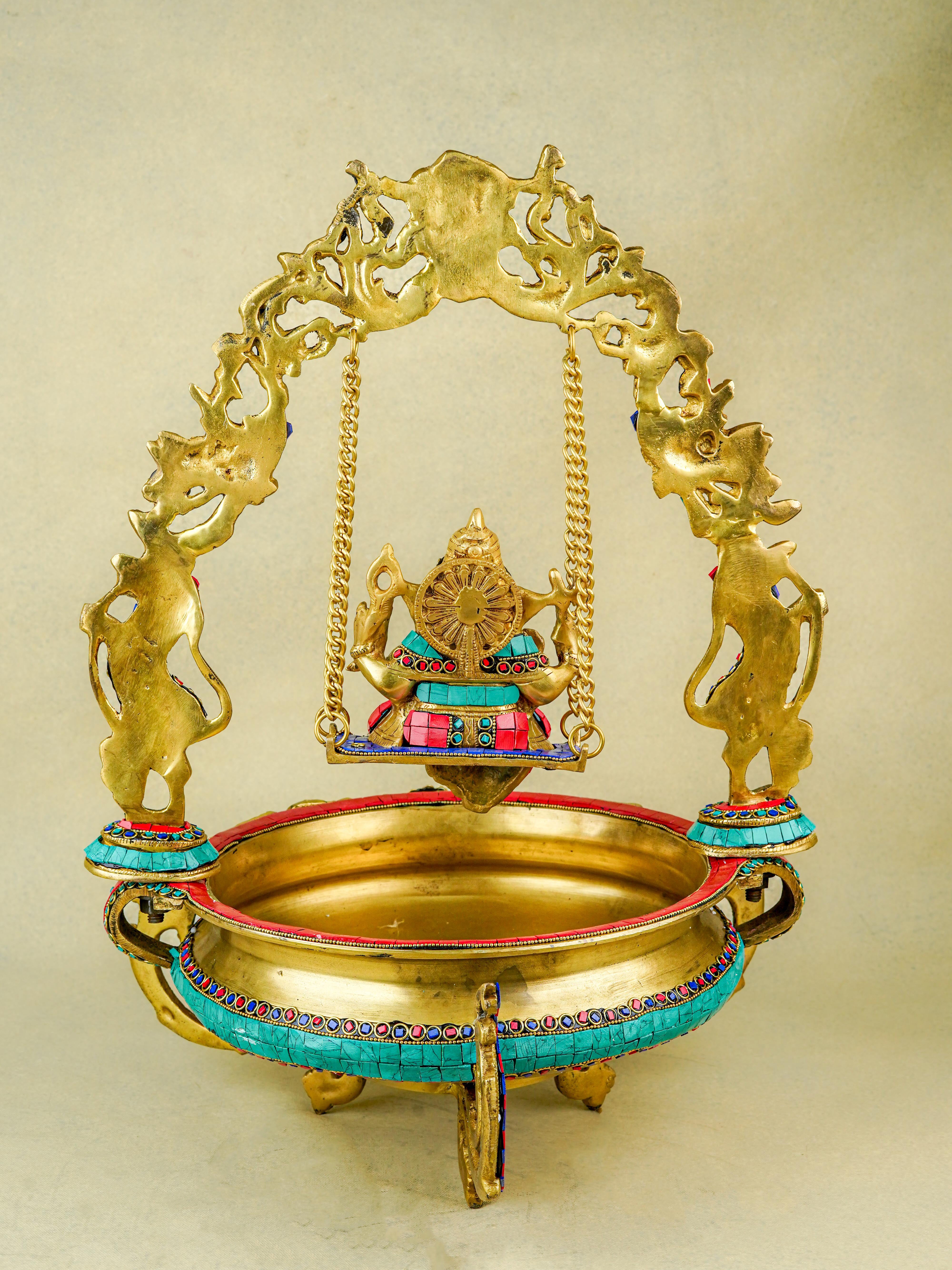 Brass Jhoola Ganesha with Urli Stonework - 21 inch - WL5667