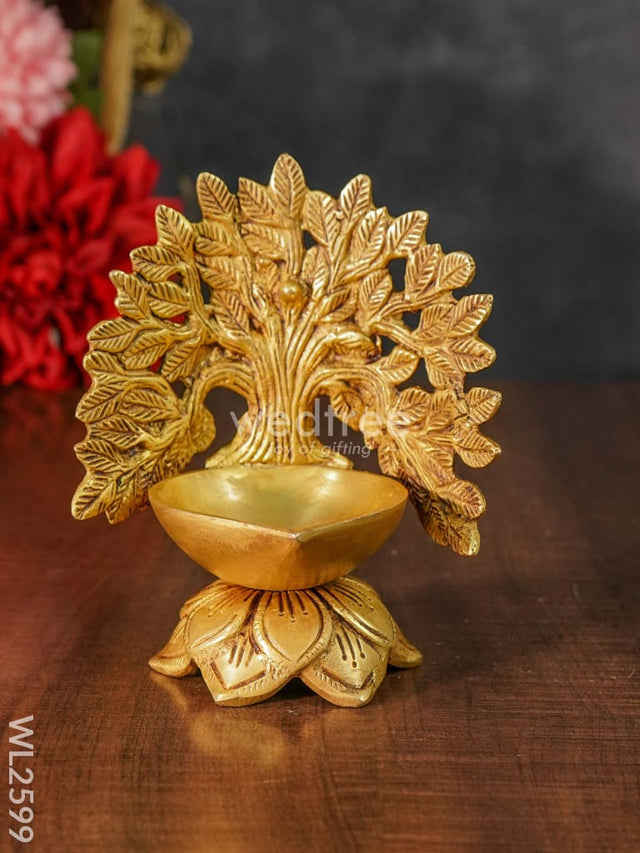 Brass Kalpavriksha Tree Diya with Lotus Base - WL2599