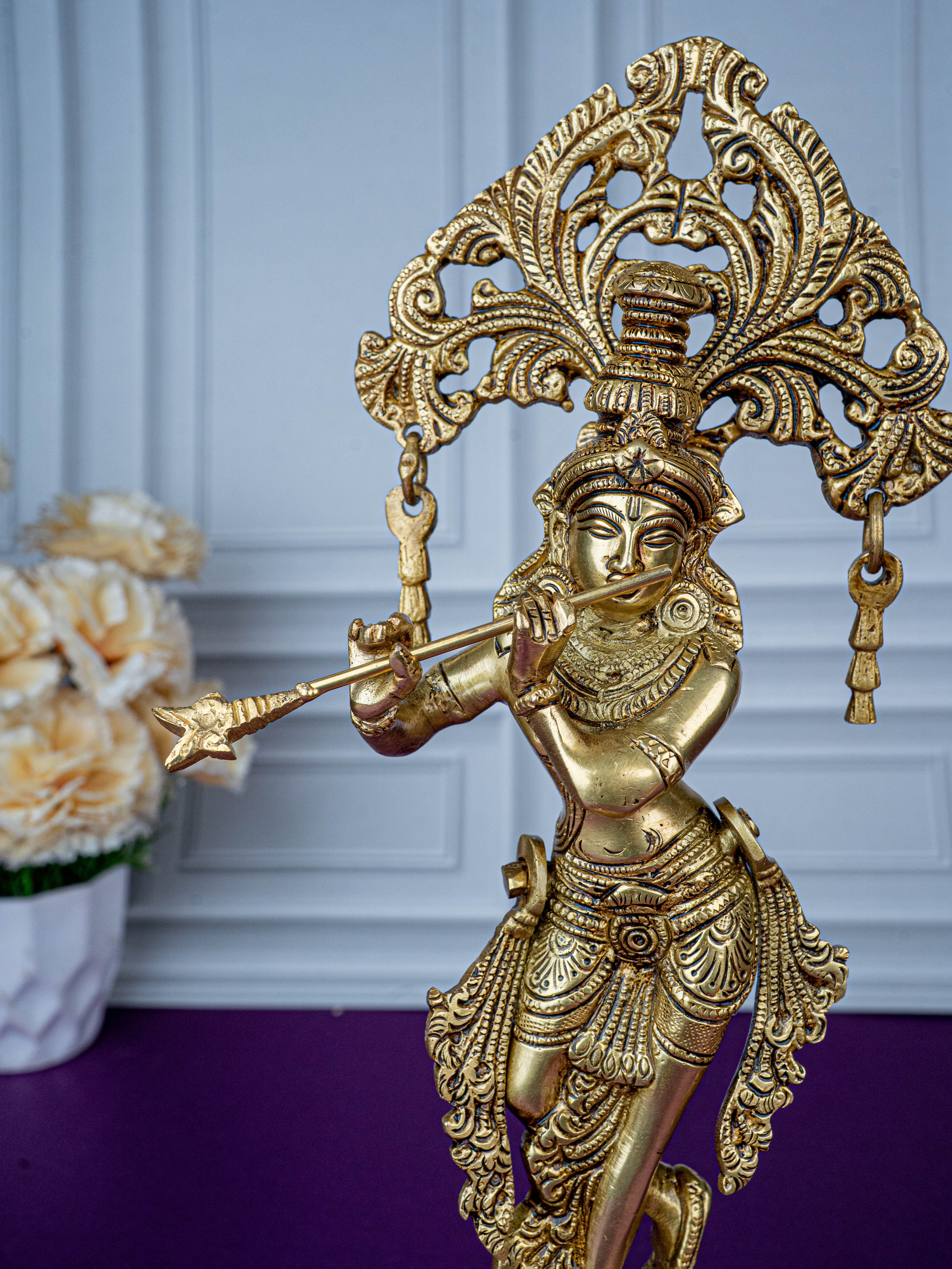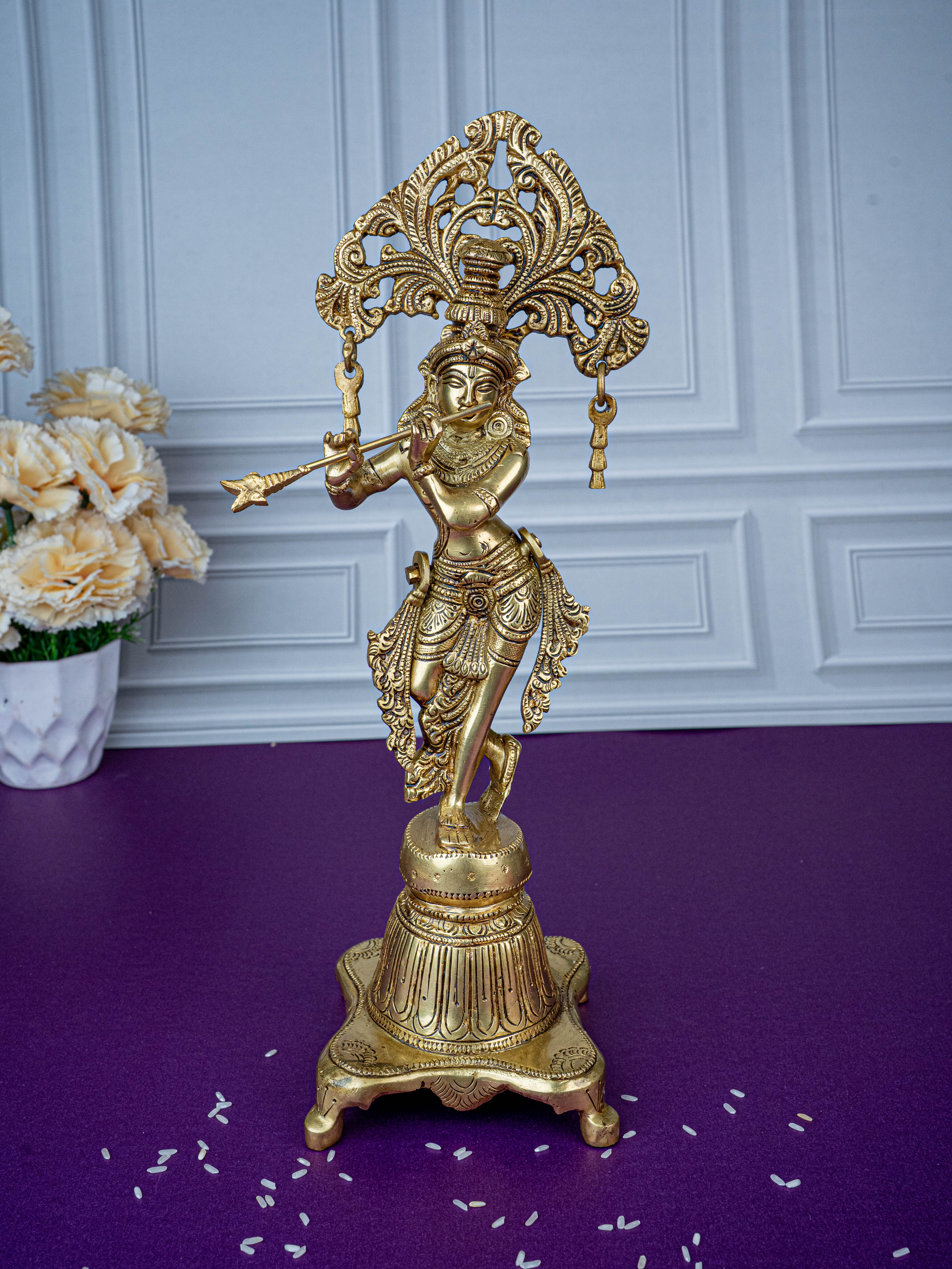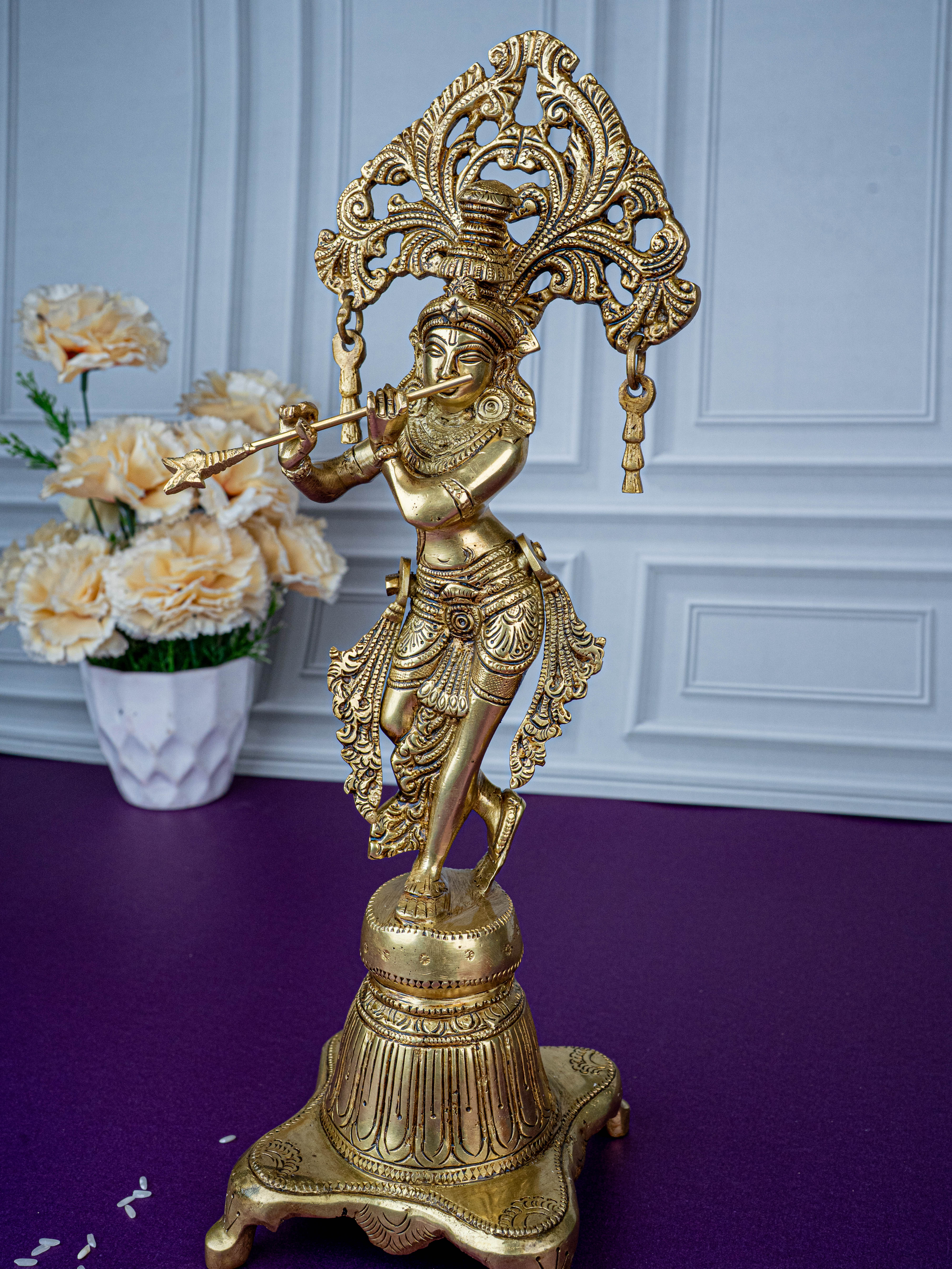 - Beautifully Crafted Idol of Lord Krishna, a Revered Deity in Hinduism, known for his Divine Playfulness, Wisdom, and Musical Charm.
