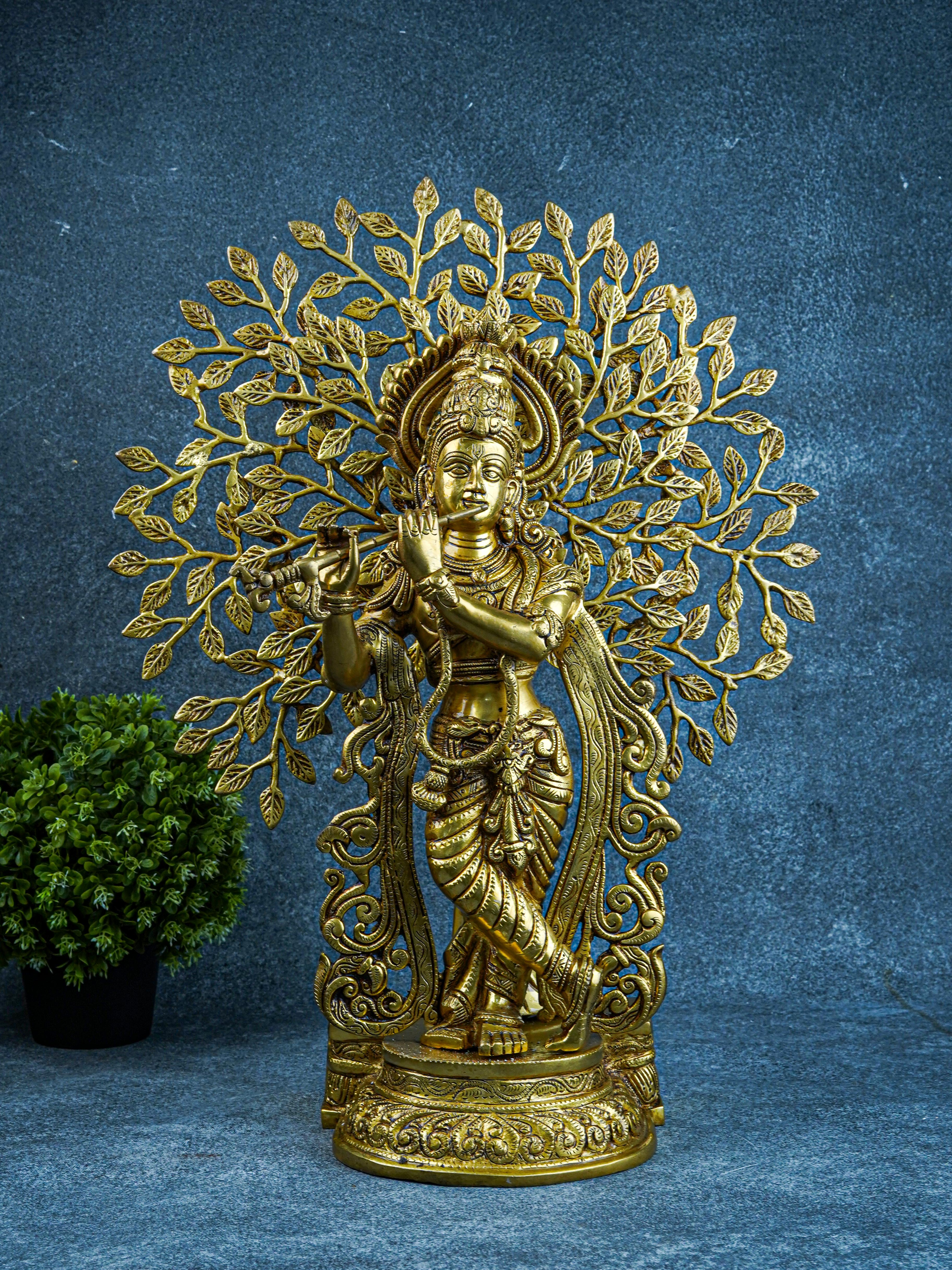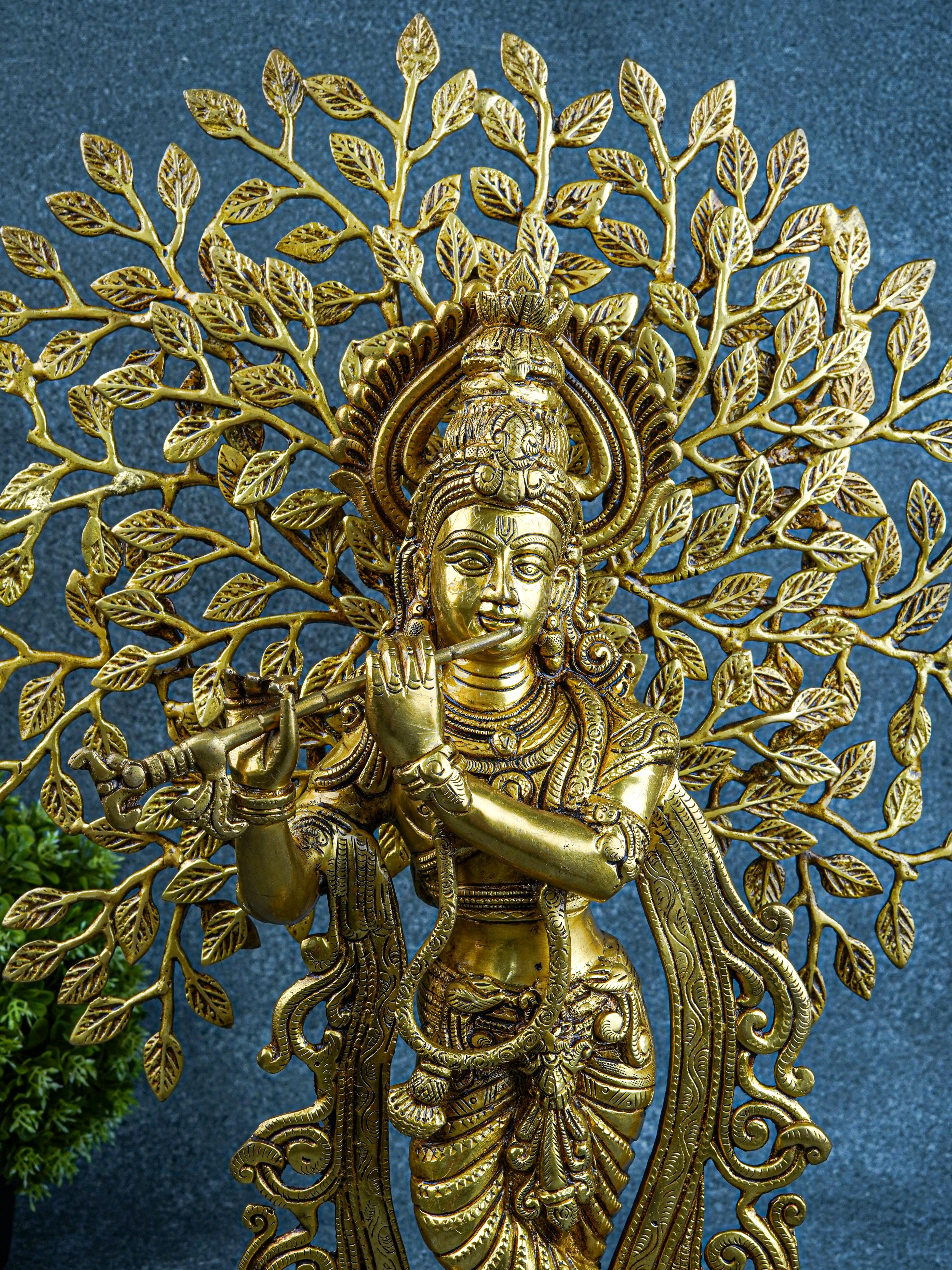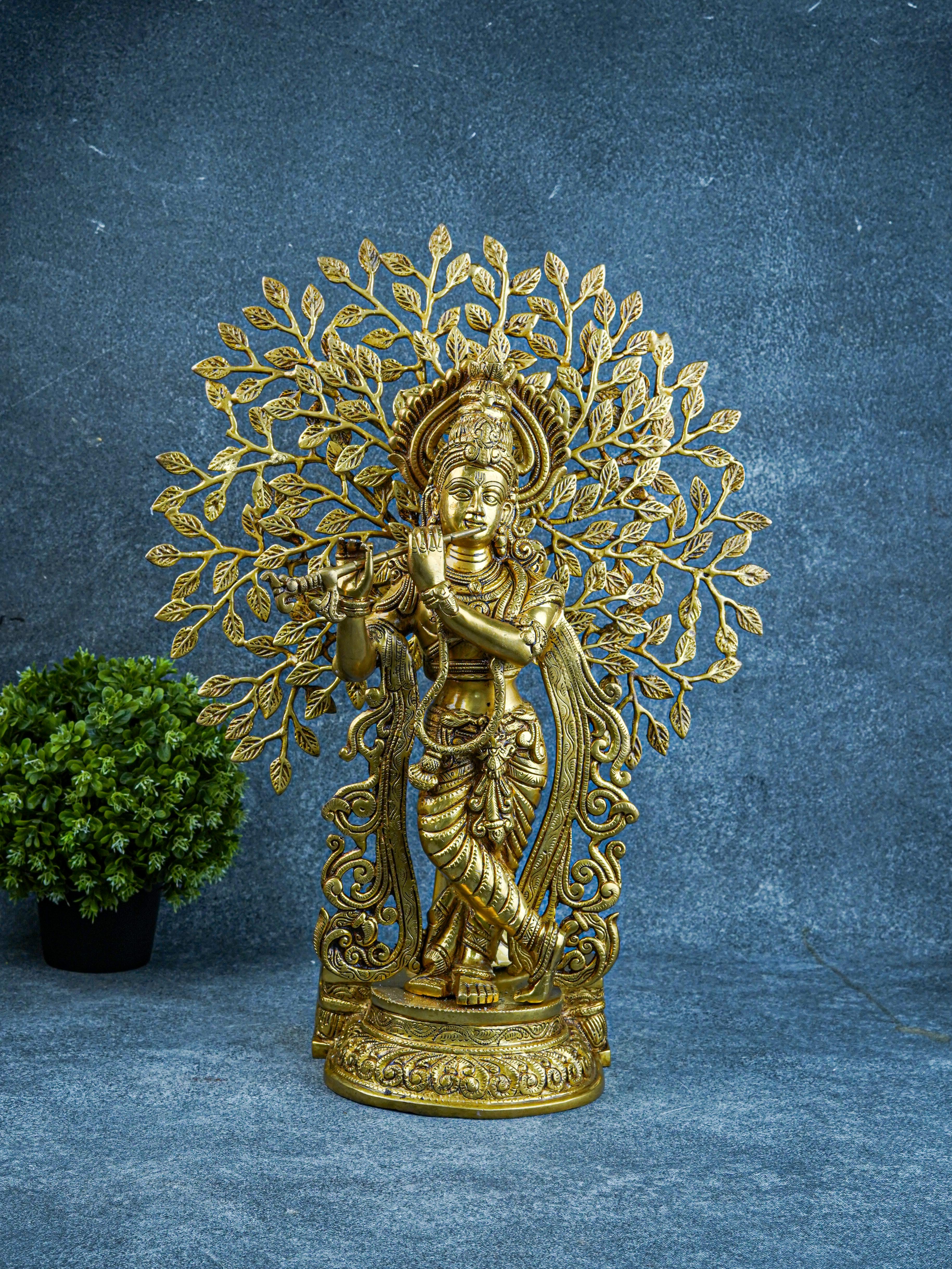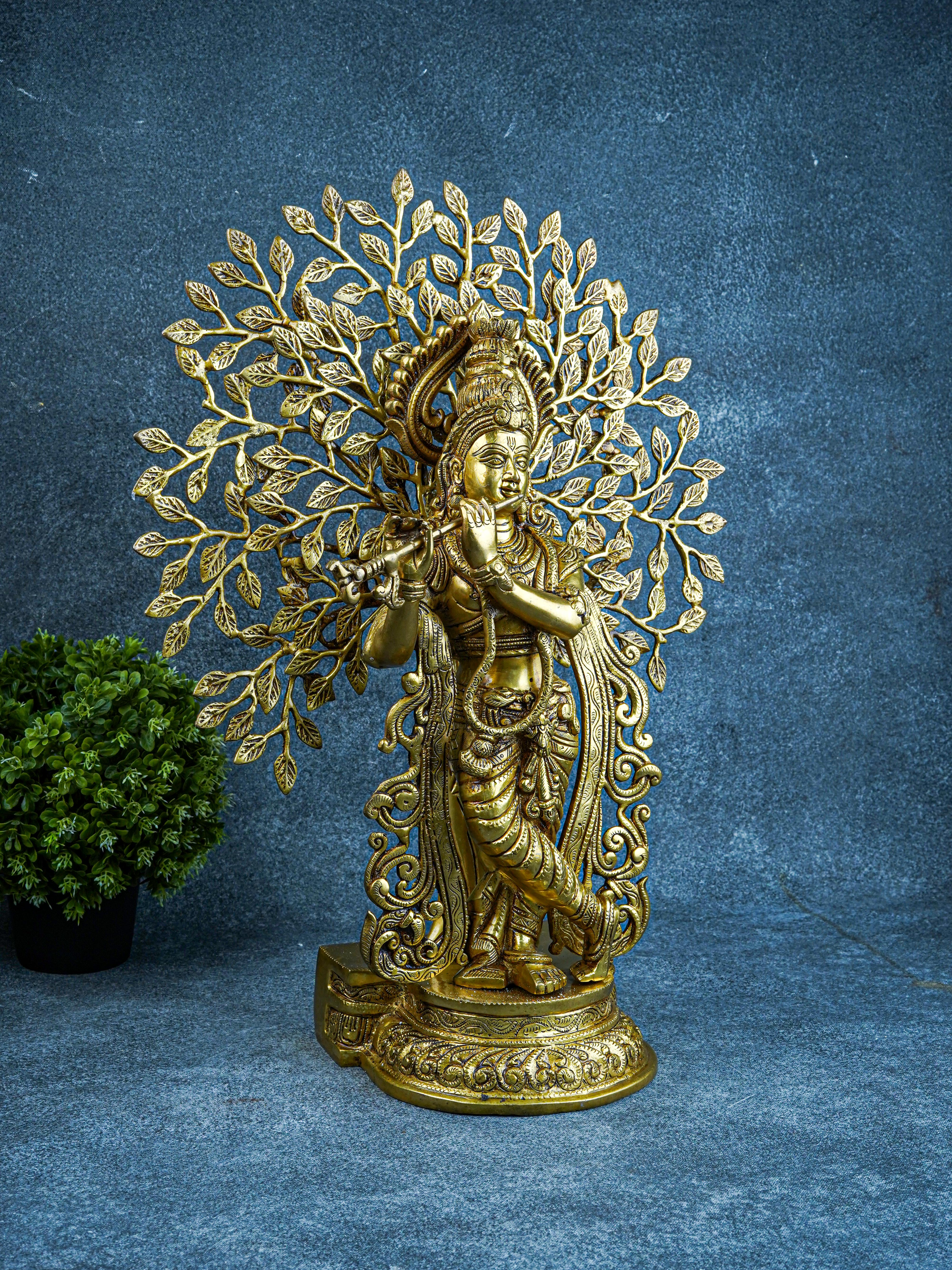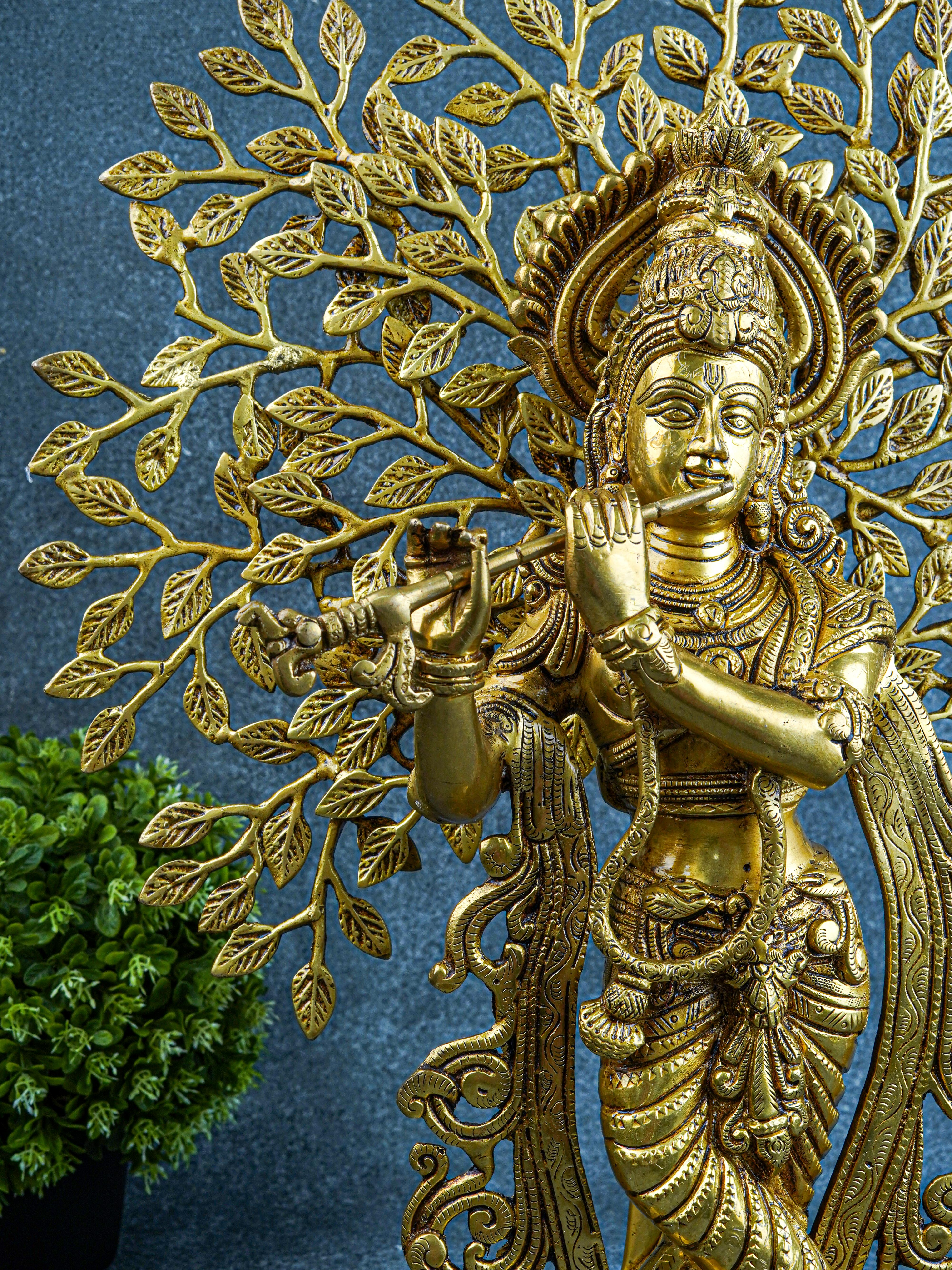 Brass Murali Krishna with Kalpavriksha Tree - 21 inch - WL5568