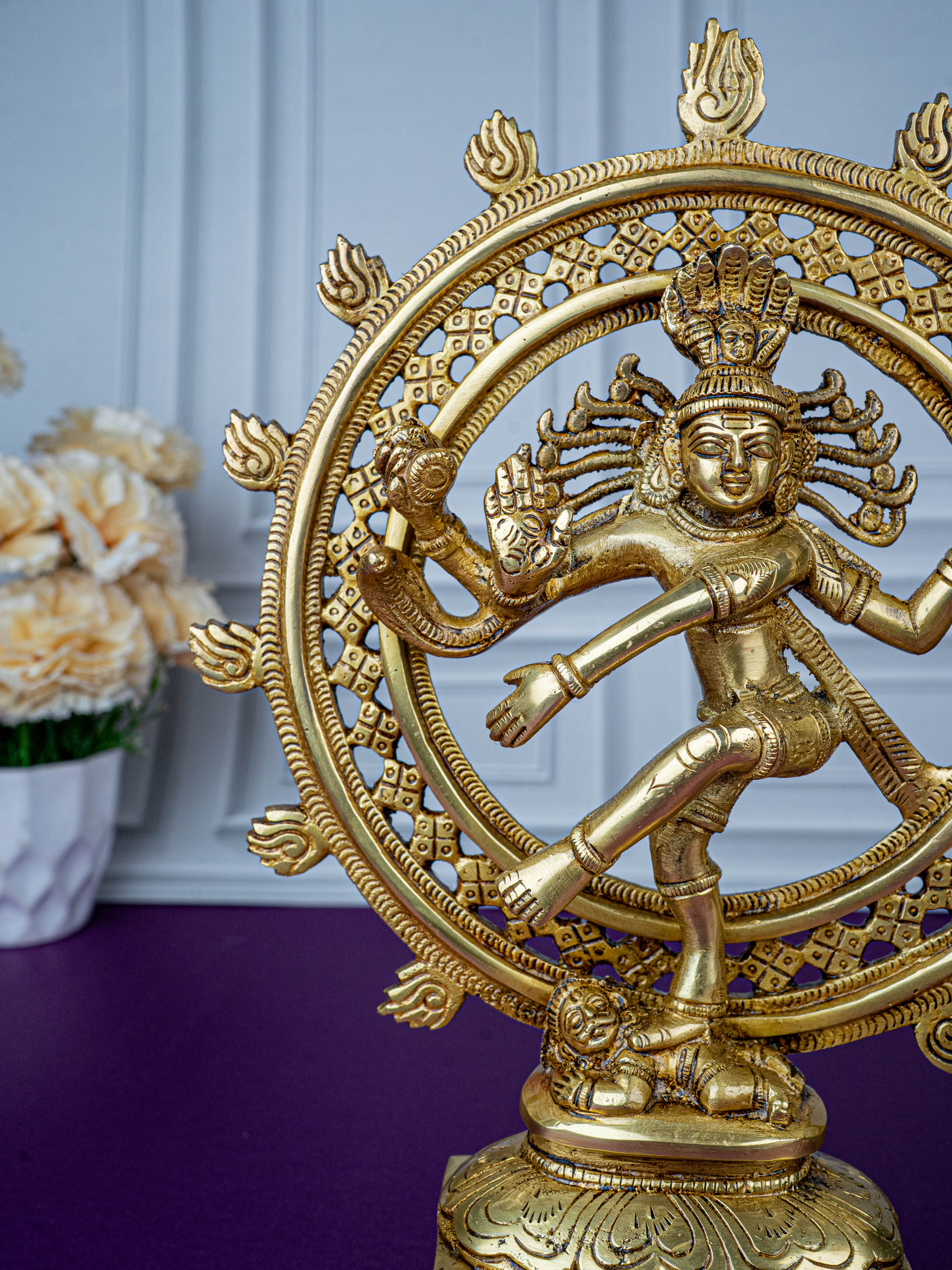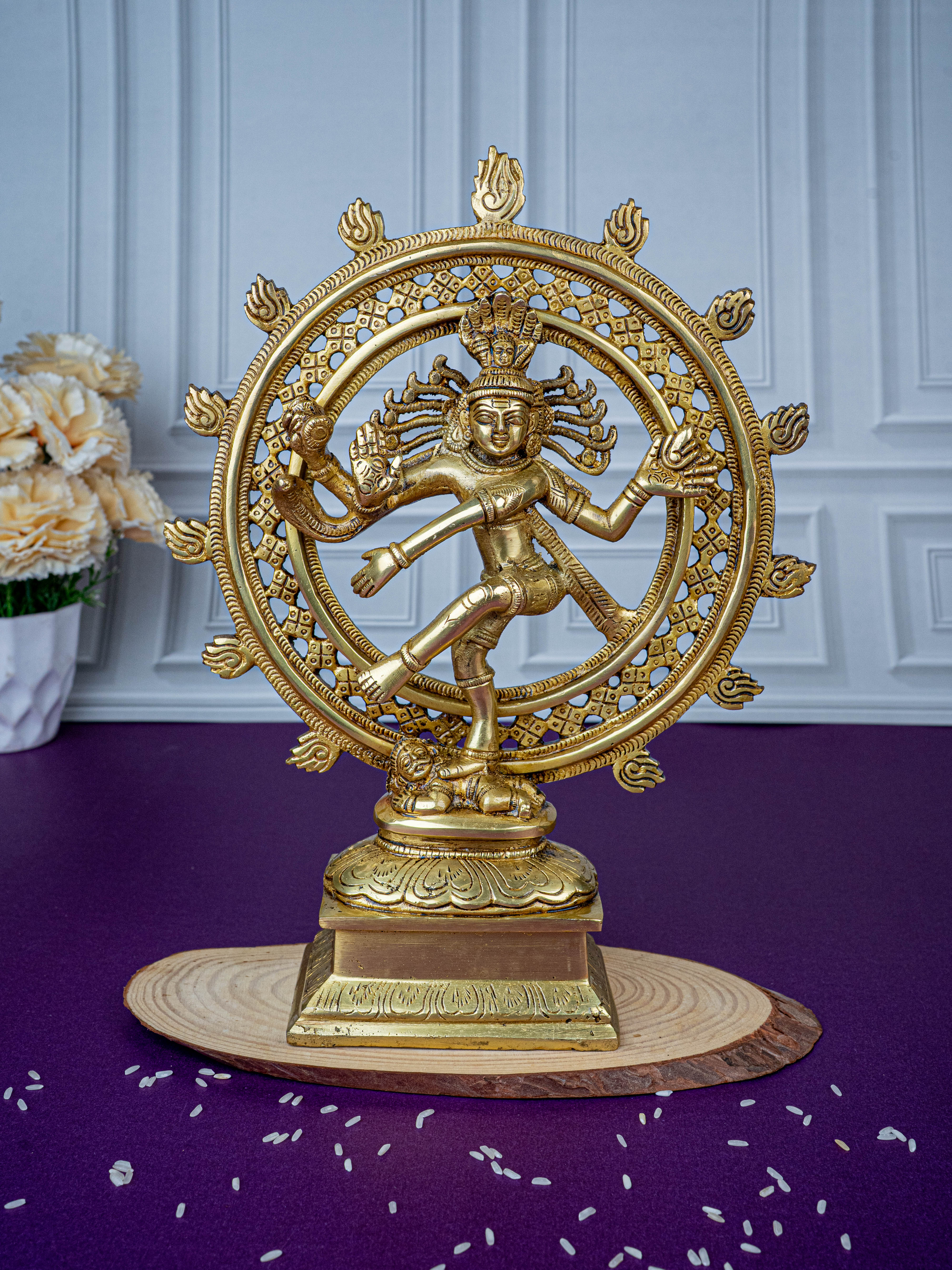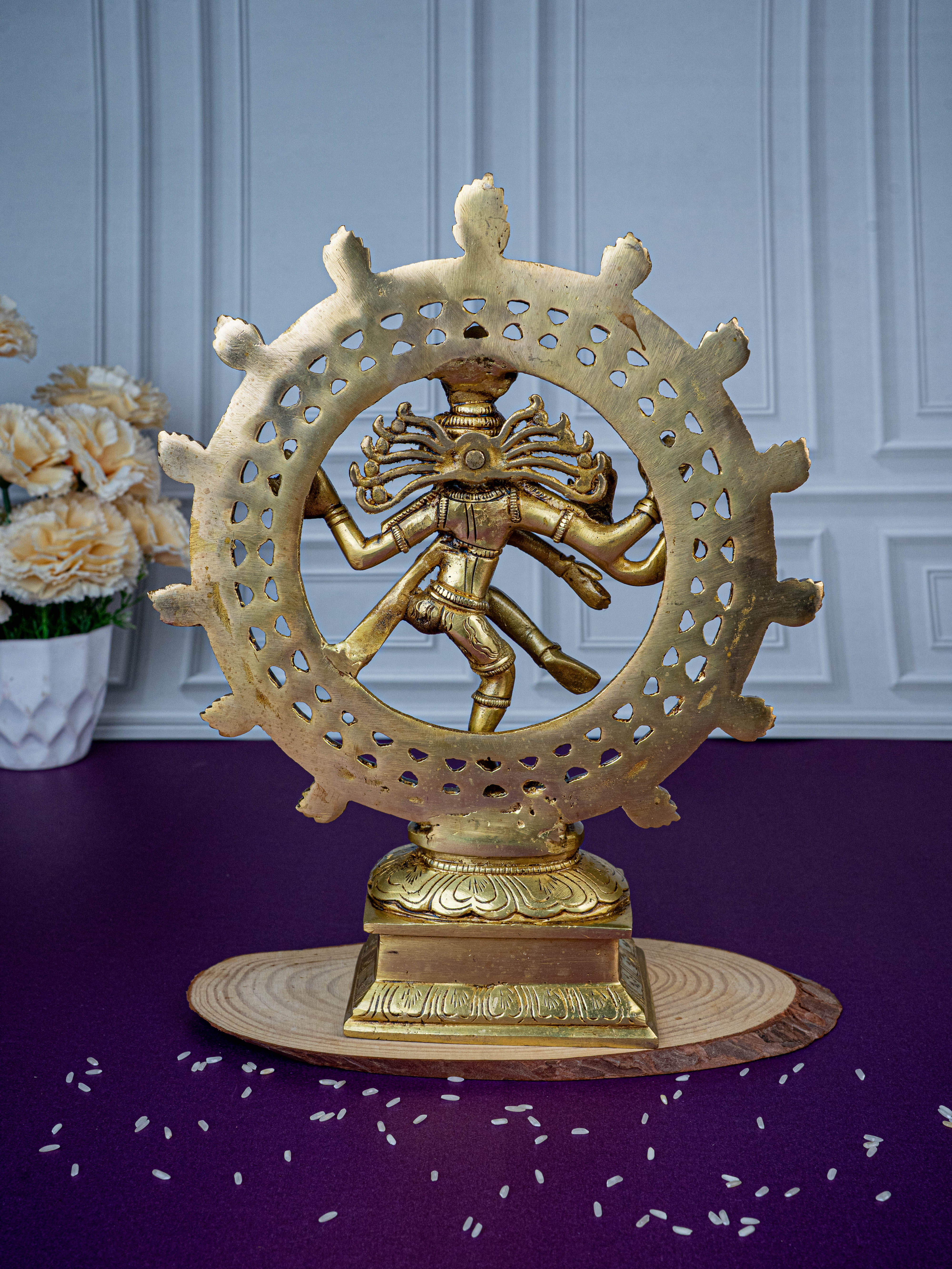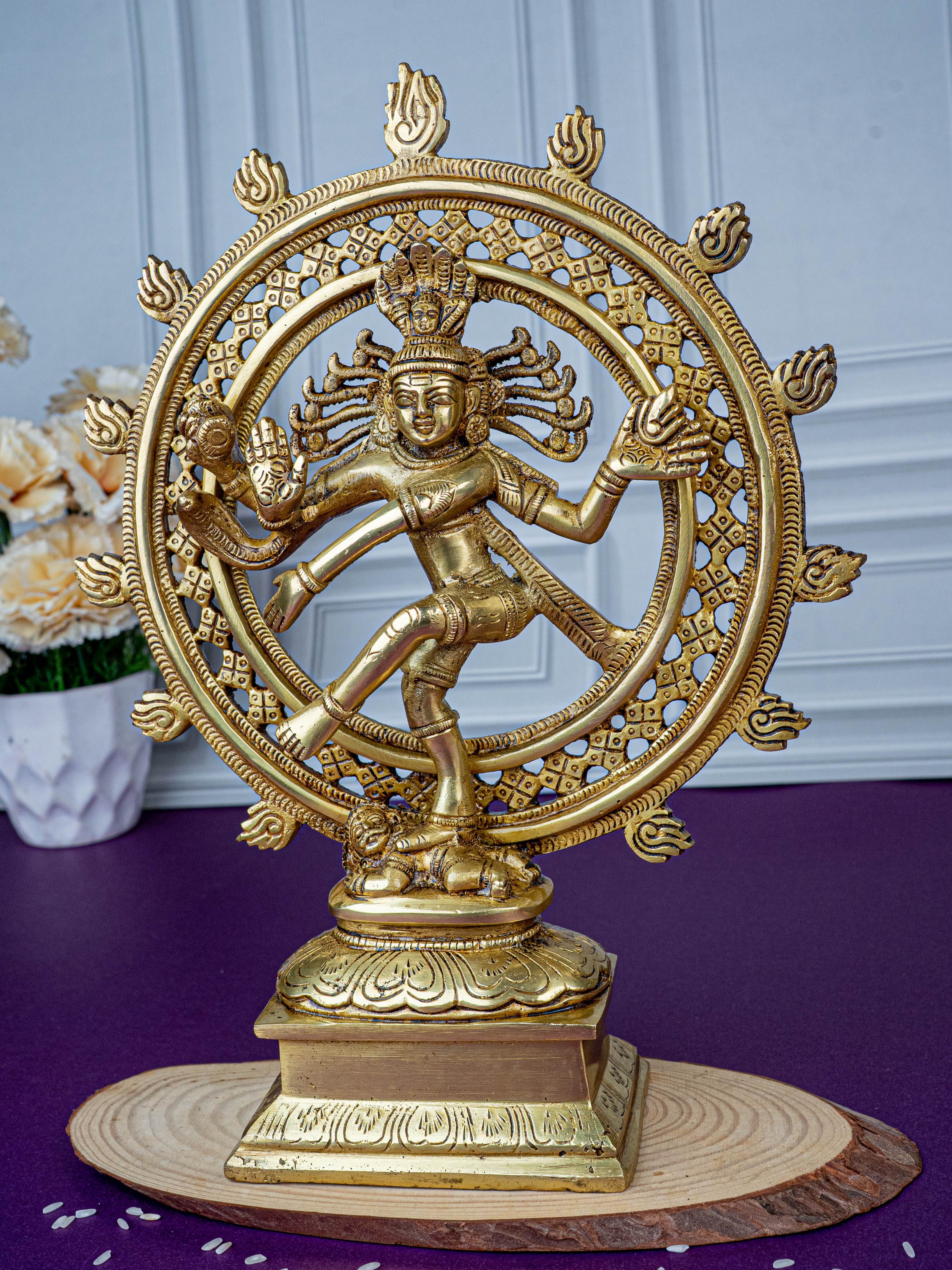 - It features Lord Nataraja fitted to a rectangular pedestal with an intricately carved halo behind.