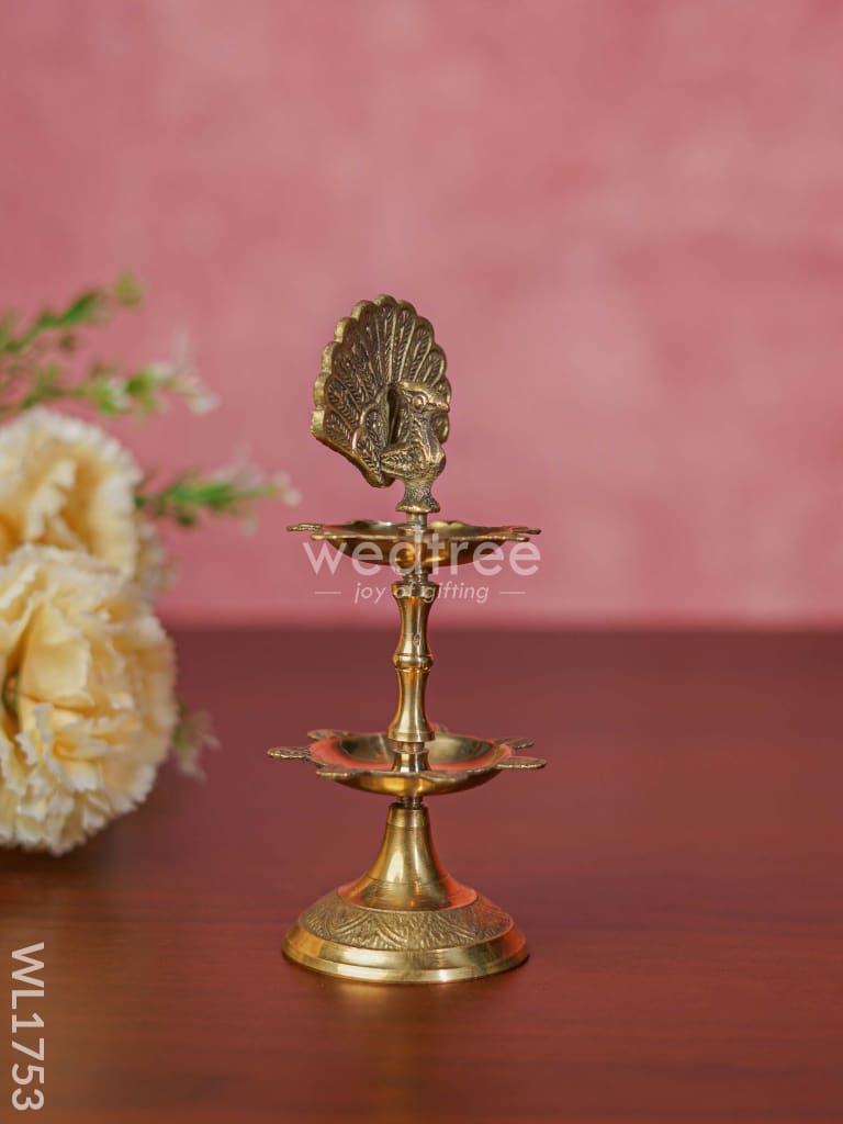 - It is a 2-Step Vilakku with 7-Face Diya and has a beautiful Peacock sculpt mount on the top.