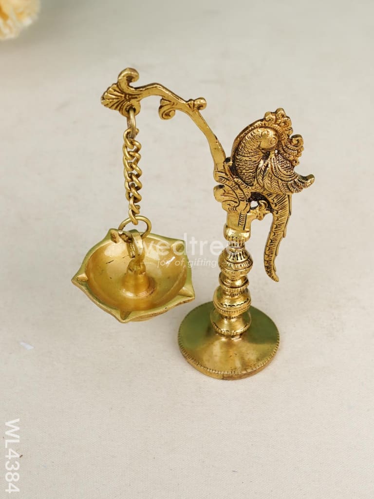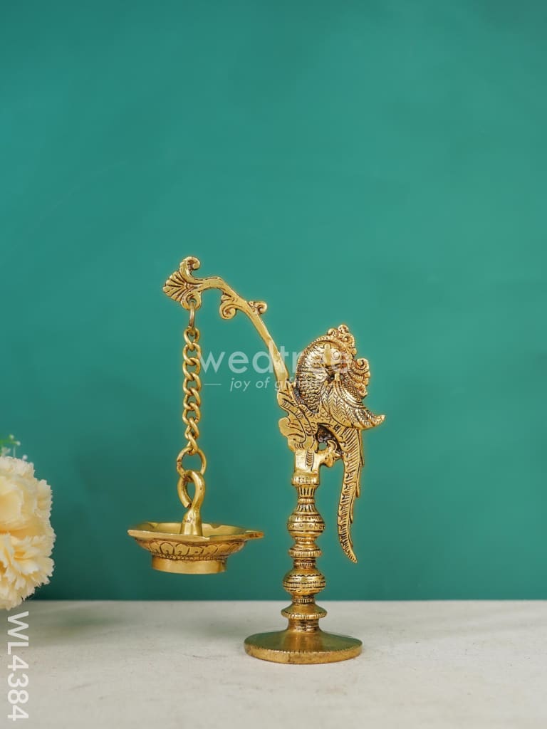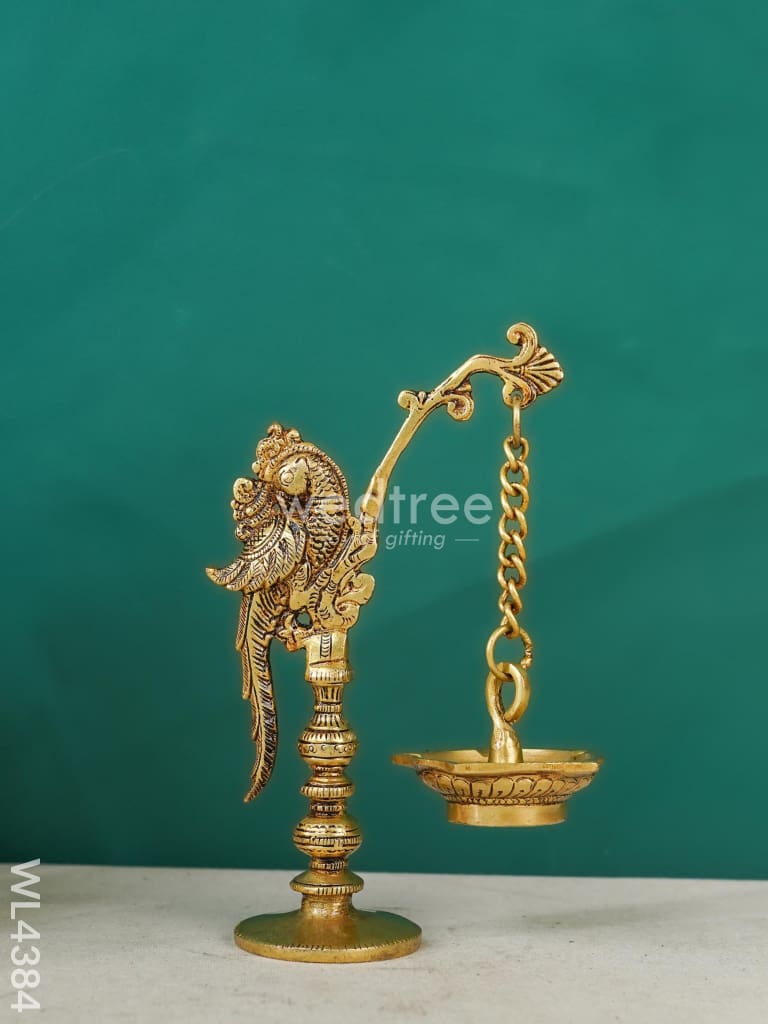 - Featuring the Brass Peacock Stand Hanging Diya is a stunning traditional oil lamp crafted from high-quality brass.