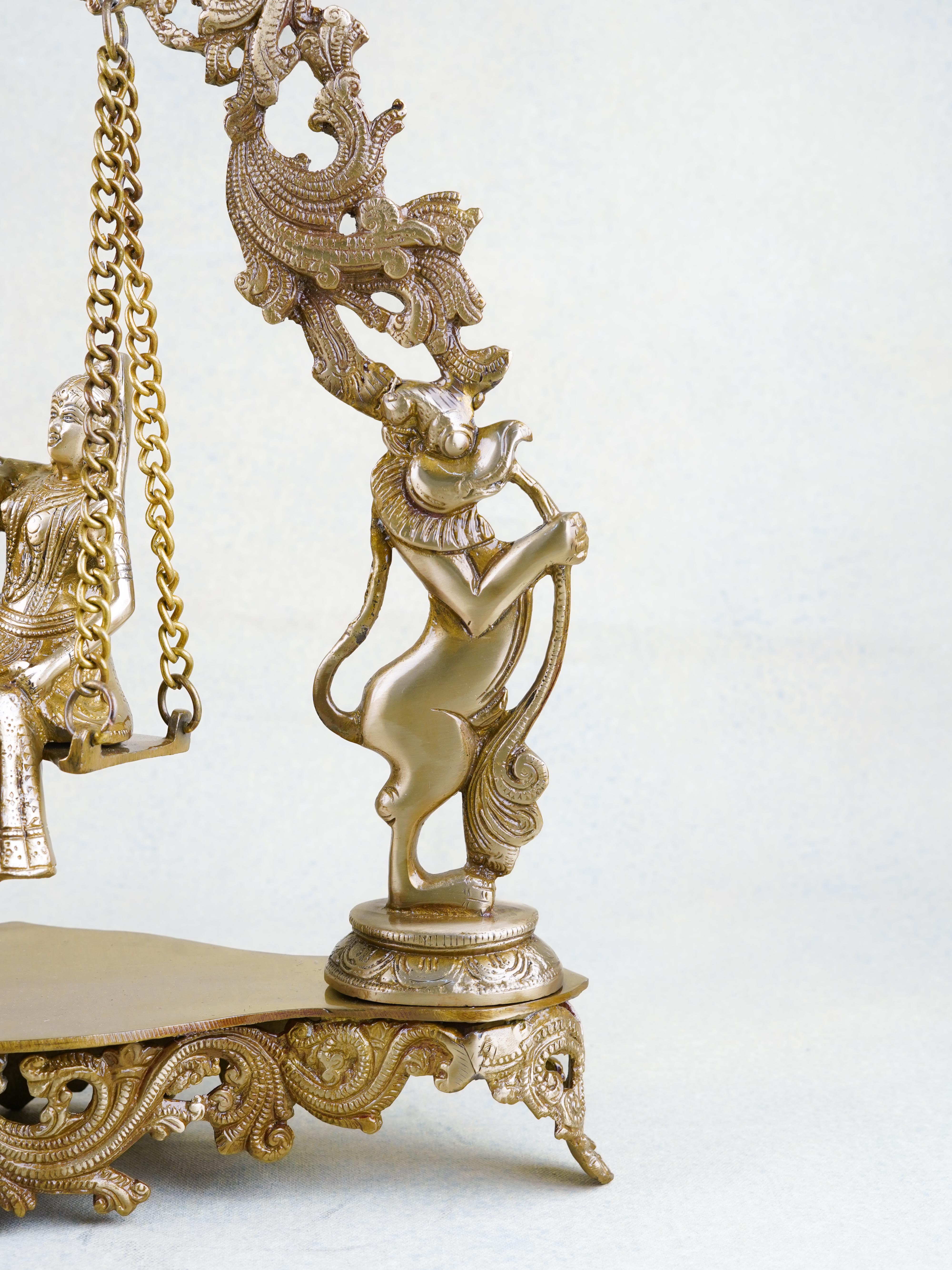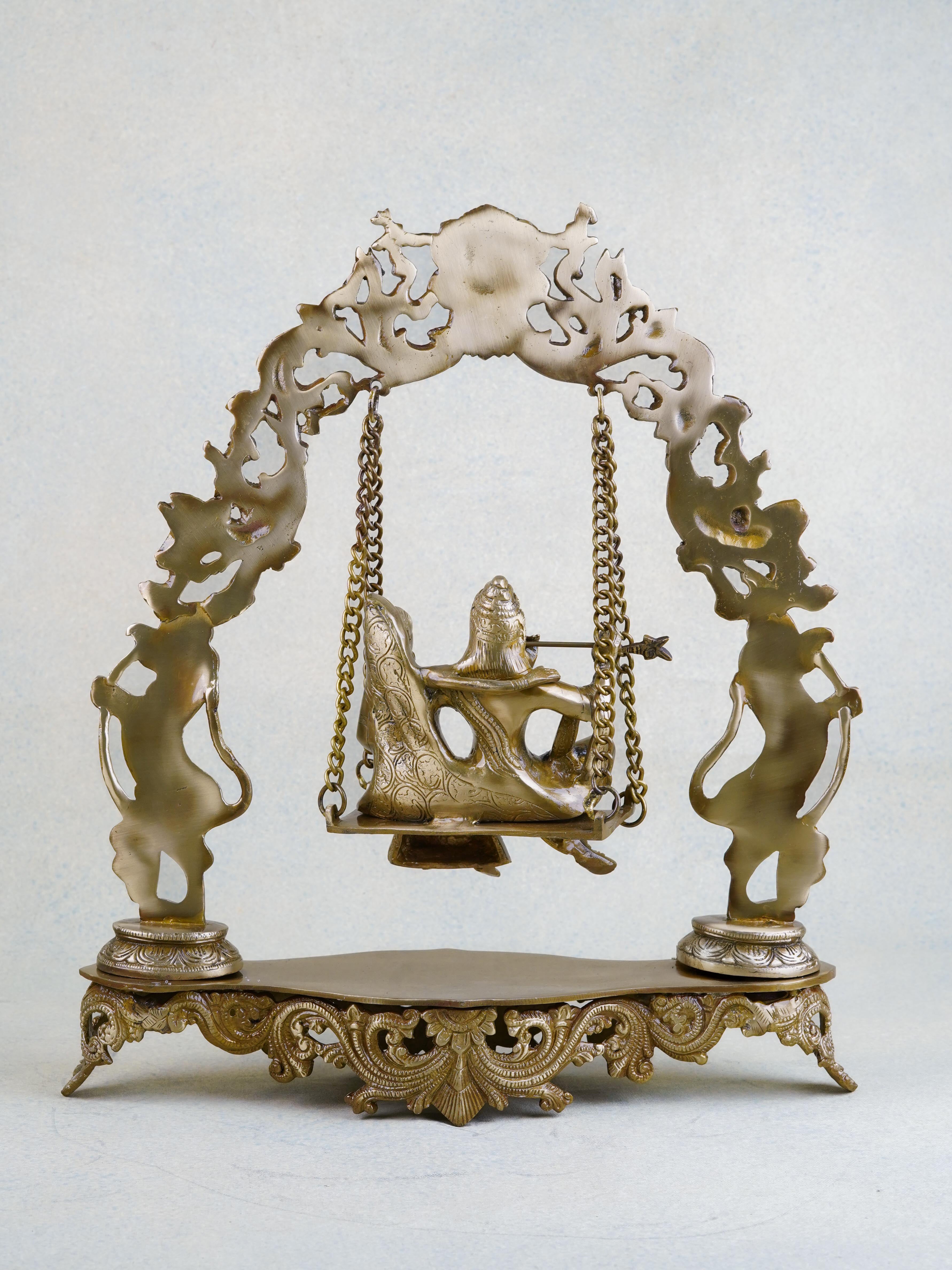 This exquisite Brass Radha Krishna Swing is a perfect example of traditional Indian handicraft. Crafted with solid brass, it makes a timeless asset that will last for generations. Intricate design work and detailed embellishments make this a stunning addition to any home.