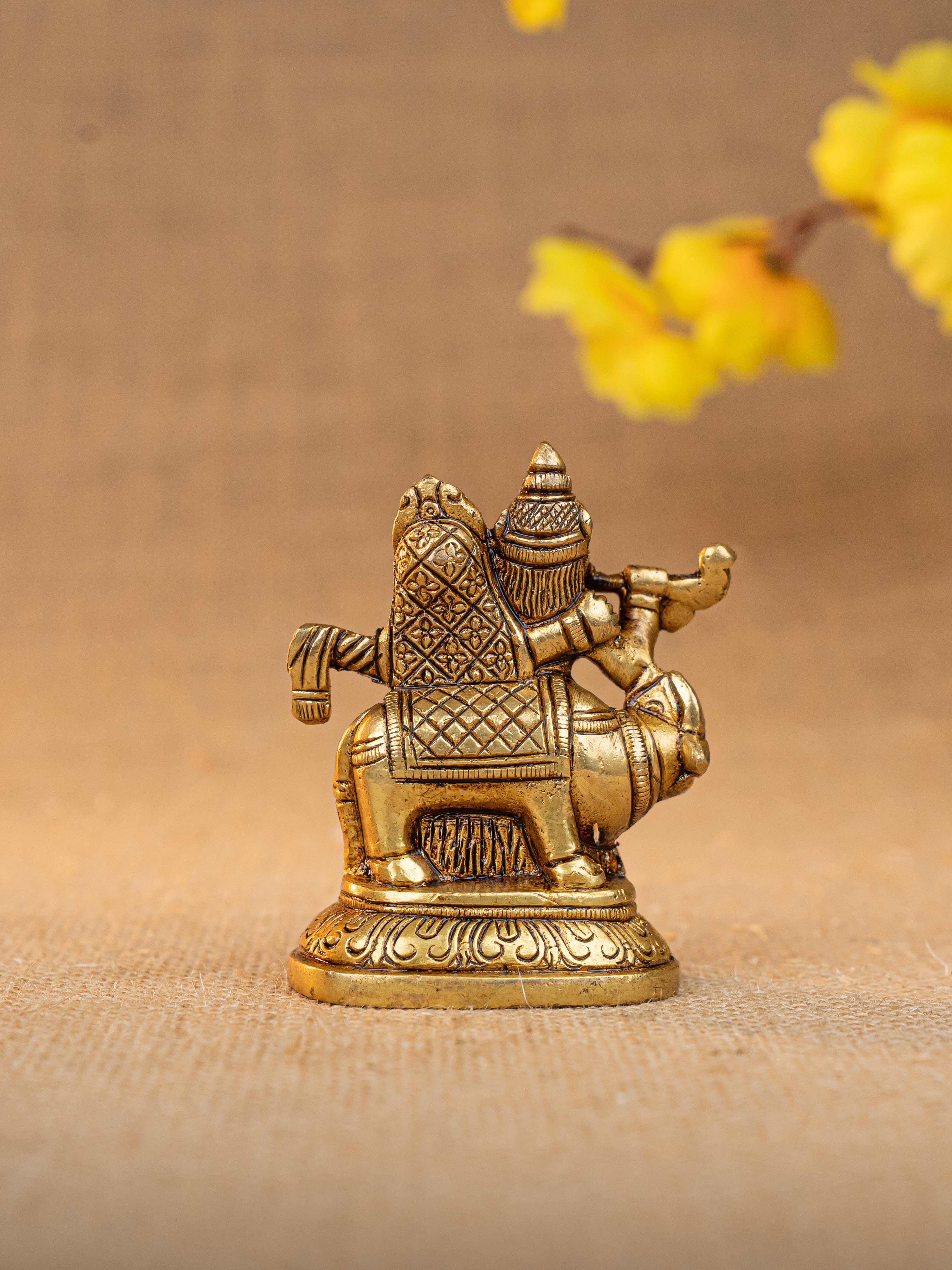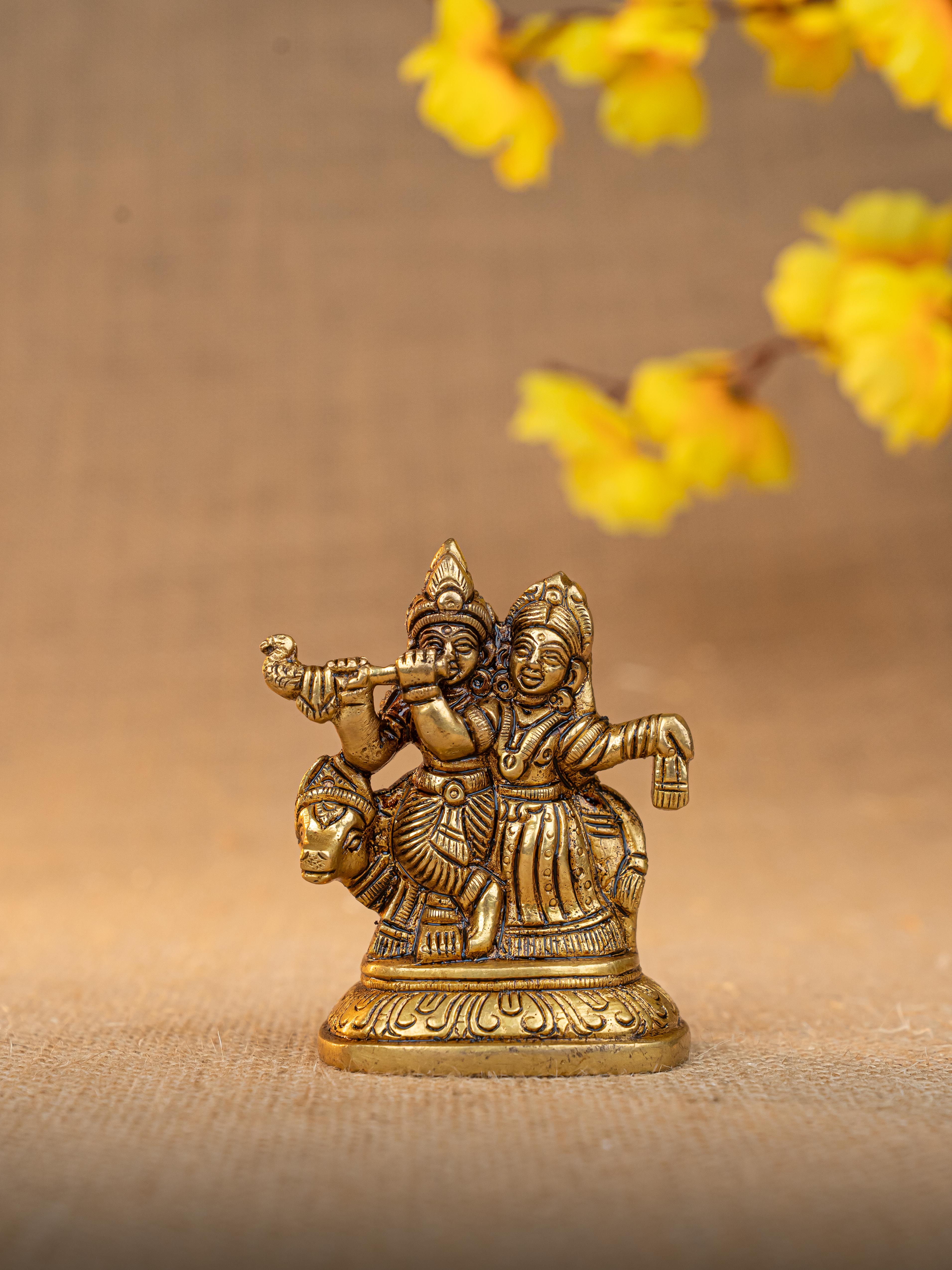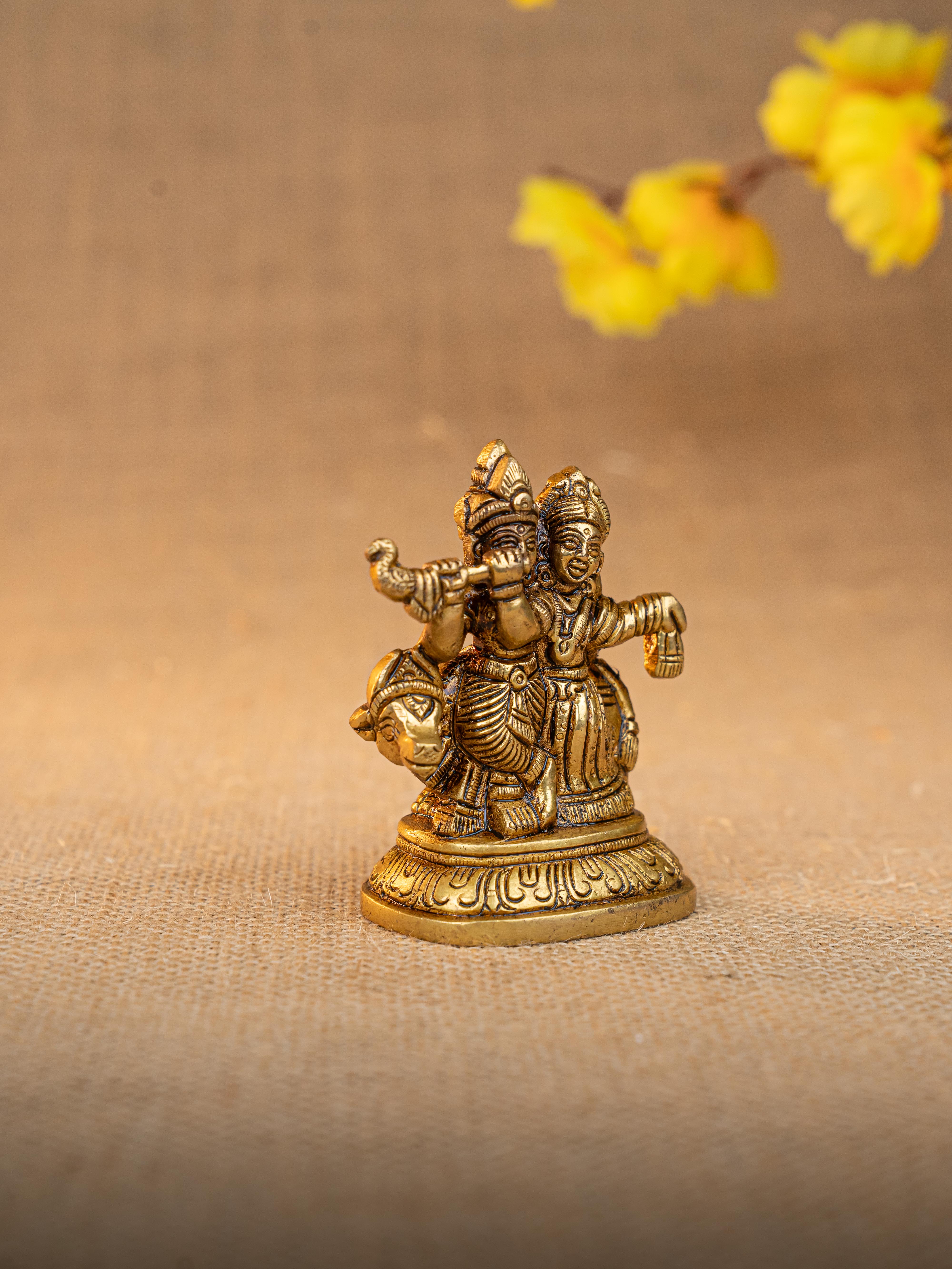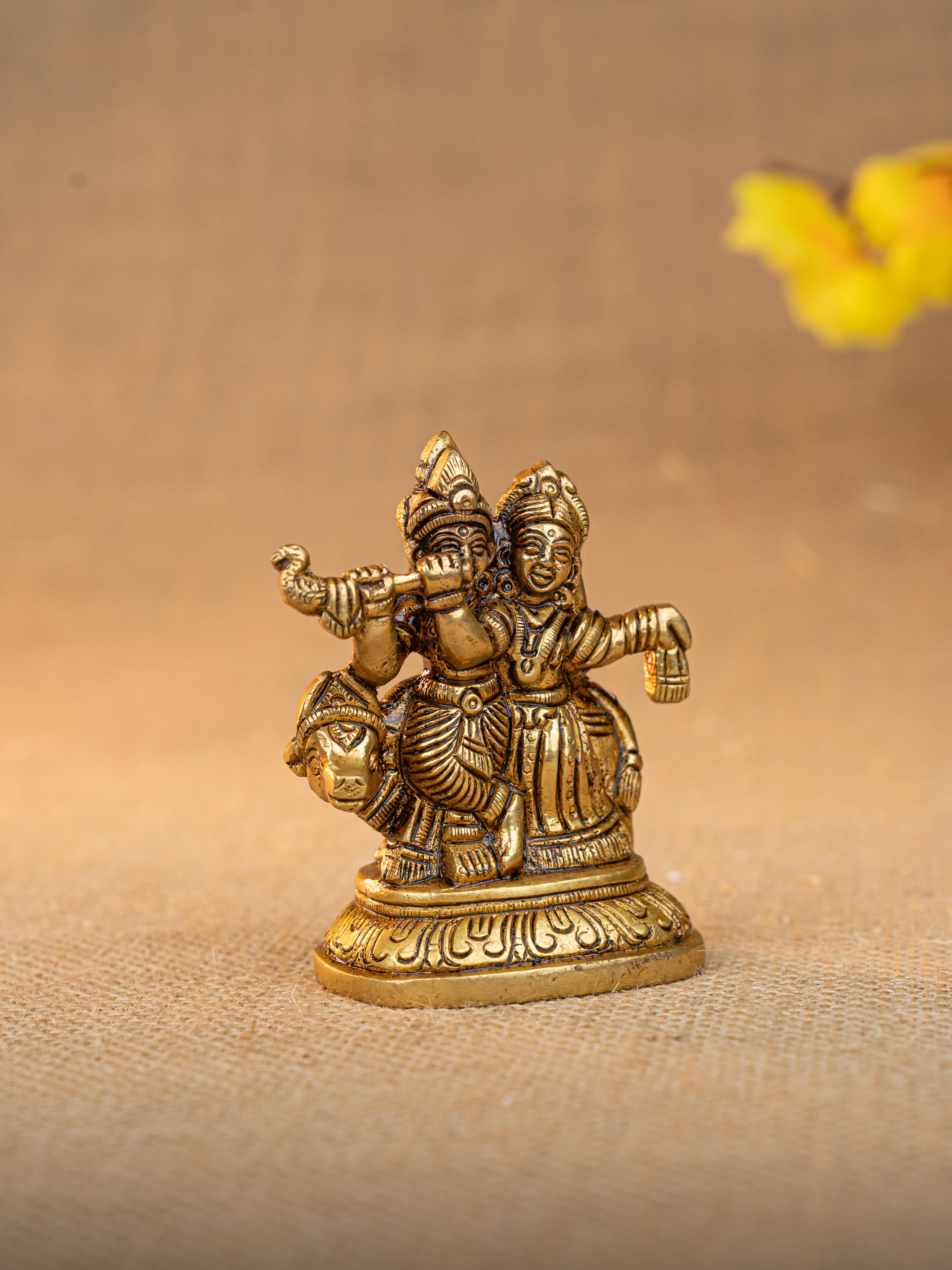 Brass Radha Krishna with Cow Idol - 3 inch - WL5291