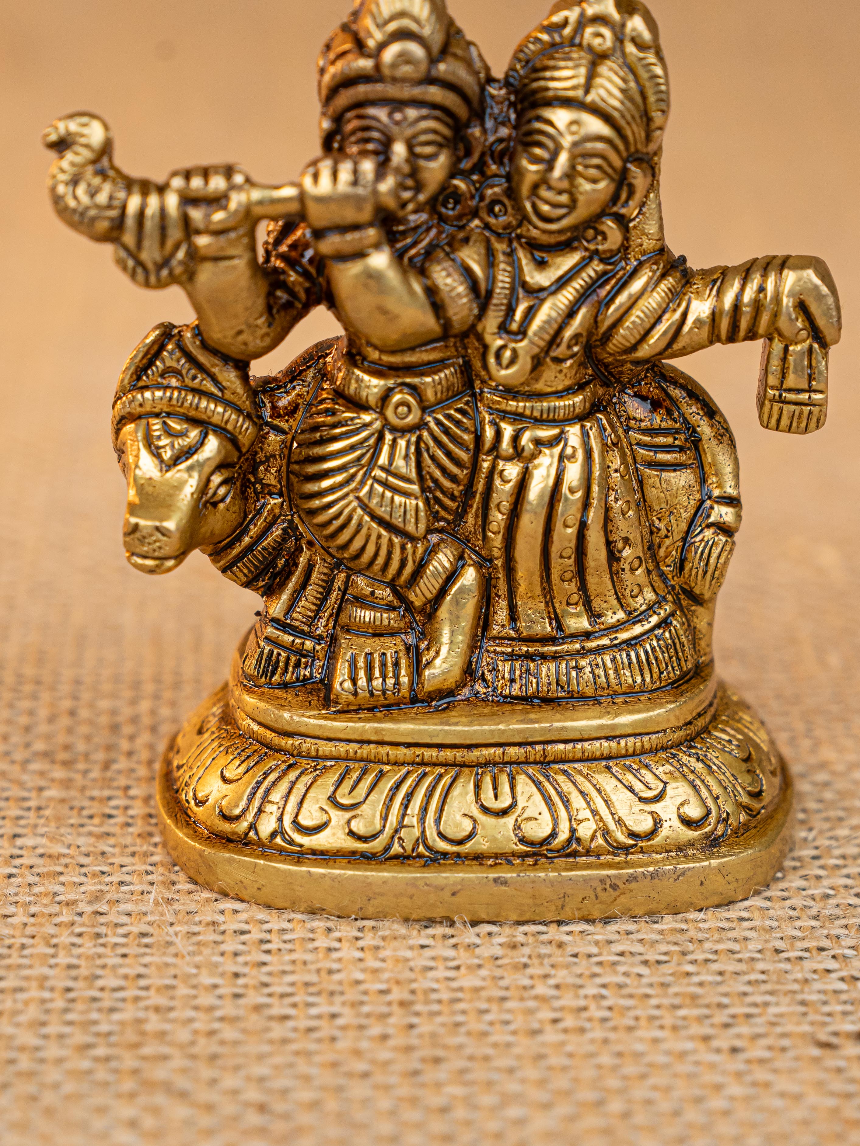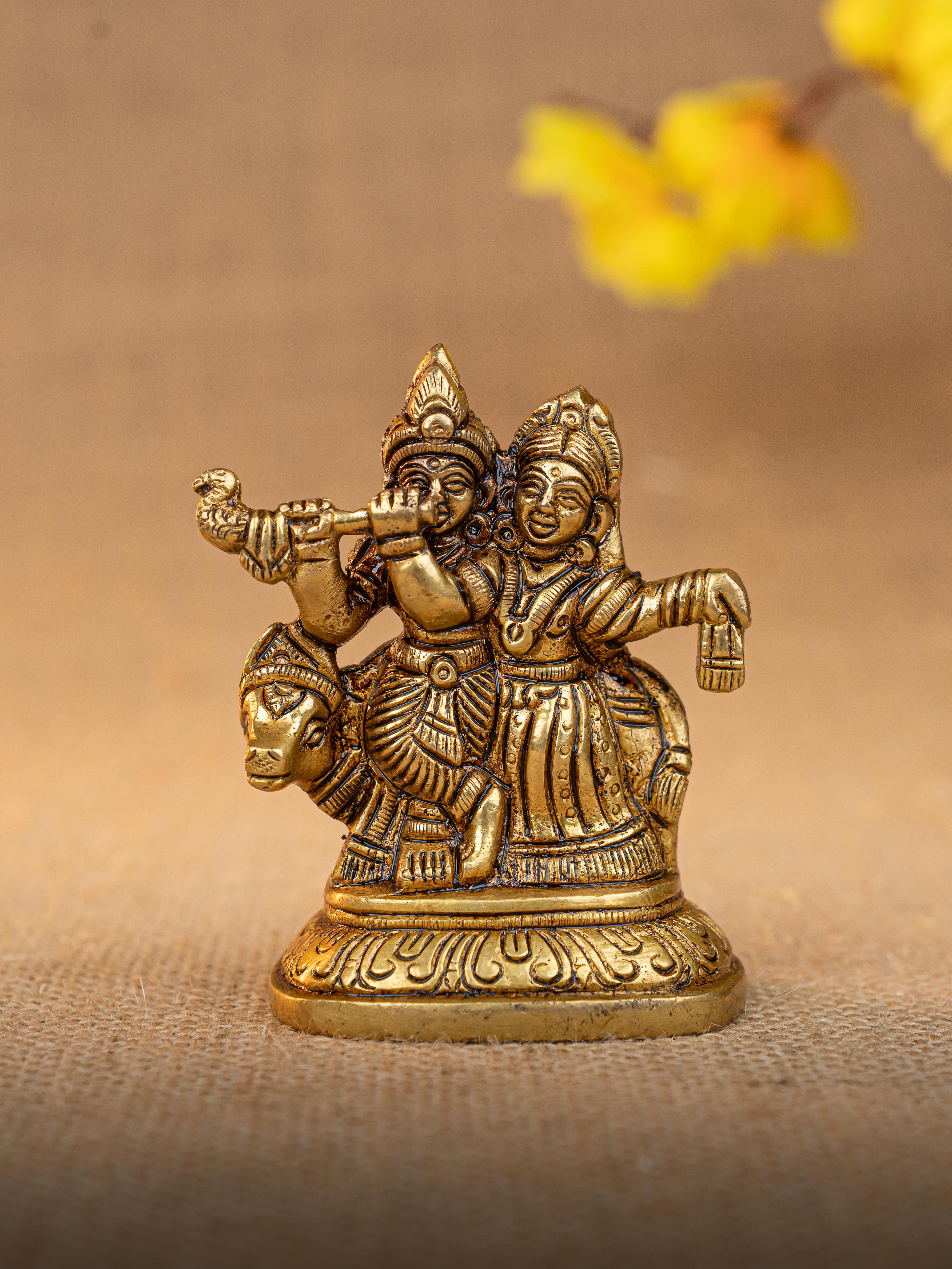 - Find this beautiful sculpture of Radhe and Krishna with a Cow.