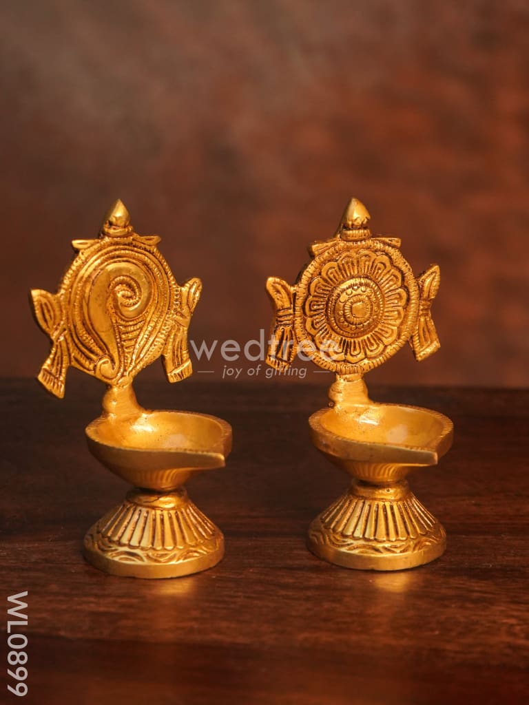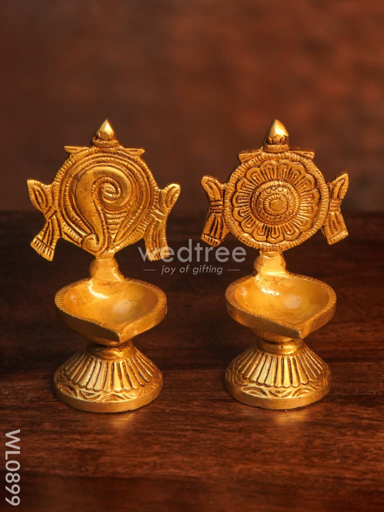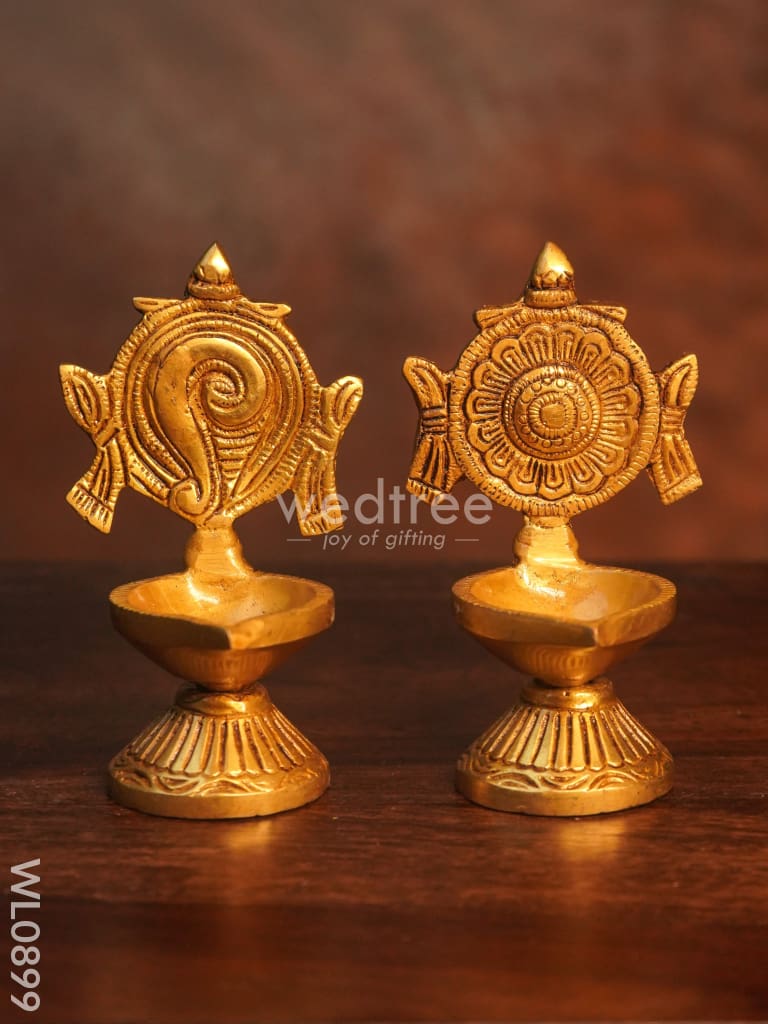 - The diyas are made of brass and crafted with the Shank and Chakra on the top.