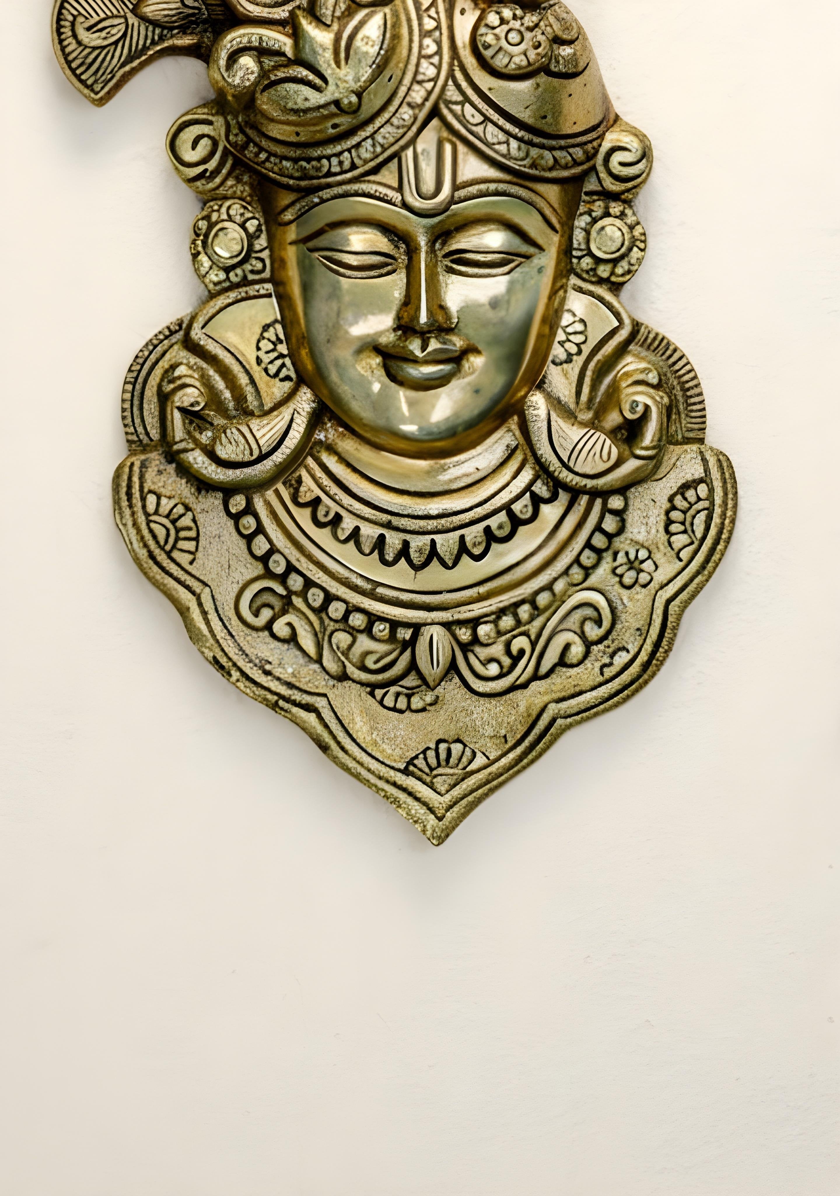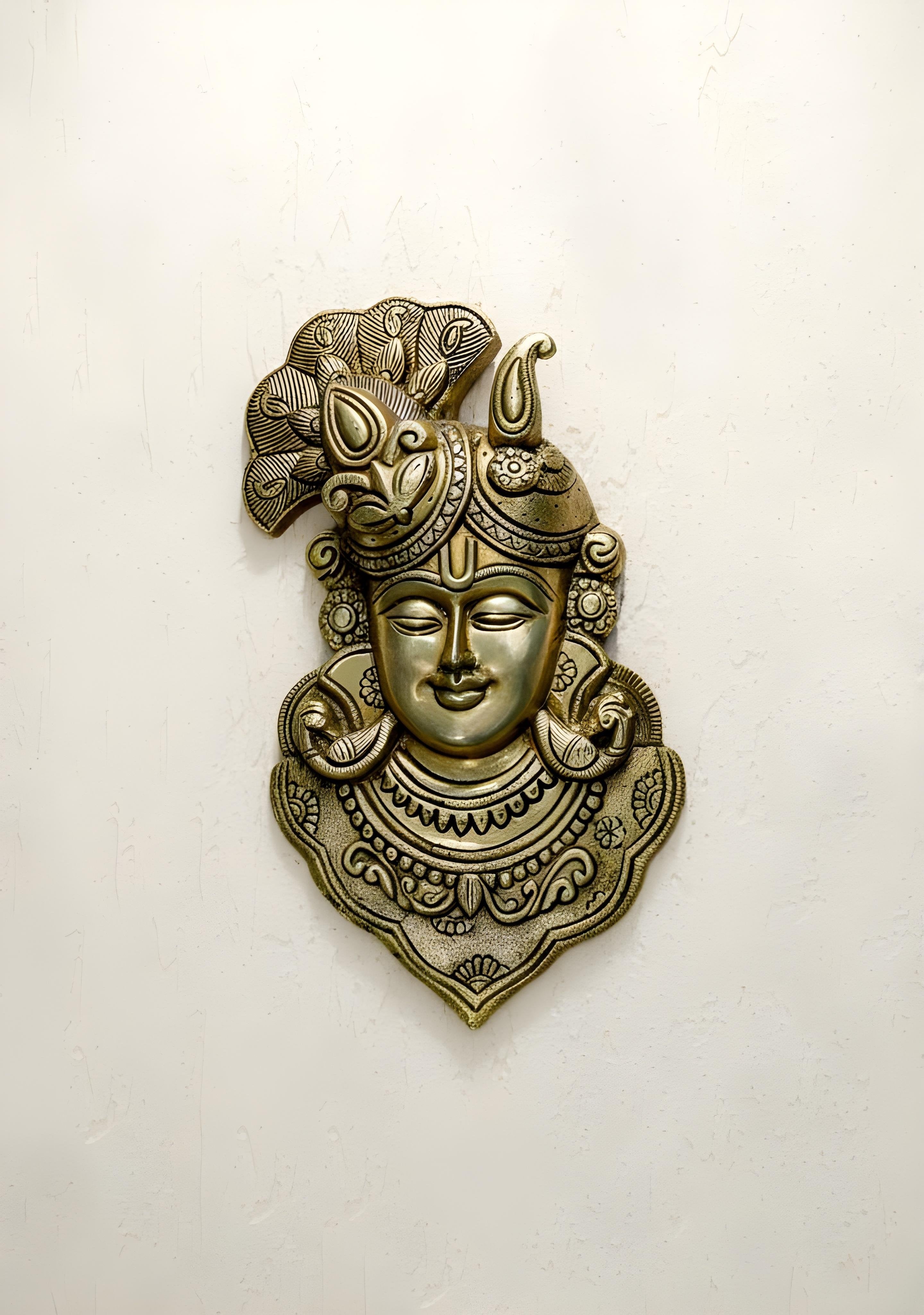 - A lovely wall hanging of Shrinathji handcrafted from Brass by our artisans.