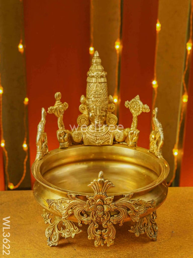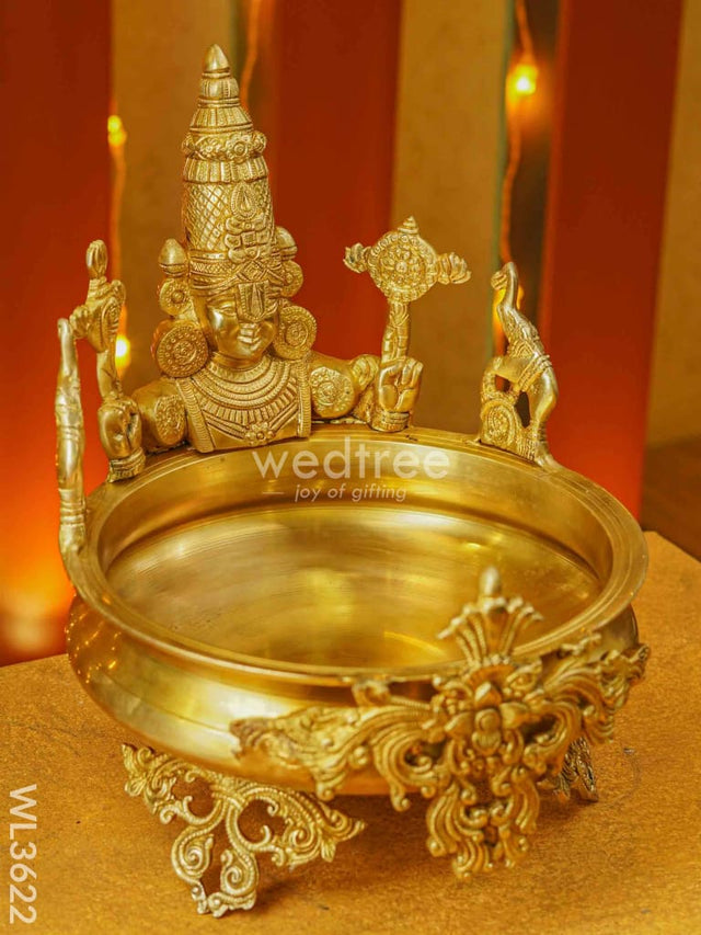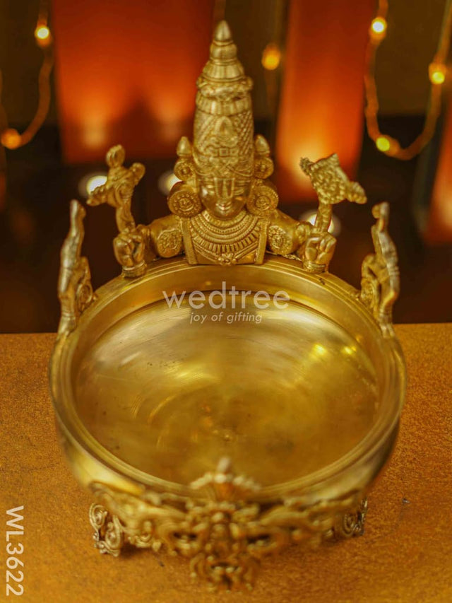 - Add a touch of divine grace to your home with this beautiful brass Tirupathi Balaji Urli!