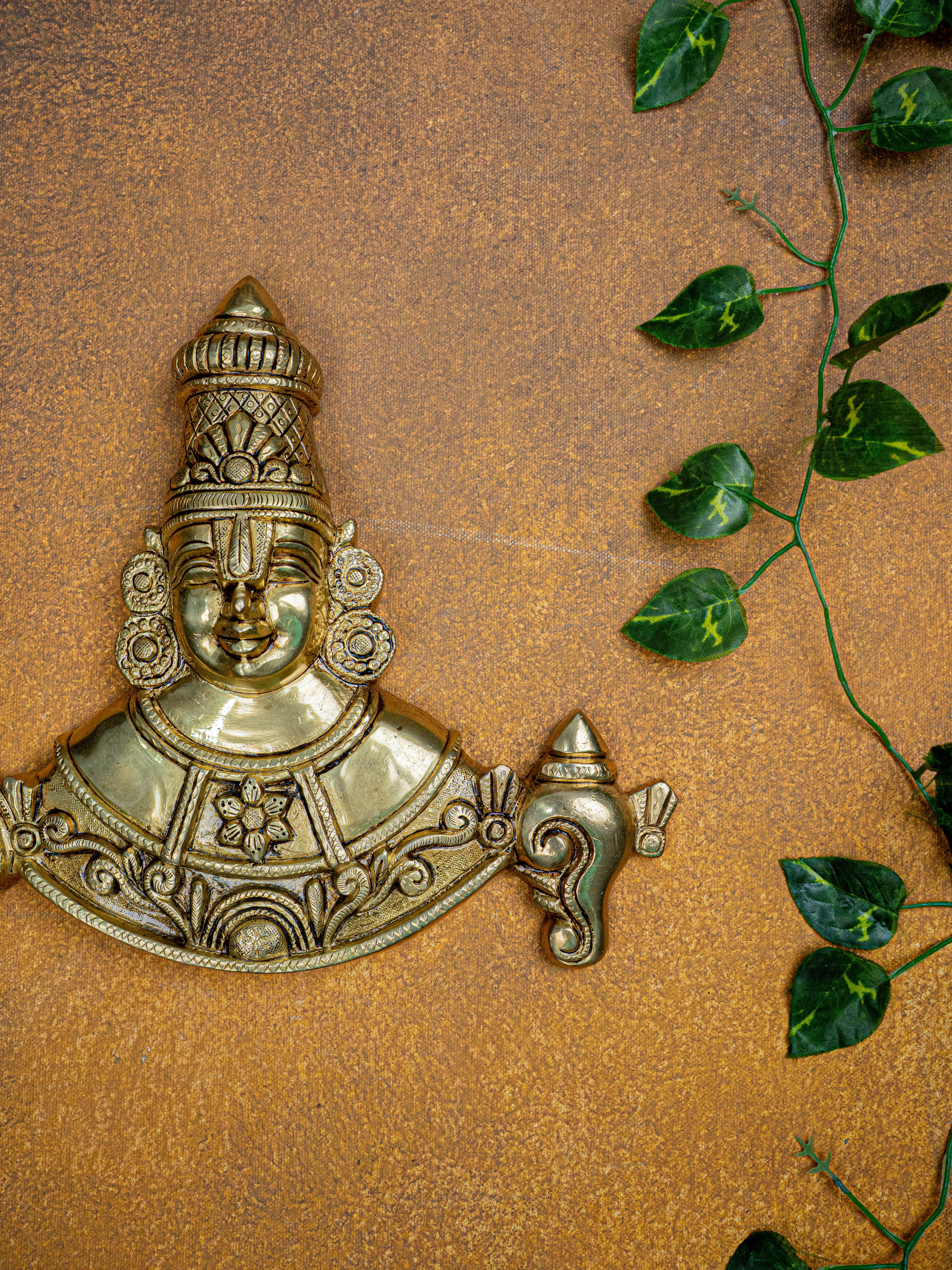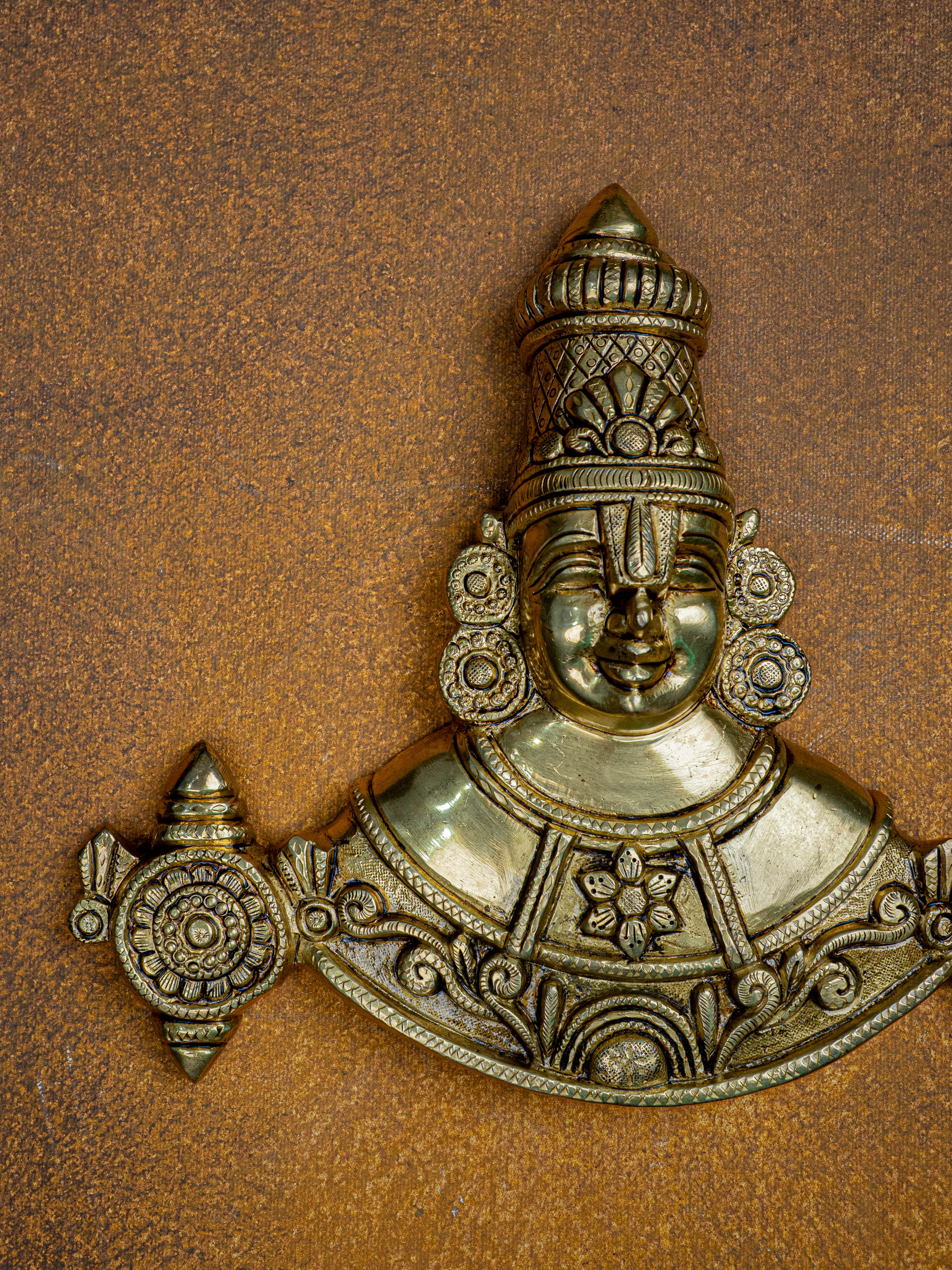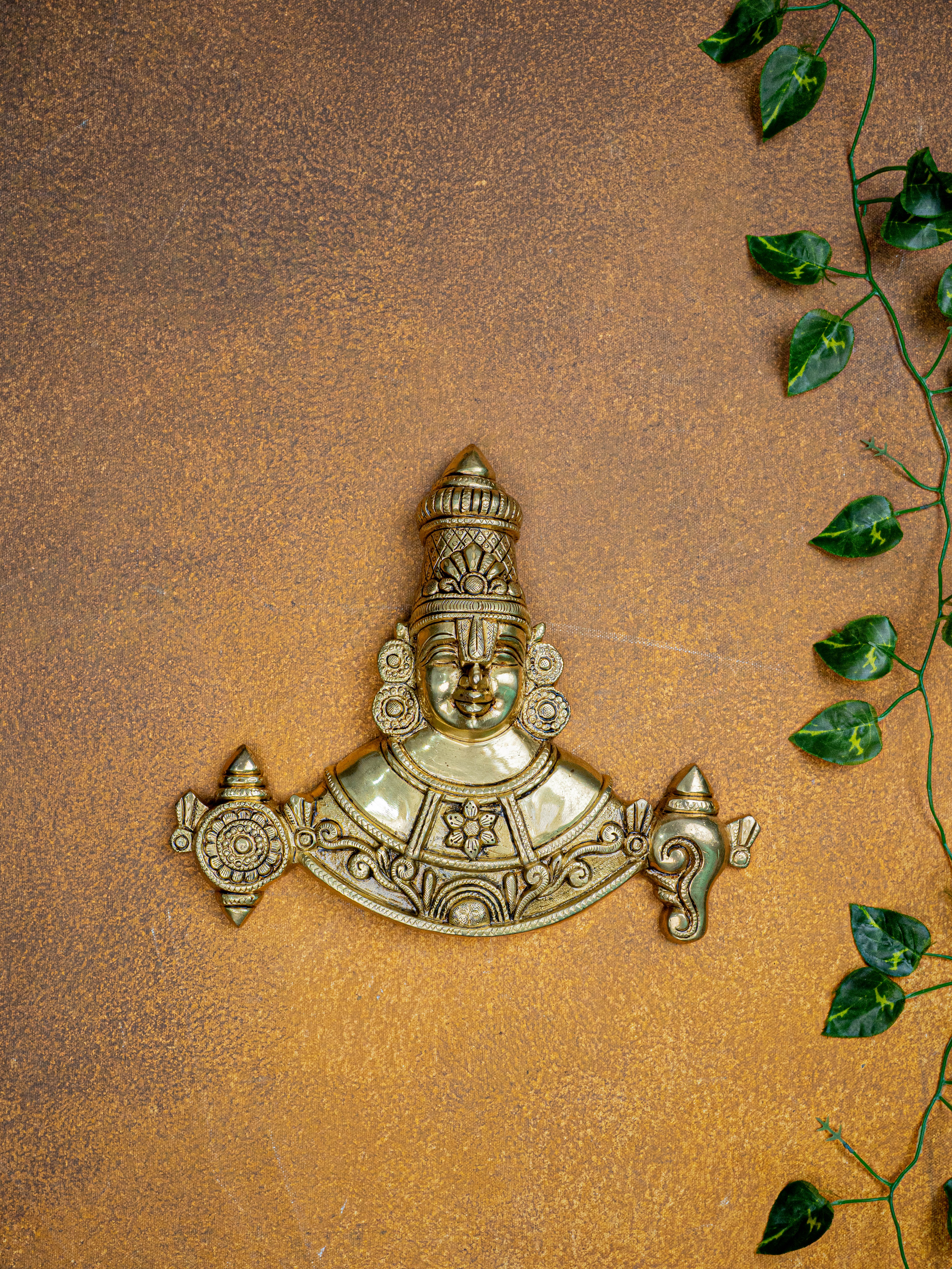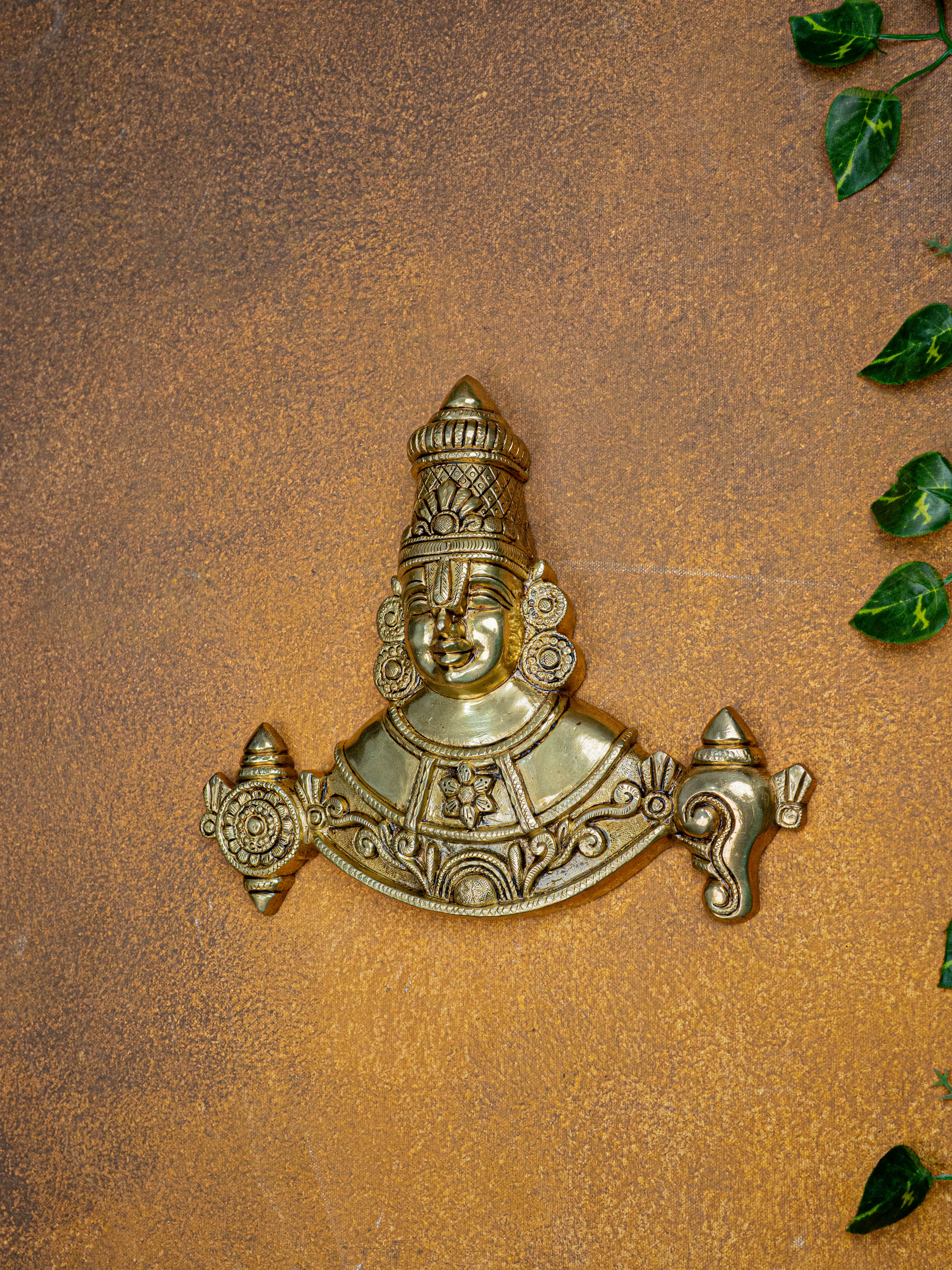 - Featuring Lord Balaji with his divine emblems, the Shank, Chakra.
