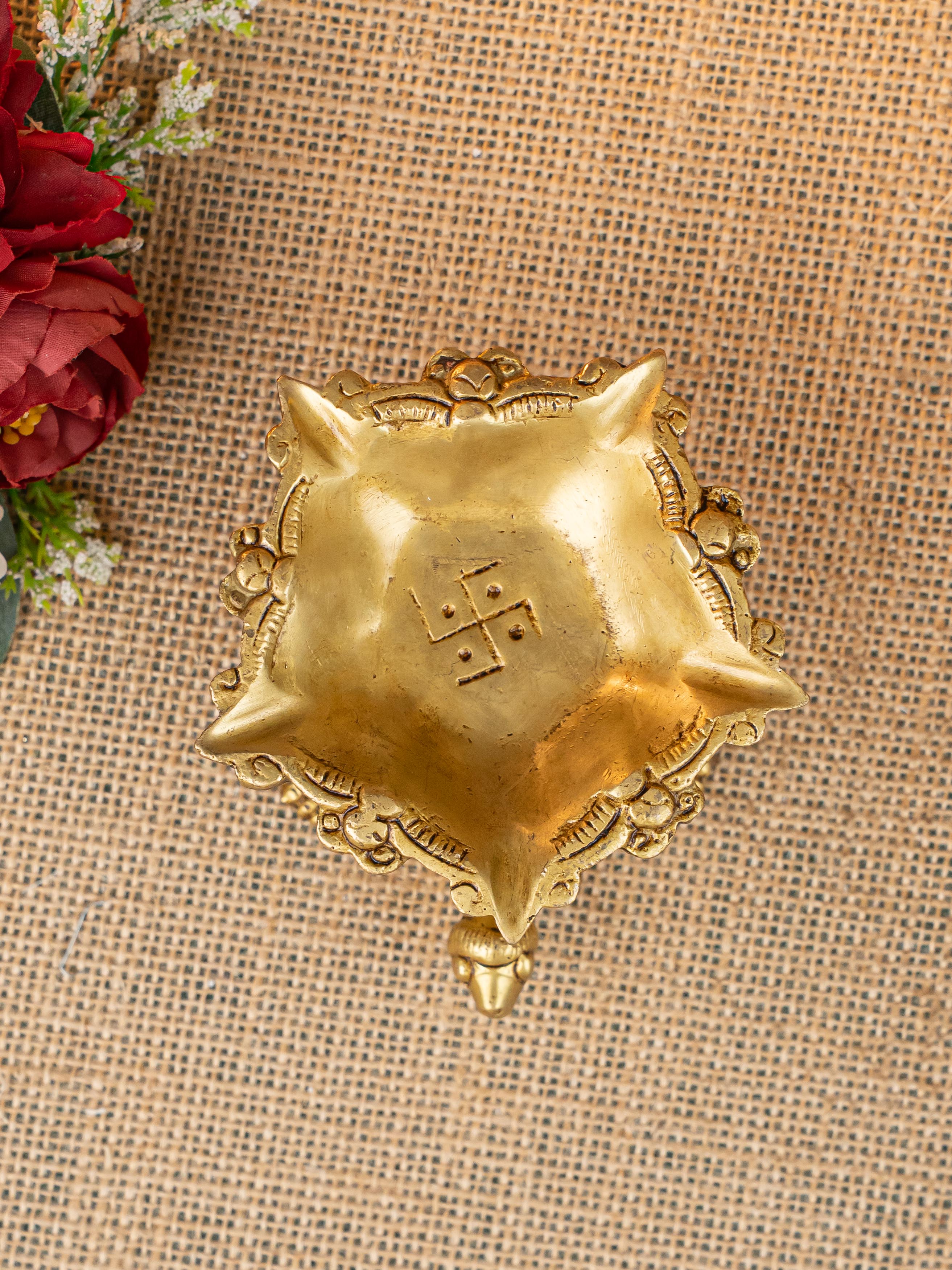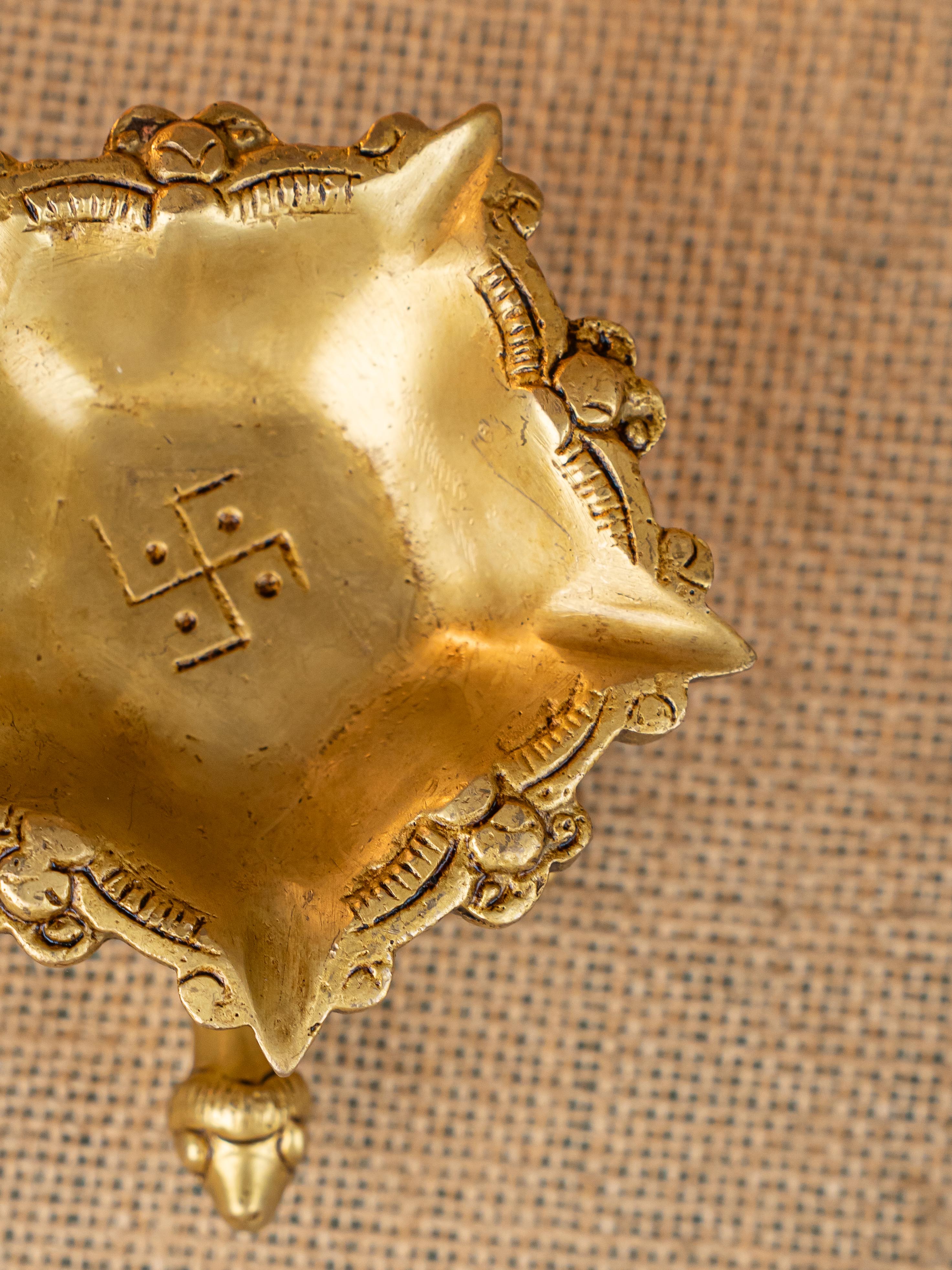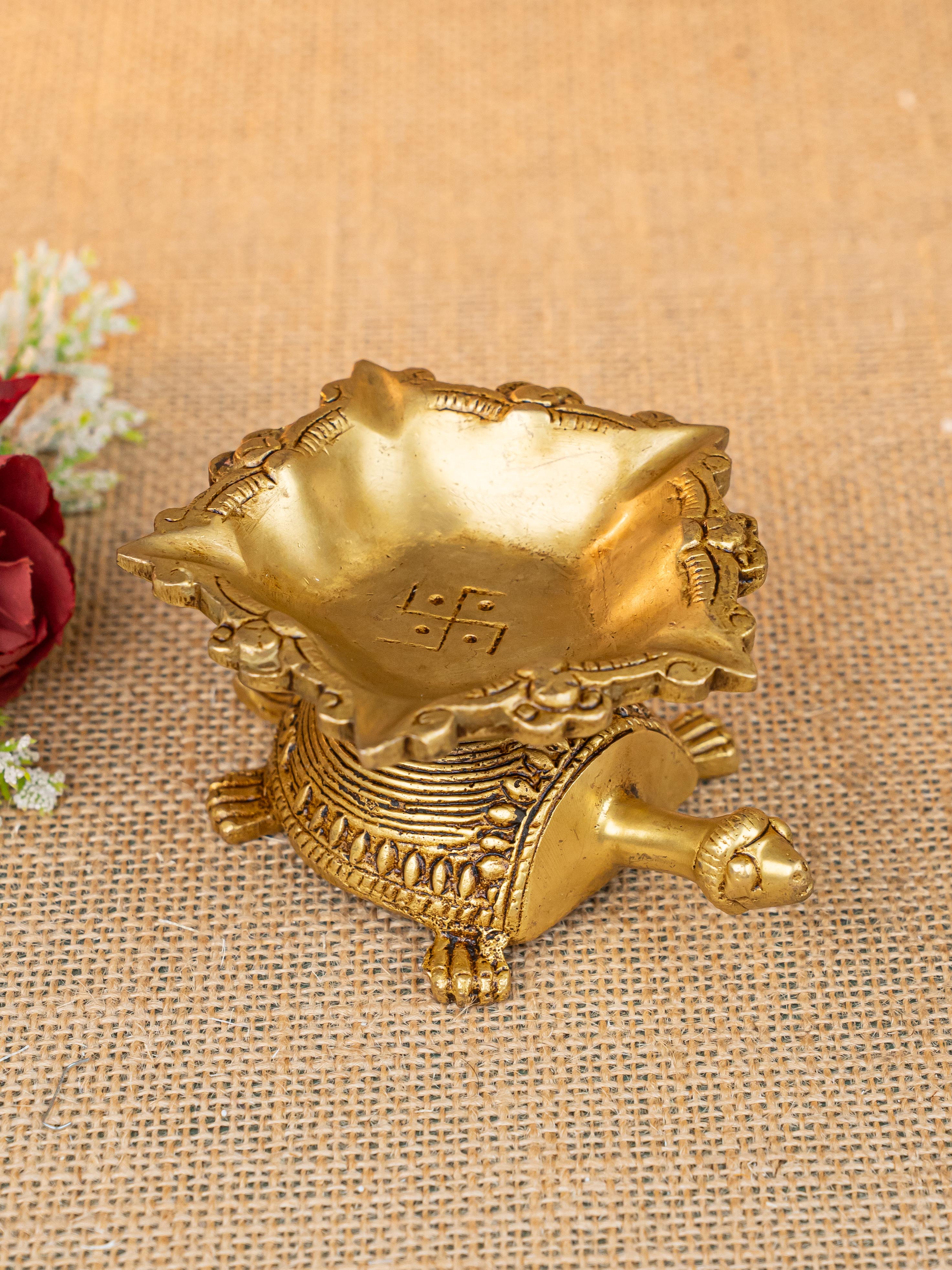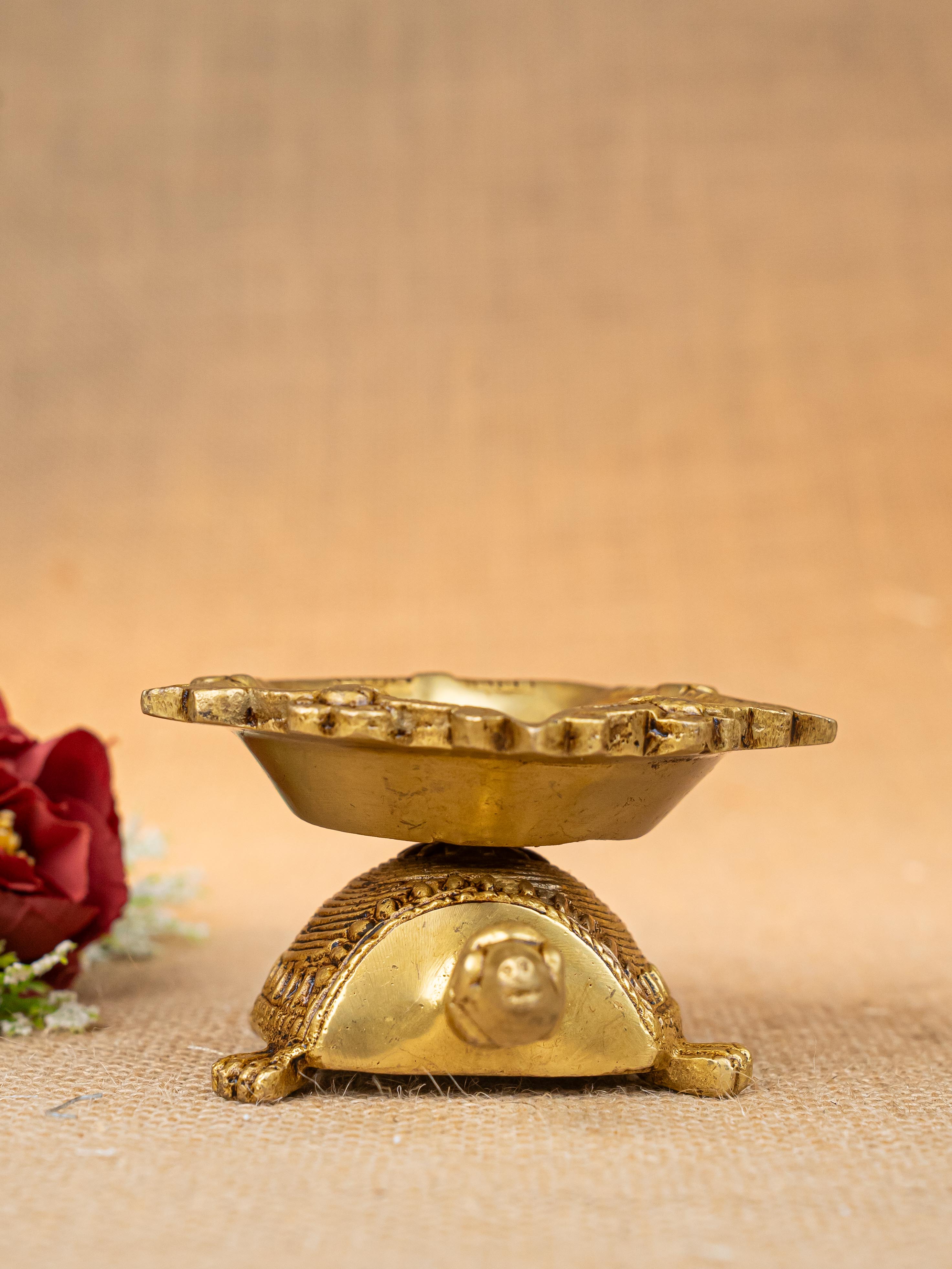 - Here is a cute artifact of a tortoise on top of which a beautiful 5 face Diya is rested.