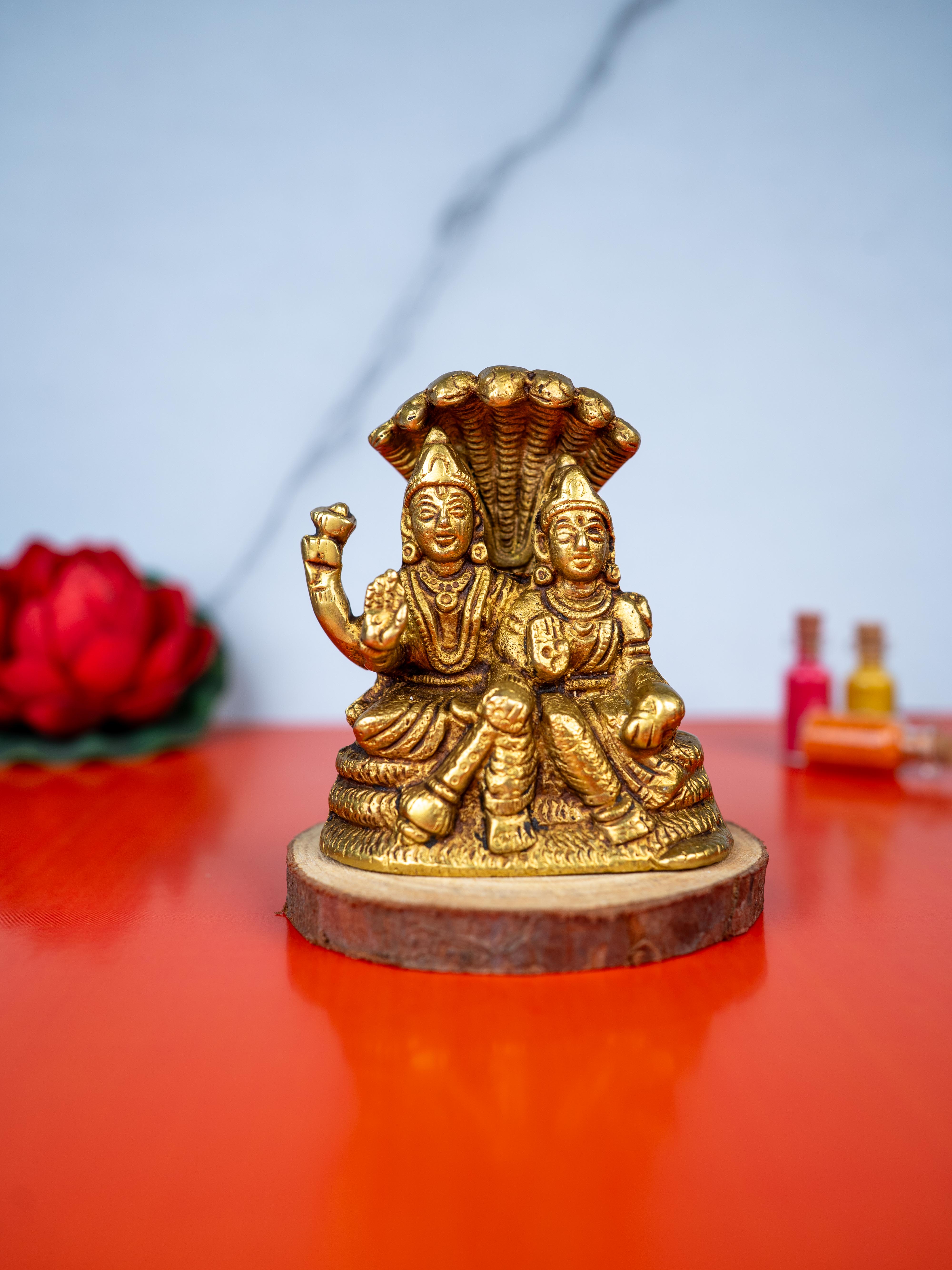Brass Vishnu Lakshmi Idol - 4 inch - WL5486