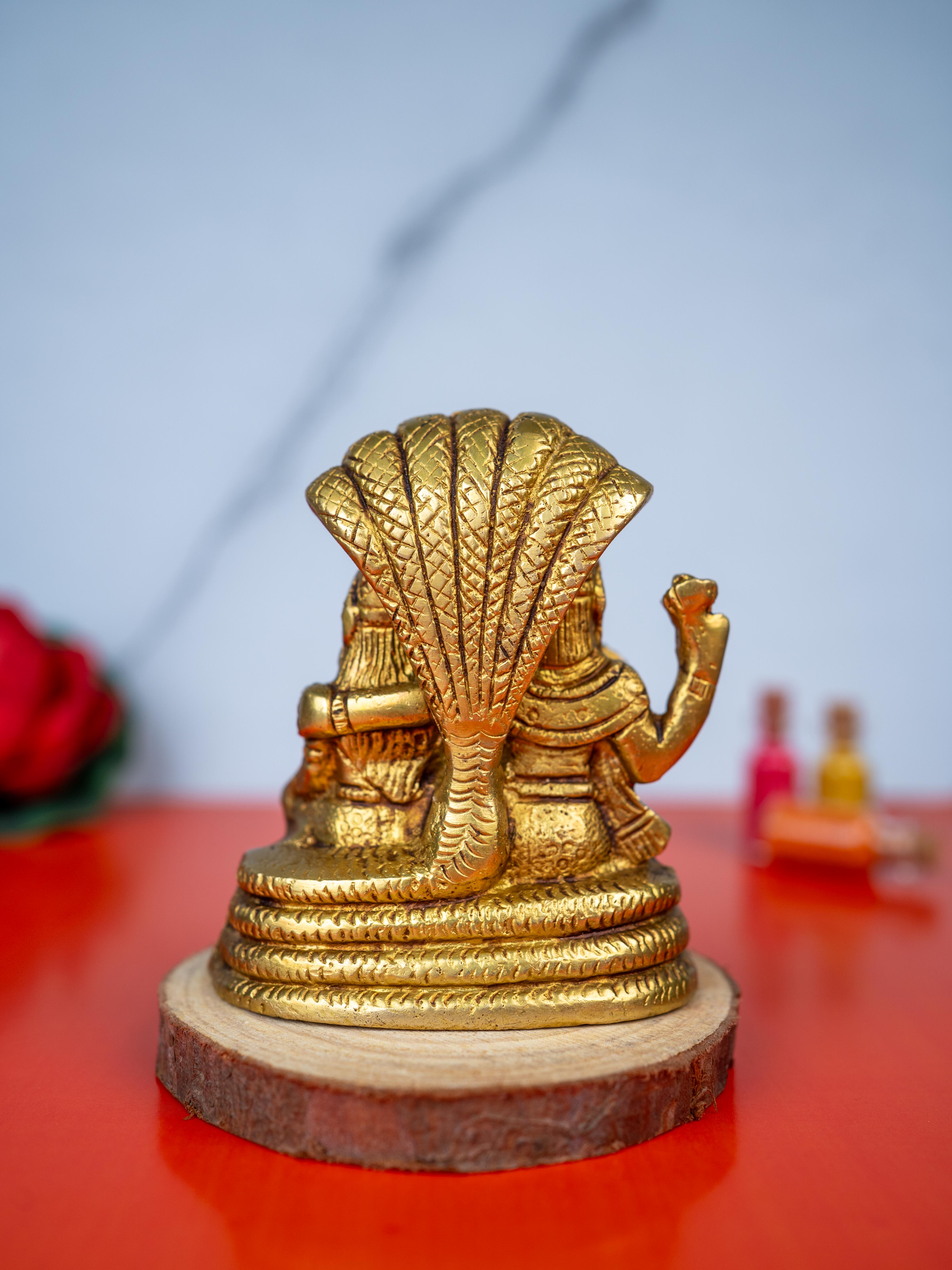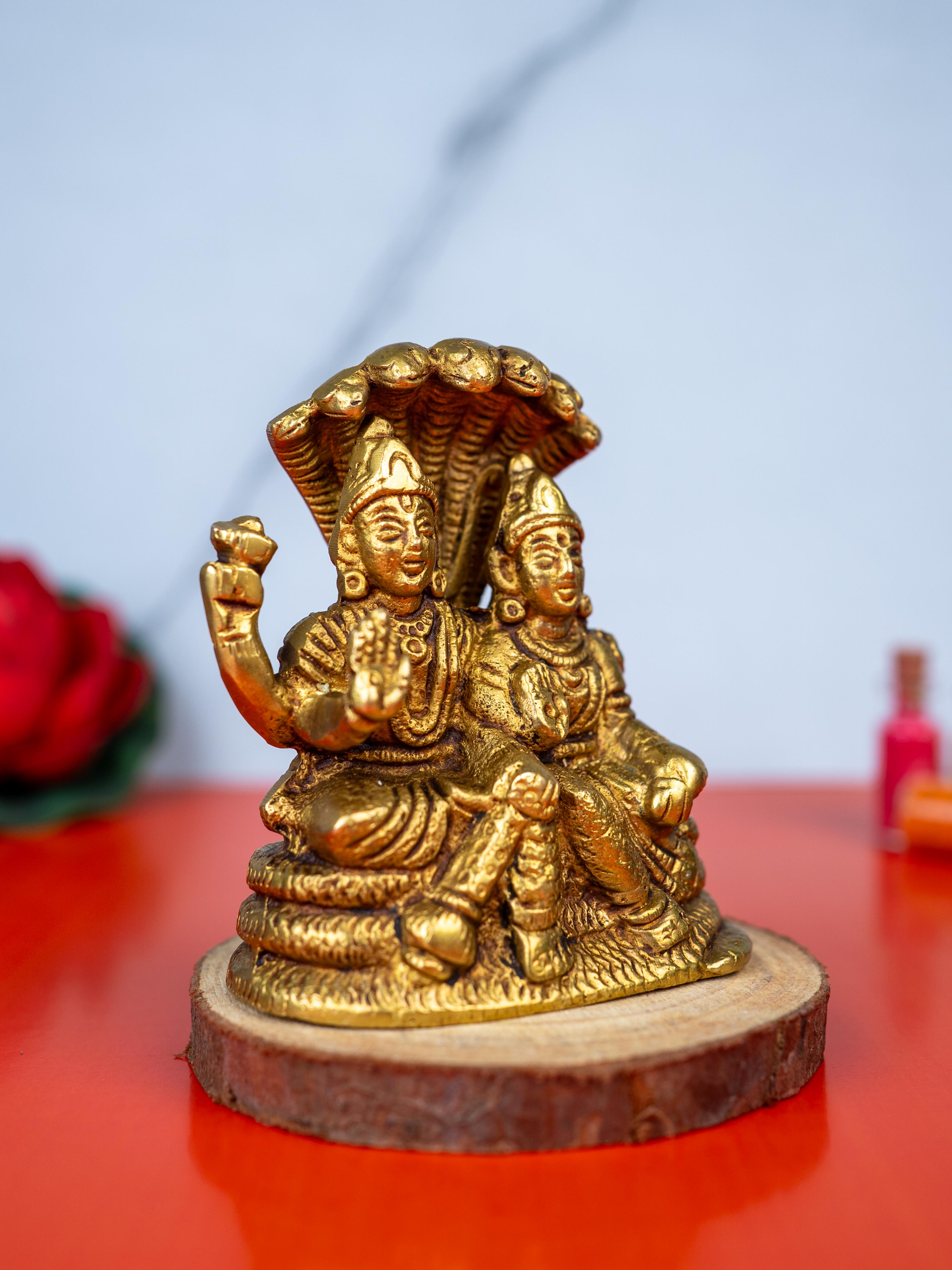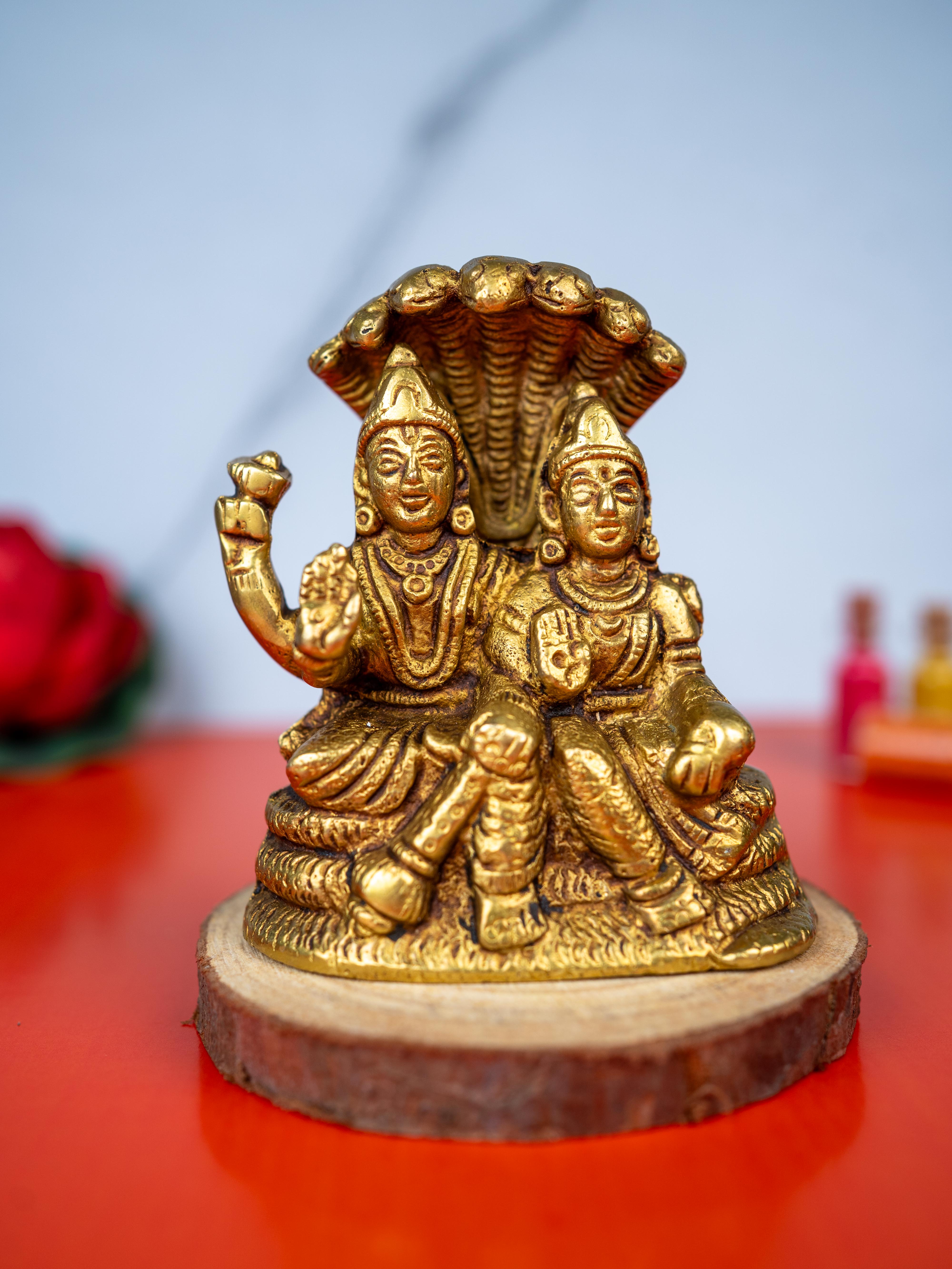 - Beautifully Crafted Golden Idol Depicting Lord Vishnu and Goddess Lakshmi.