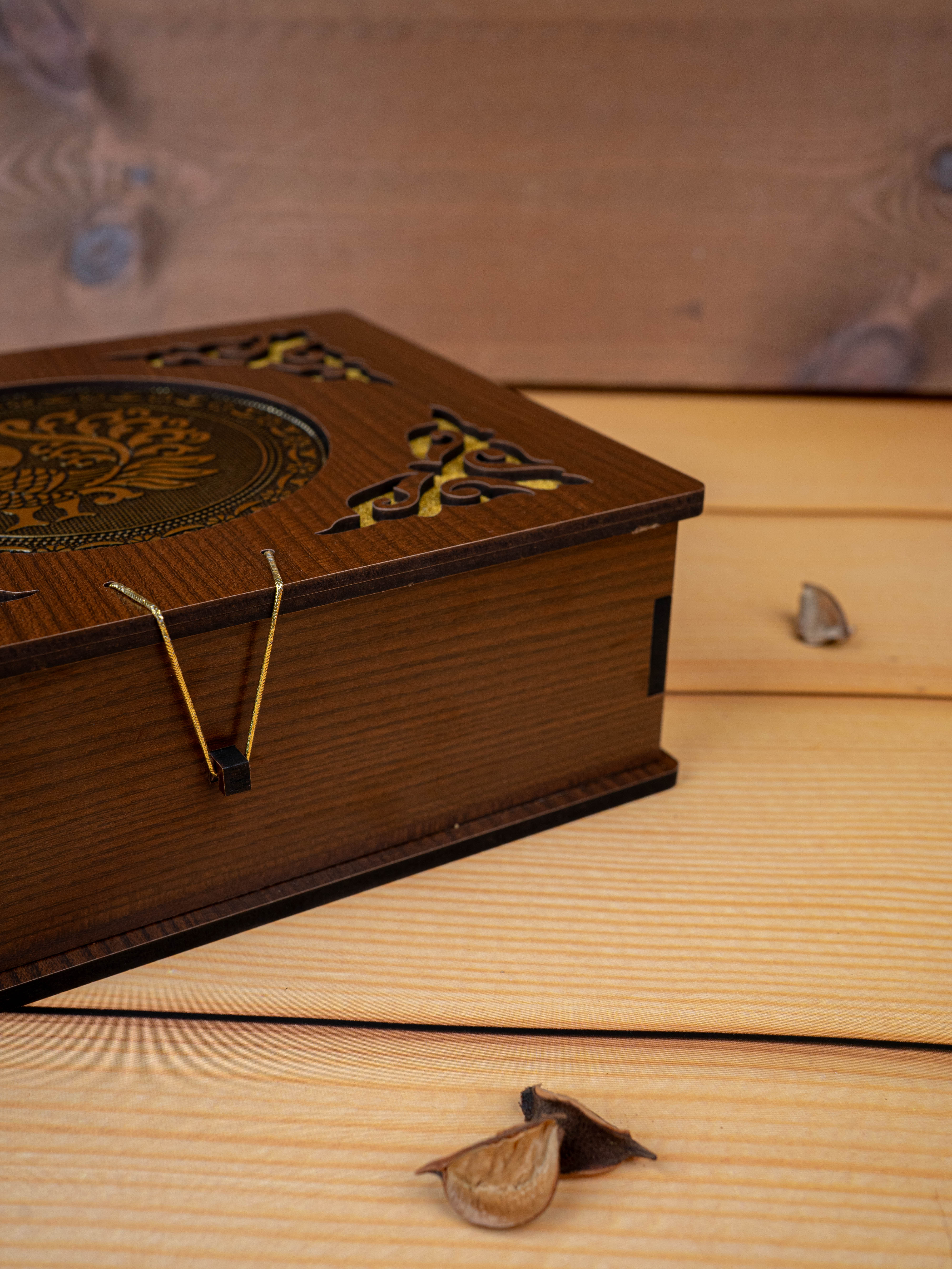 - Beautifully Designed Wooden Dry Fruit Box with a Rich, Traditional Aesthetic. This Box features a Square Shape with a Wooden Finish, Giving it a Warm and Premium Look.