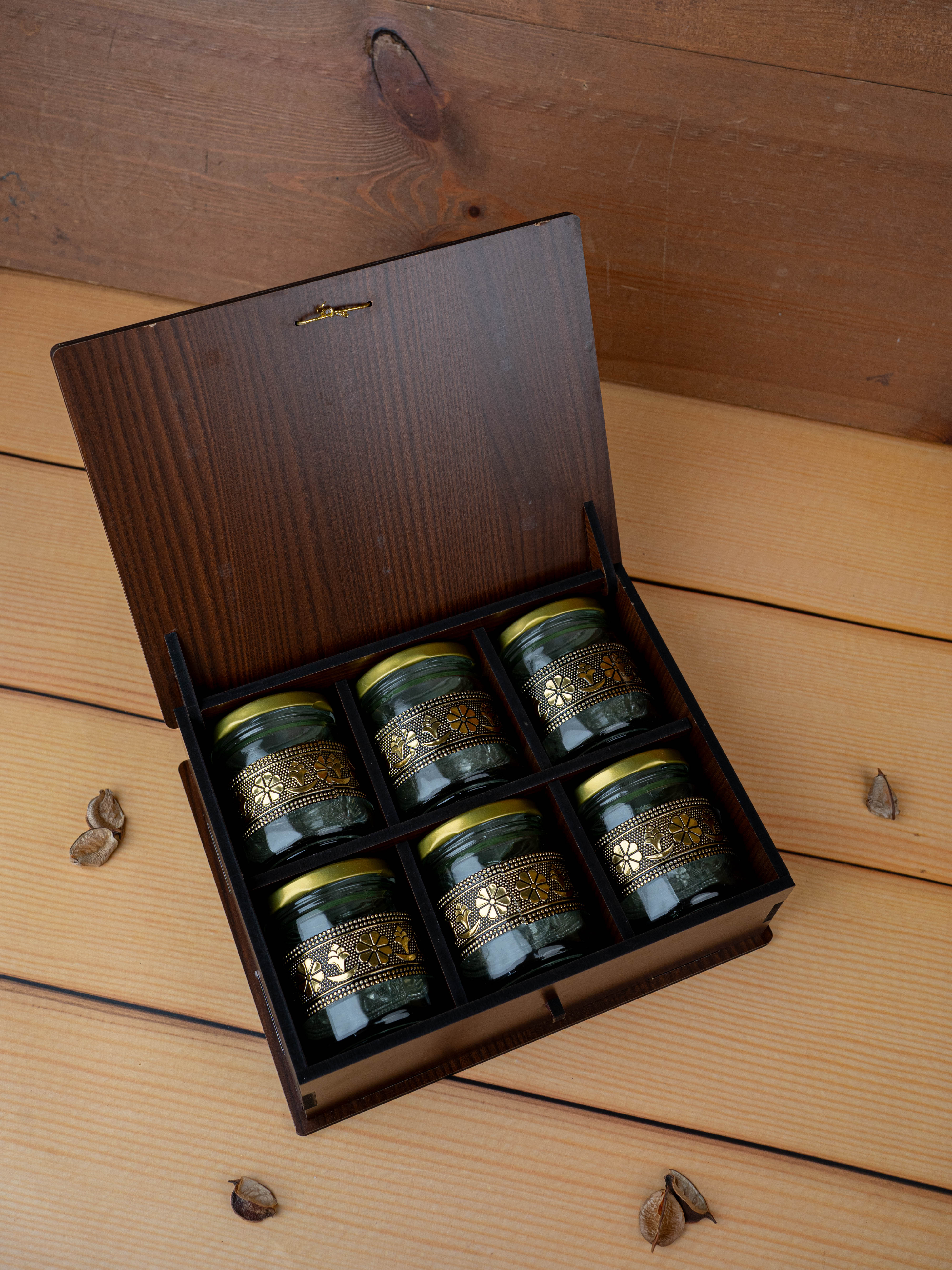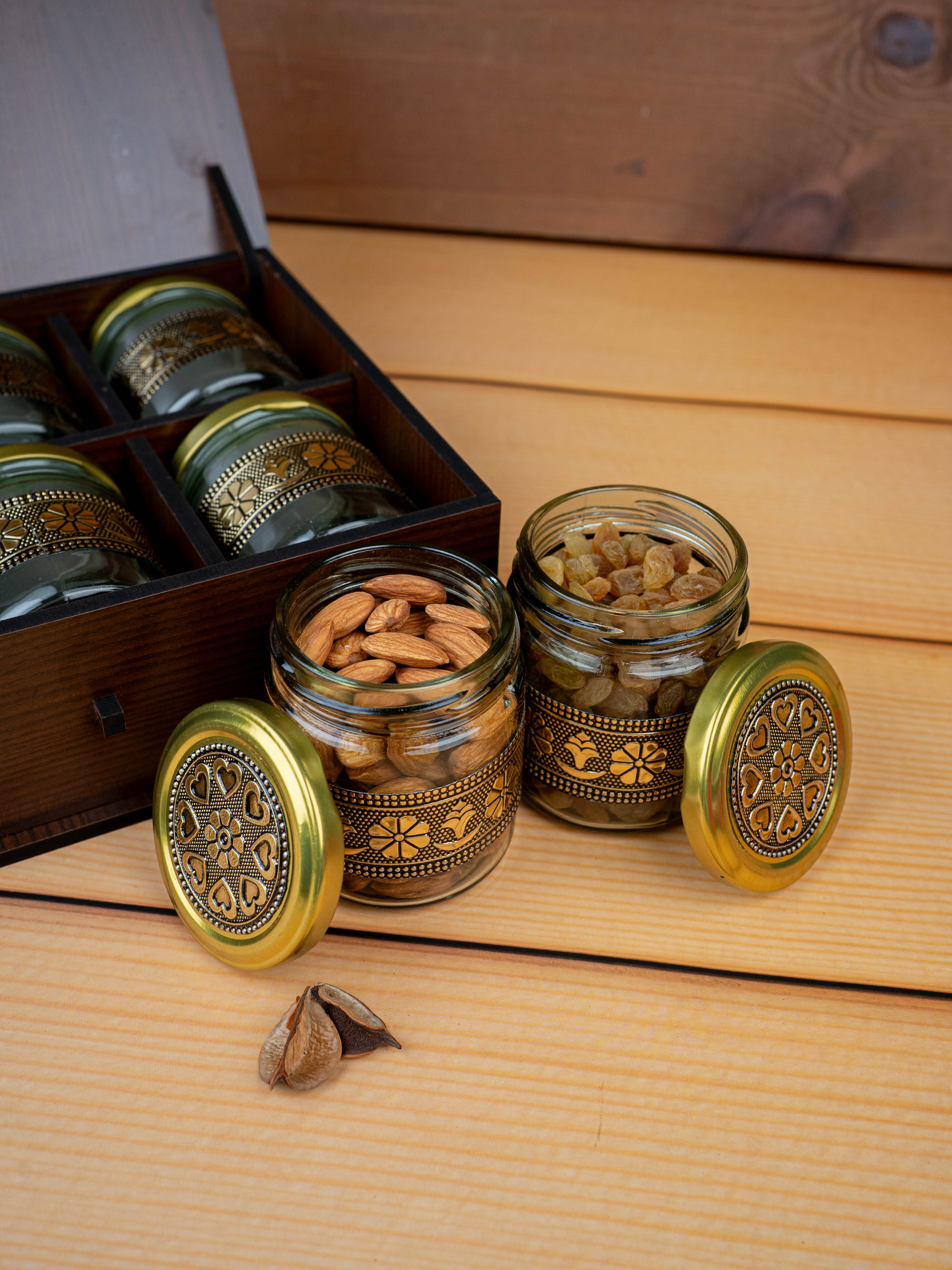 Brown Dry Fruit Box with 6 Glass Jar - Annapakshi Design - 9x7 inch - WL5385-2