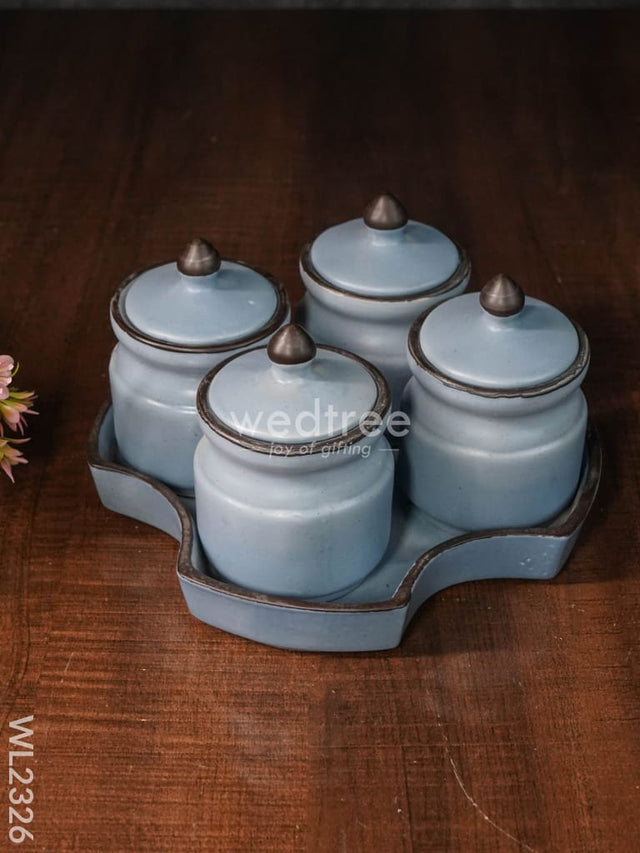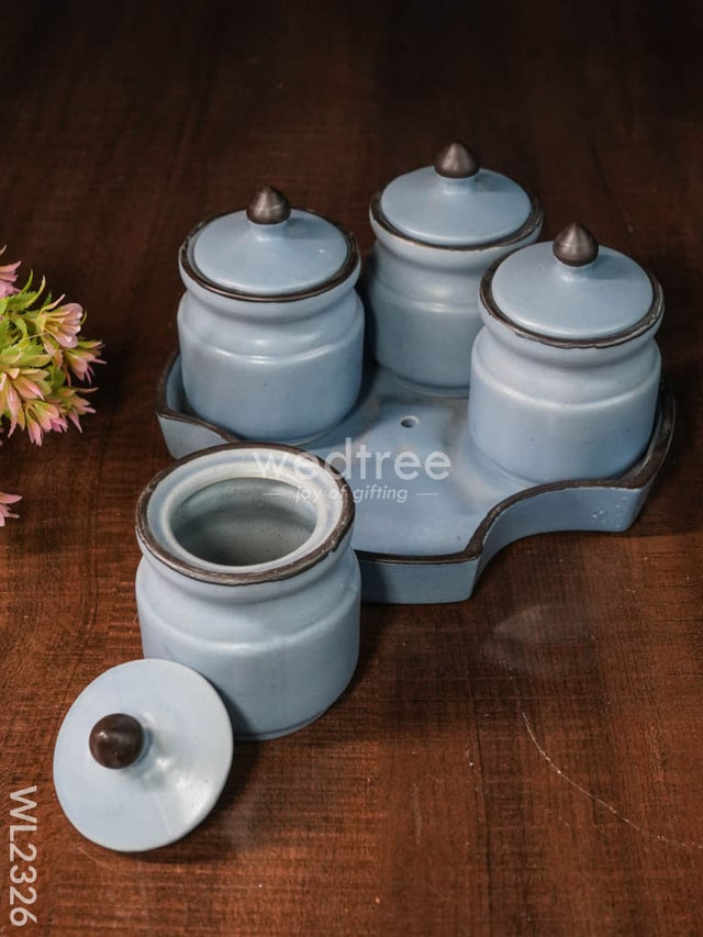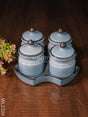 - It comes as a set of 4 jars with a base tray to hold the jars, as a whole.