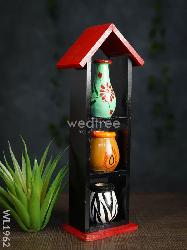 - A very cute set of Channapatna toys - a toy house with 3 pots.