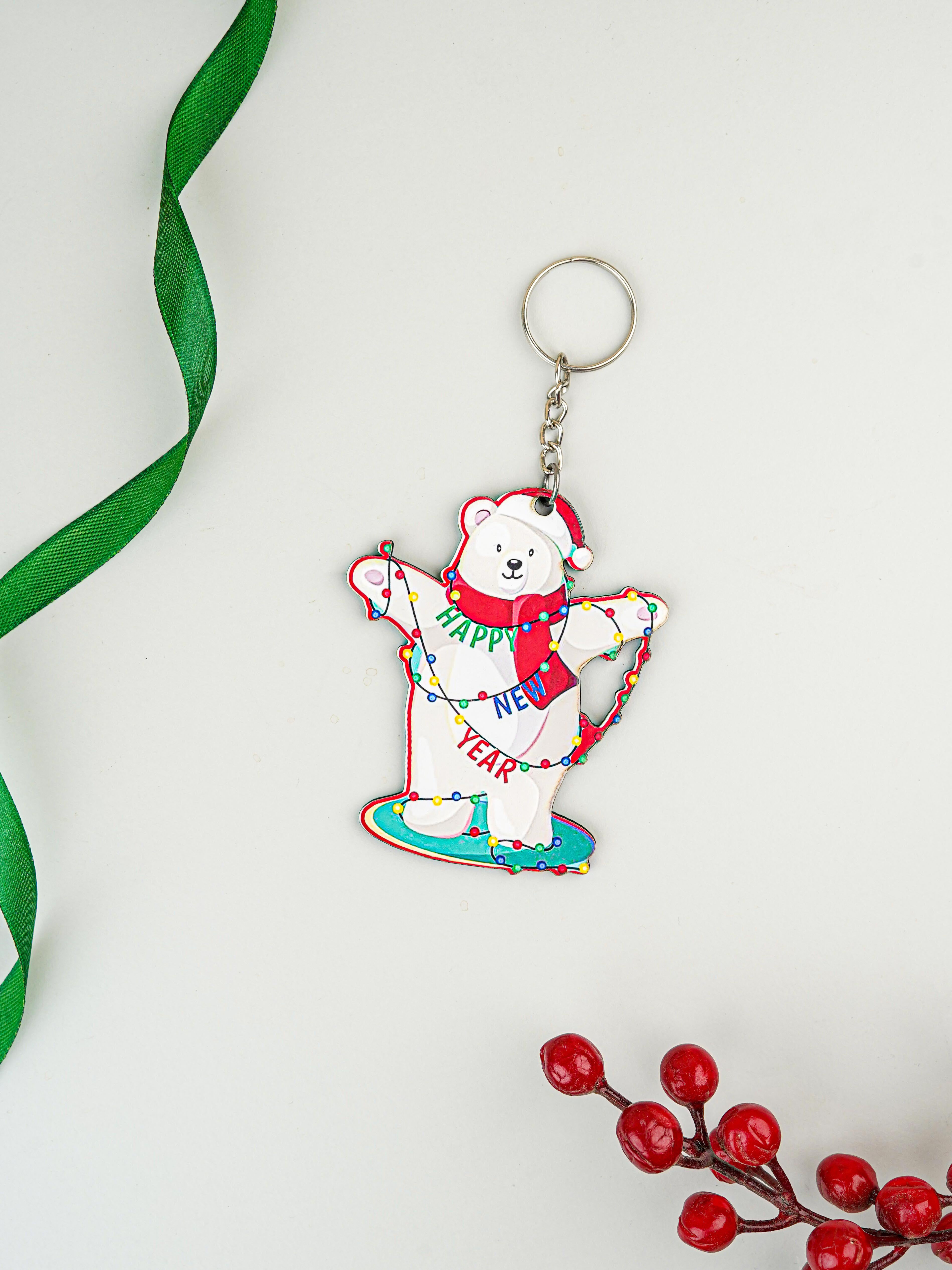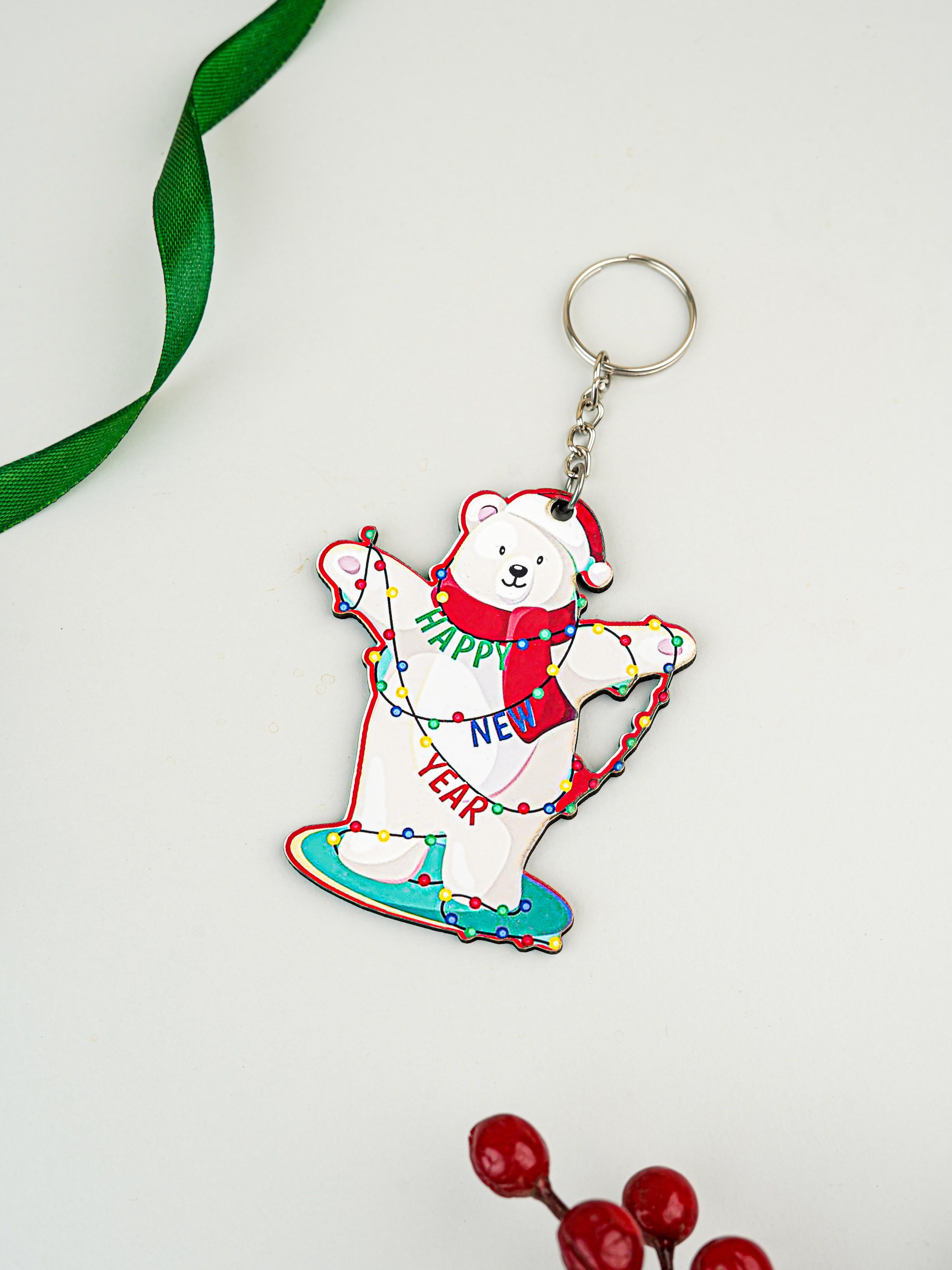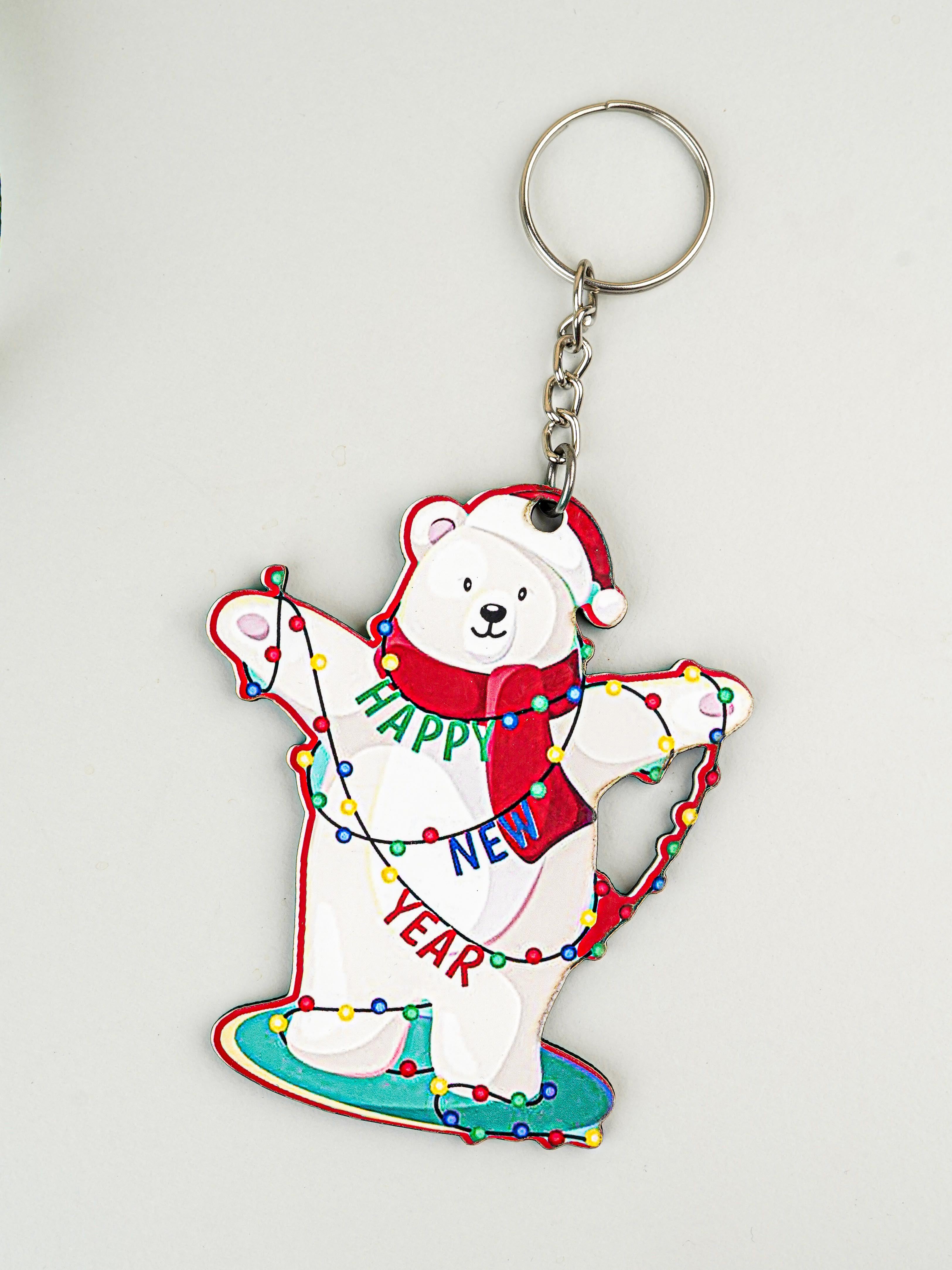 Christmas Keychain featuring a Cute Cartoon Polar Bear in a Festive Design.