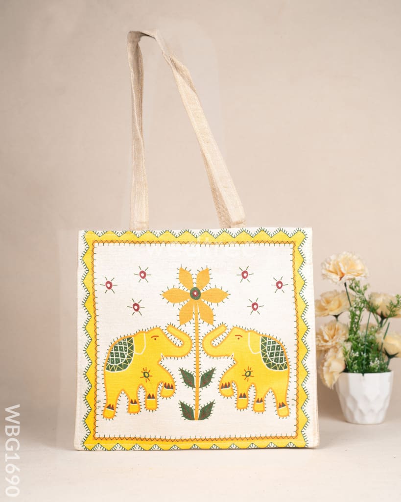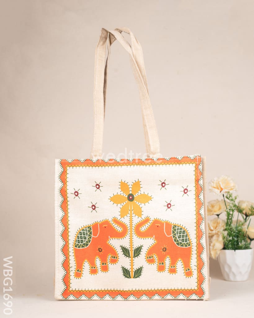 Make a Stylish and Sustainable Statement with Our Cloth Bag featuring a Stunning Peacock & Elephant Design.