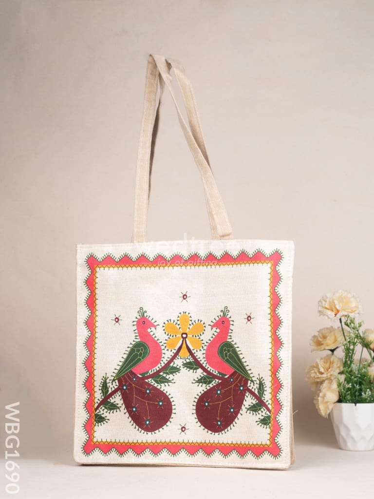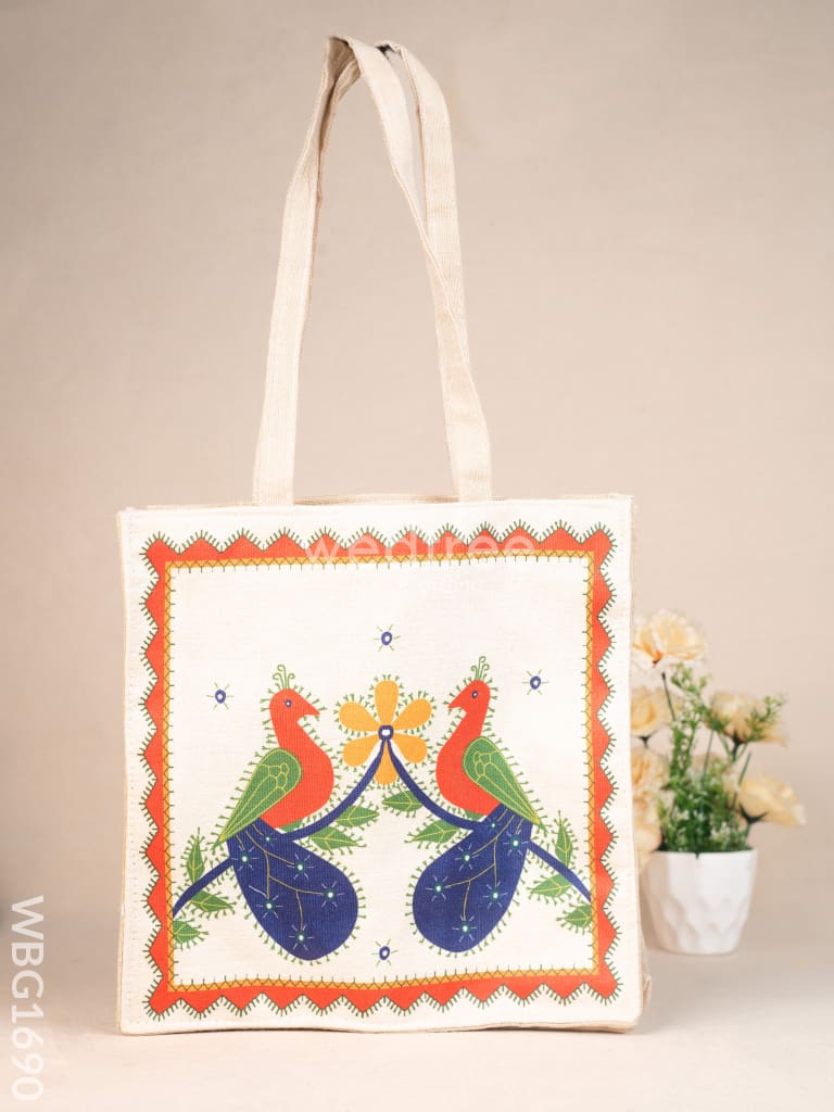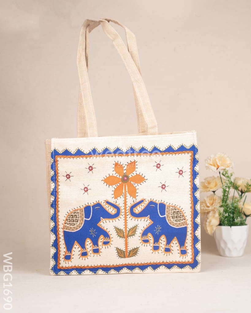 Cloth Handbag with Peacock & Elephant Motif - WBG1690