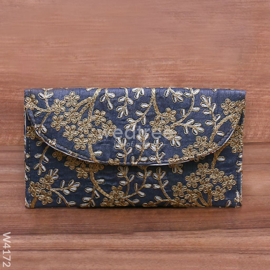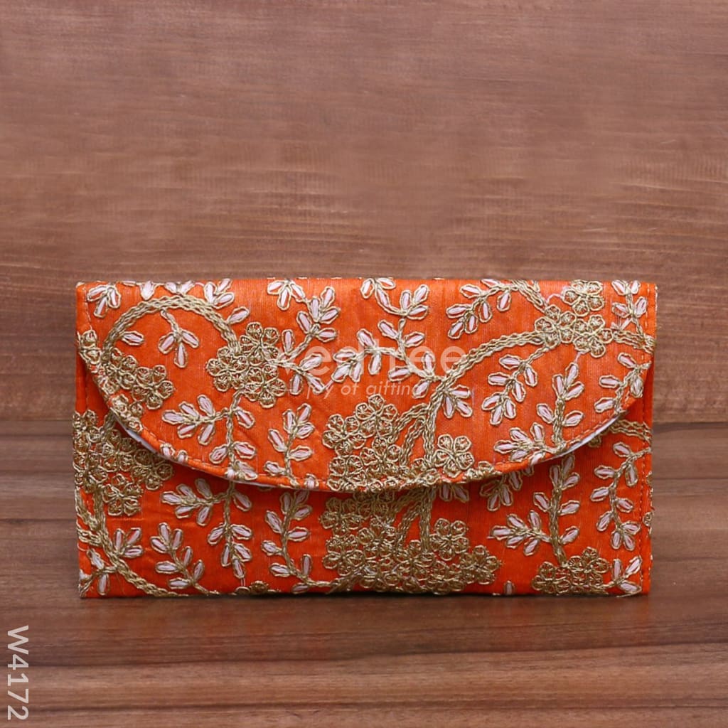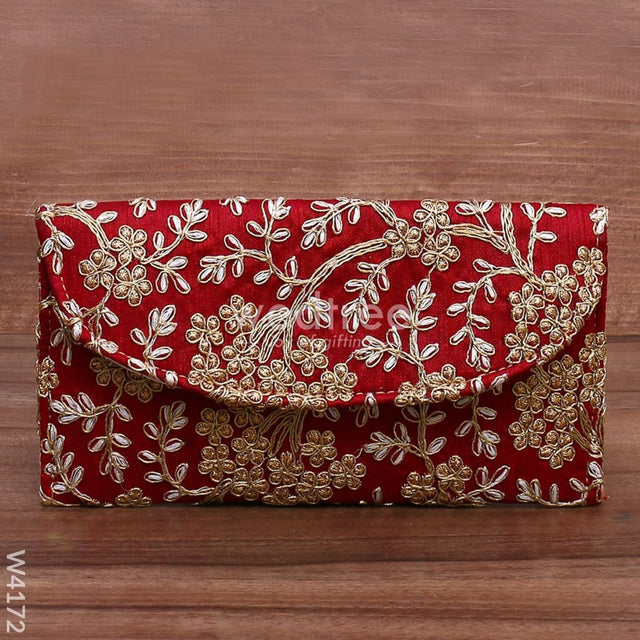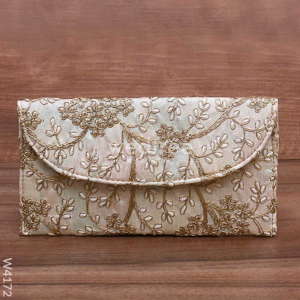 If you need a ravishing design at affordable rate, this piece of clutch made of raw silk material will verily be satisfying. Raw silk has its own innate beauty and lustrous finish. This design comes with golden floral embroidery all over totting up the beauty. Also a small zipper compartment at back side of the clutch is apt to store coins etc.