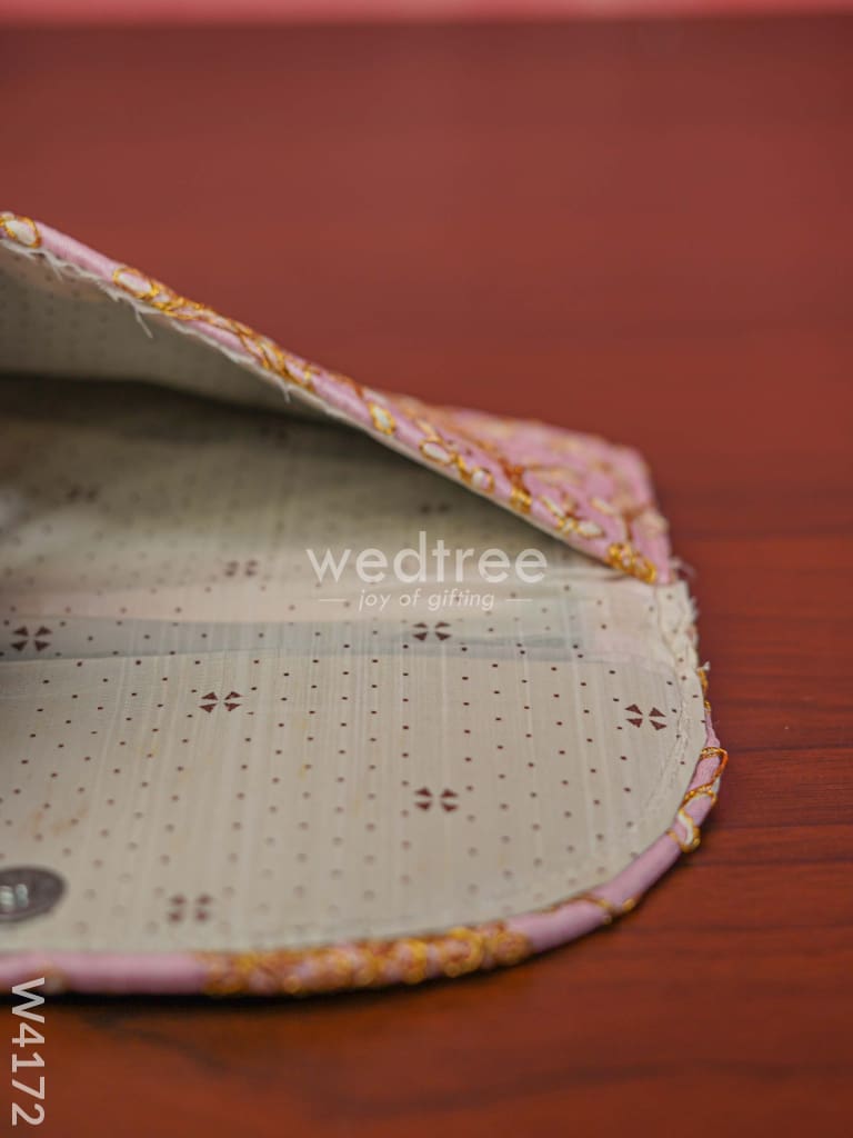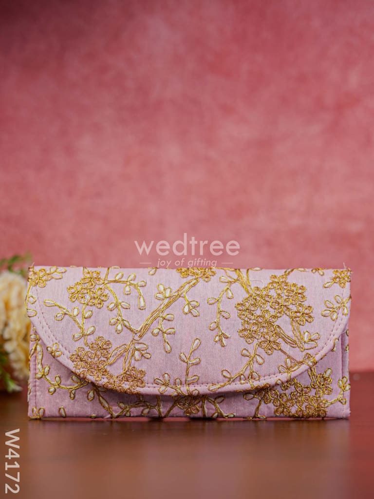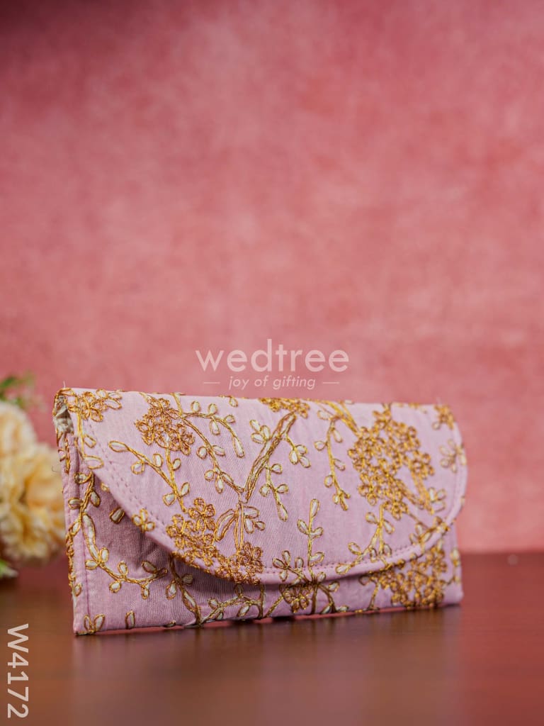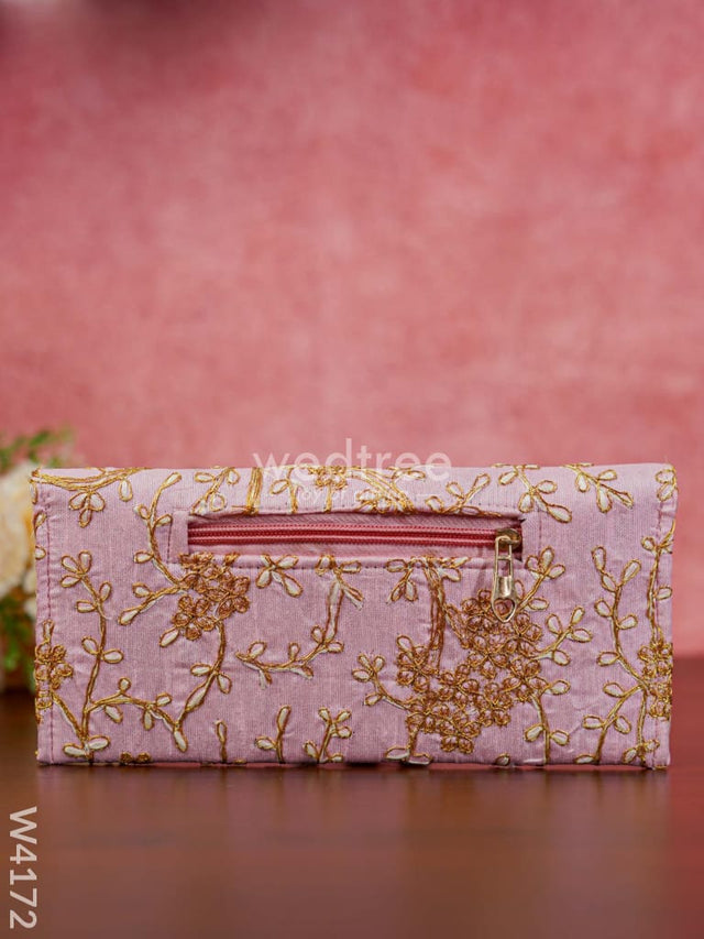 If you need a ravishing design at affordable rate, this piece of clutch made of raw silk material will verily be satisfying. Raw silk has its own innate beauty and lustrous finish. This design comes with golden floral embroidery all over totting up the beauty. Also a small zipper compartment at back side of the clutch is apt to store coins etc.