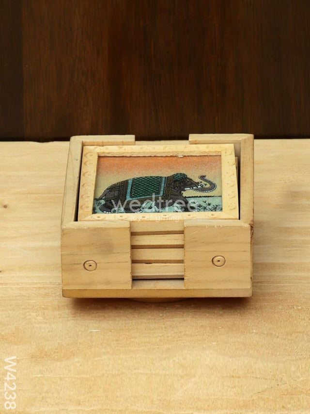 Wooden Hand Painted Coasters (Set of 4) with a Revolving Stand - W4238