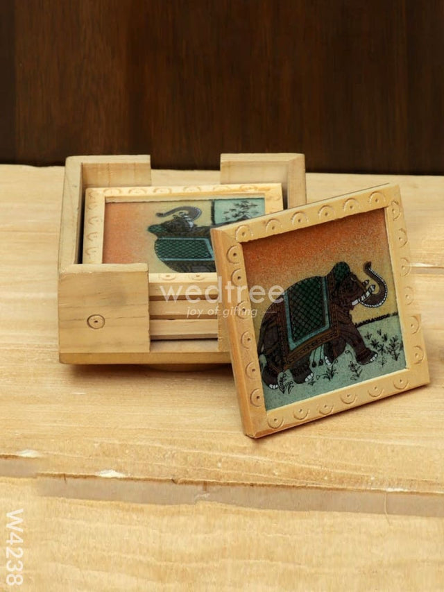 • A very elegant set of 4 coasters, hand painted with an elephant in the center.