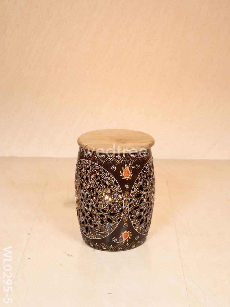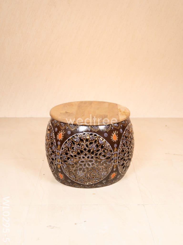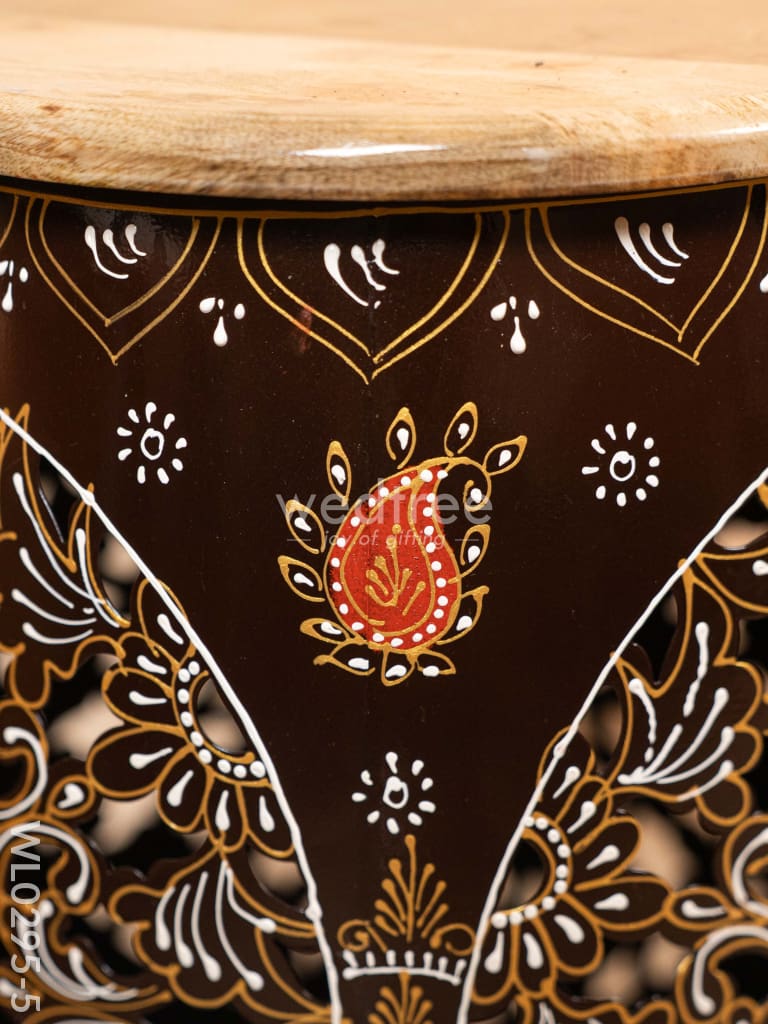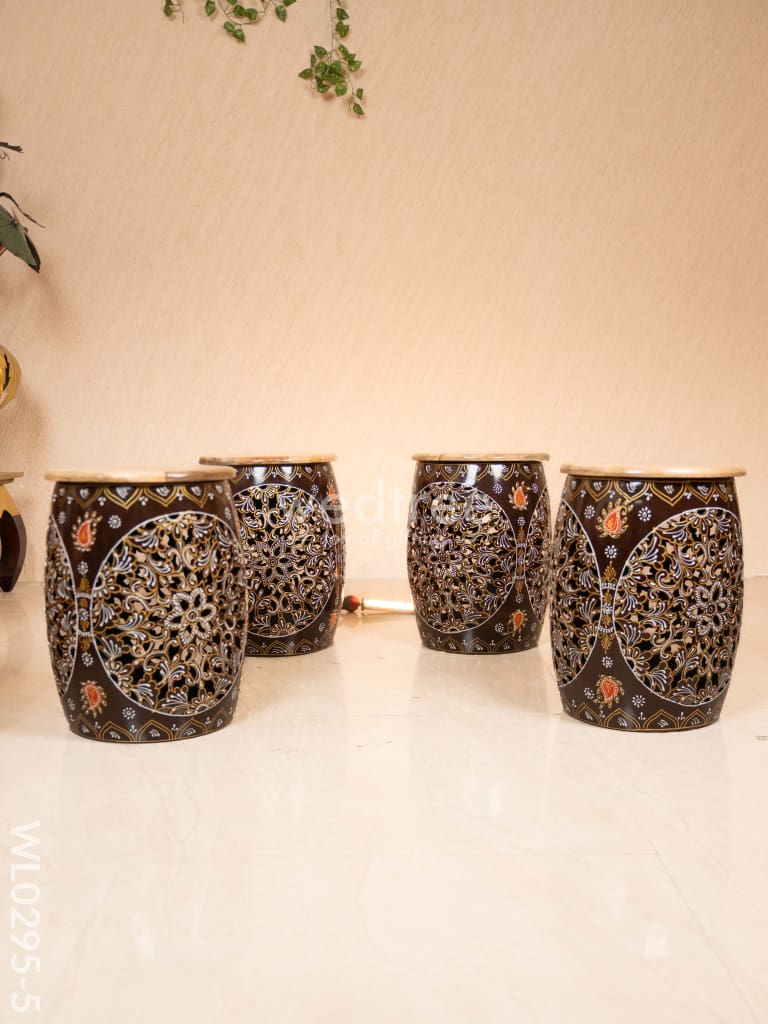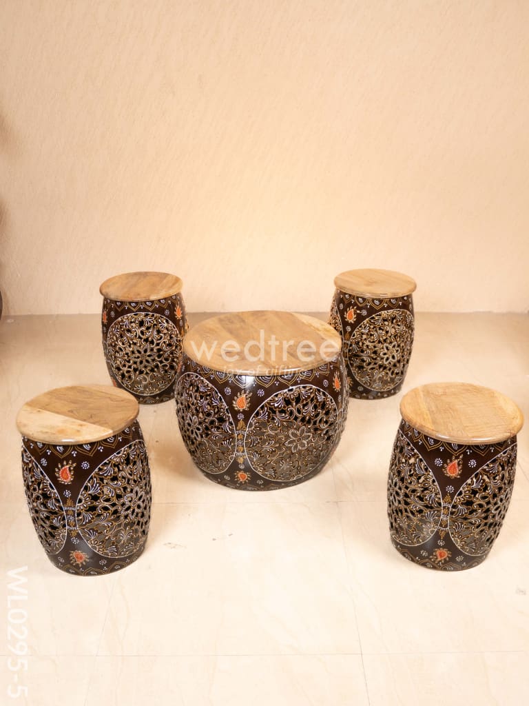 Coffee centre table with 4 side stools (Hand painted with Jhaali cutting) - Brown - WL0295-5