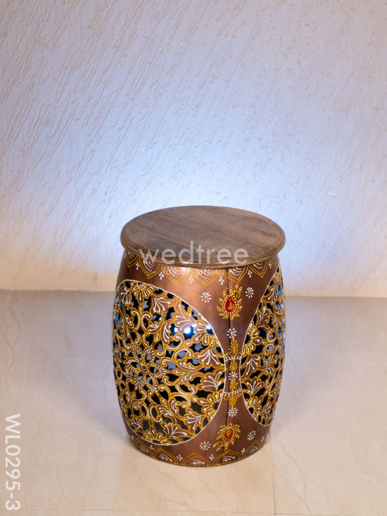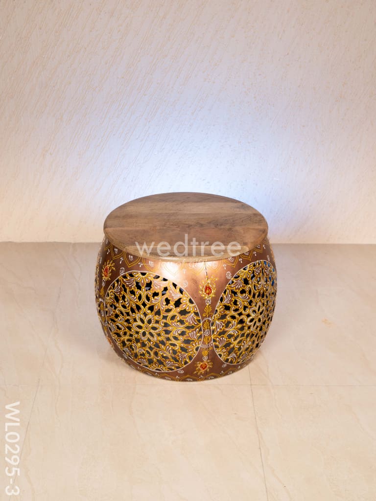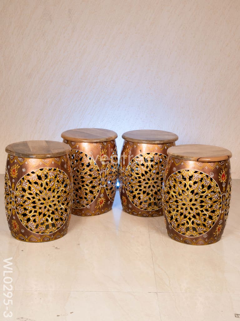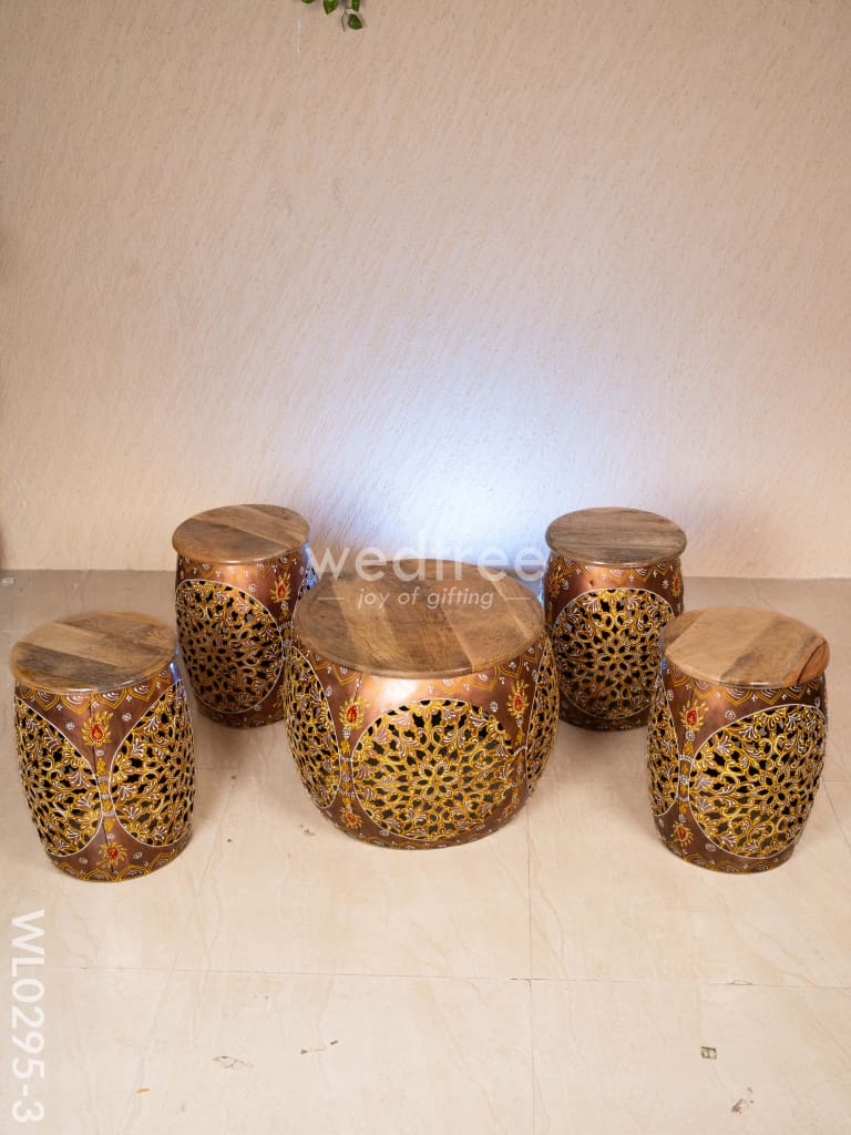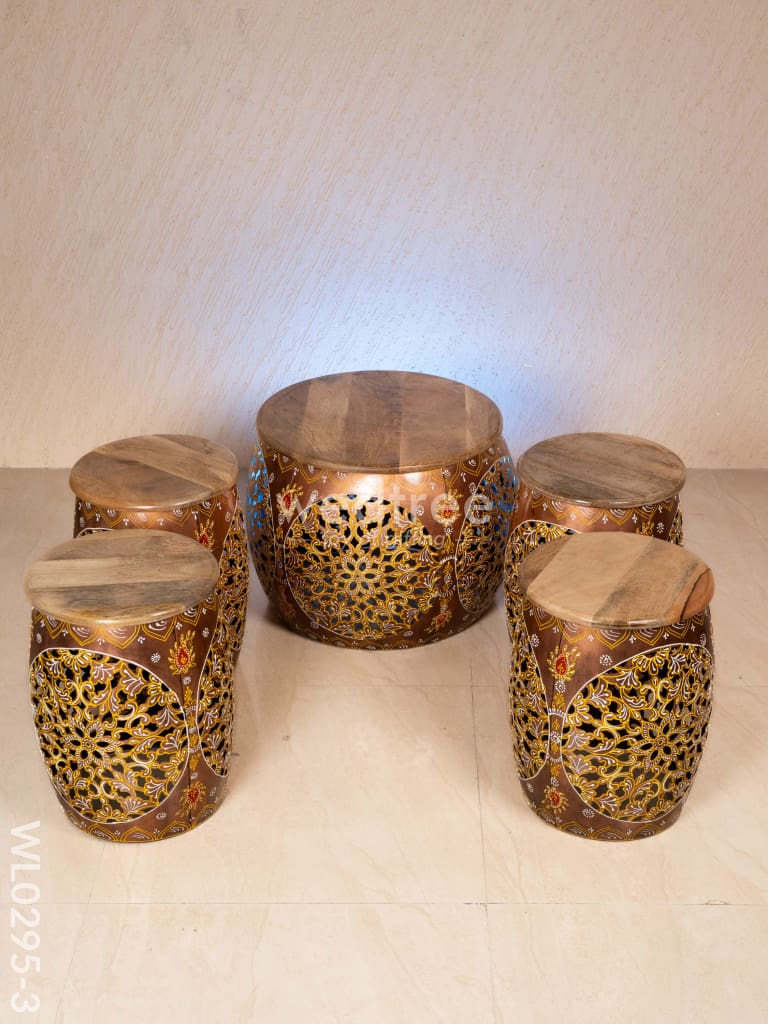 Coffee centre table with 4 side stools (Hand painted with Jhaali cutting) - Copper - WL0295-3