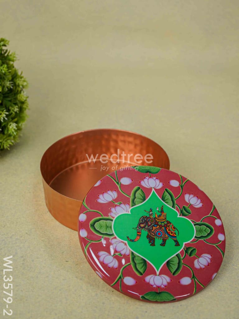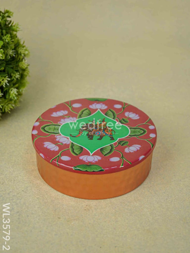 The copper body and lid with decorative Pichwai prints are perfect gifting option for special occasions such as weddings or birthdays. The box is also easy to carry!