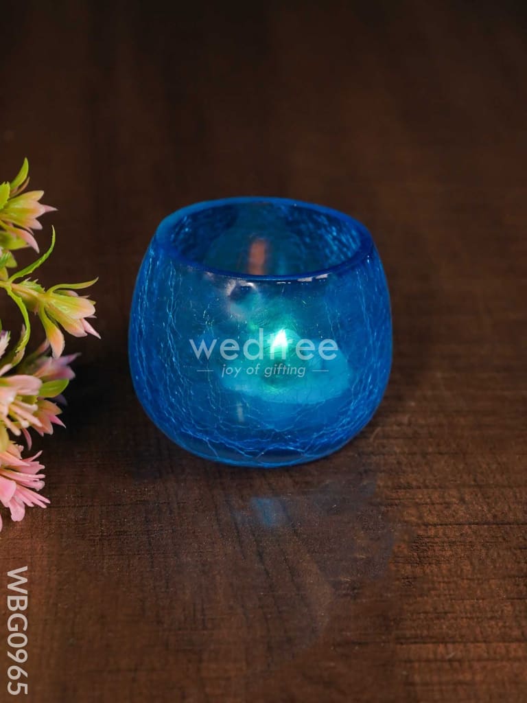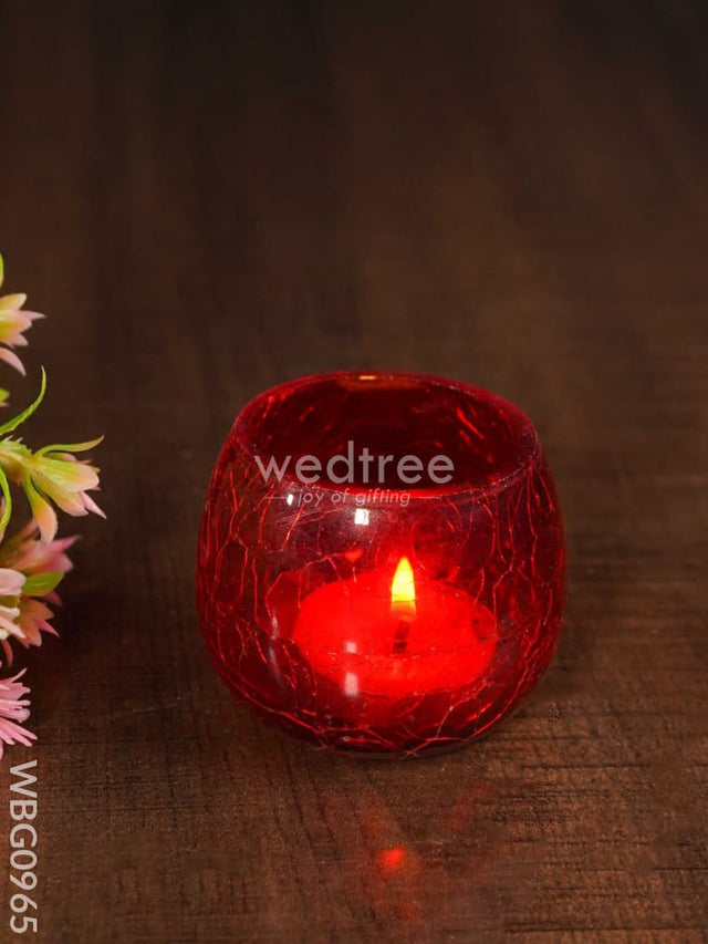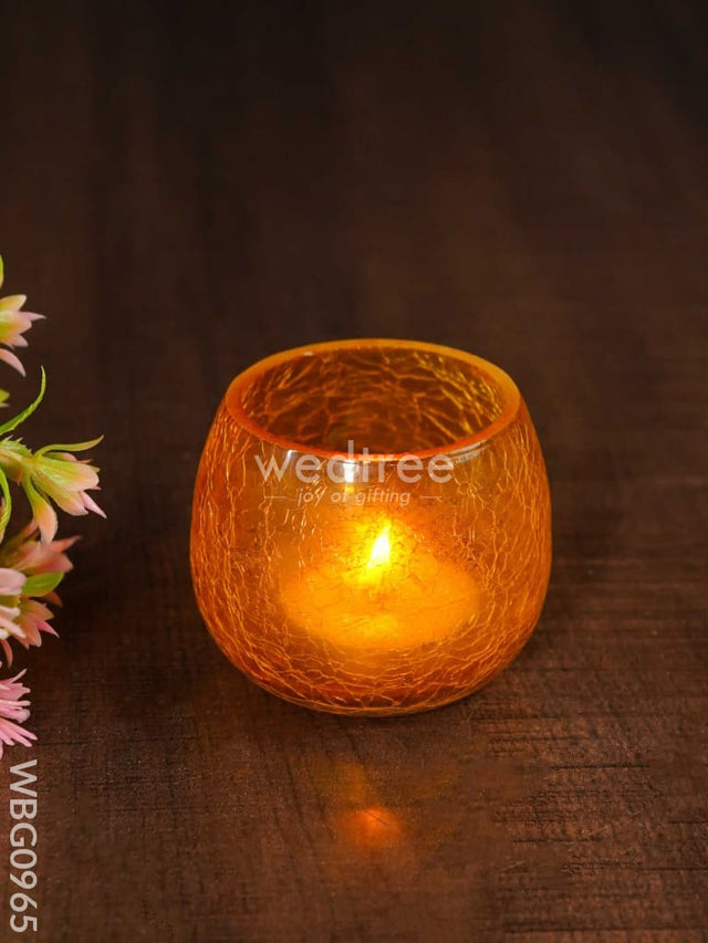 - Featuring an elegant candle holder that comes in cracked glass in lovely colours.