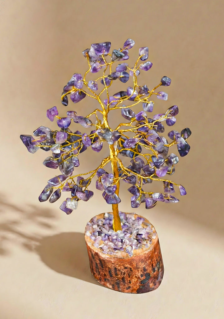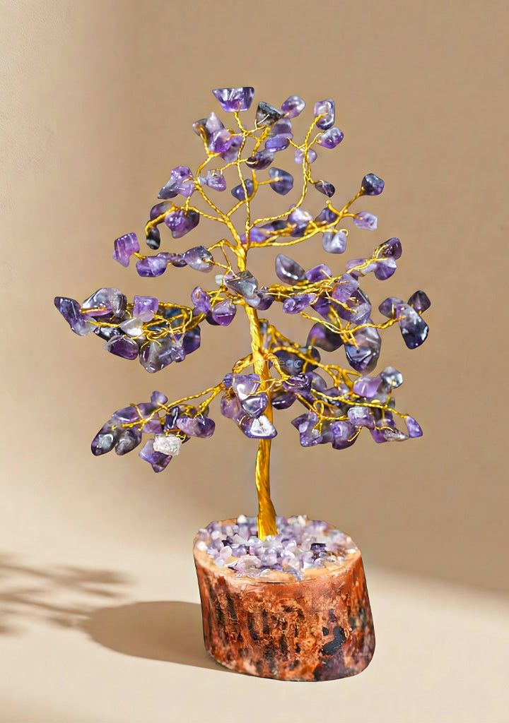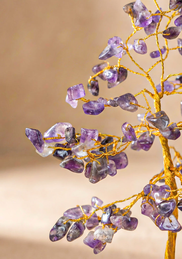 - This beautiful Amethyst tree embellished with purple crystals and is believed to bring in prosperity!