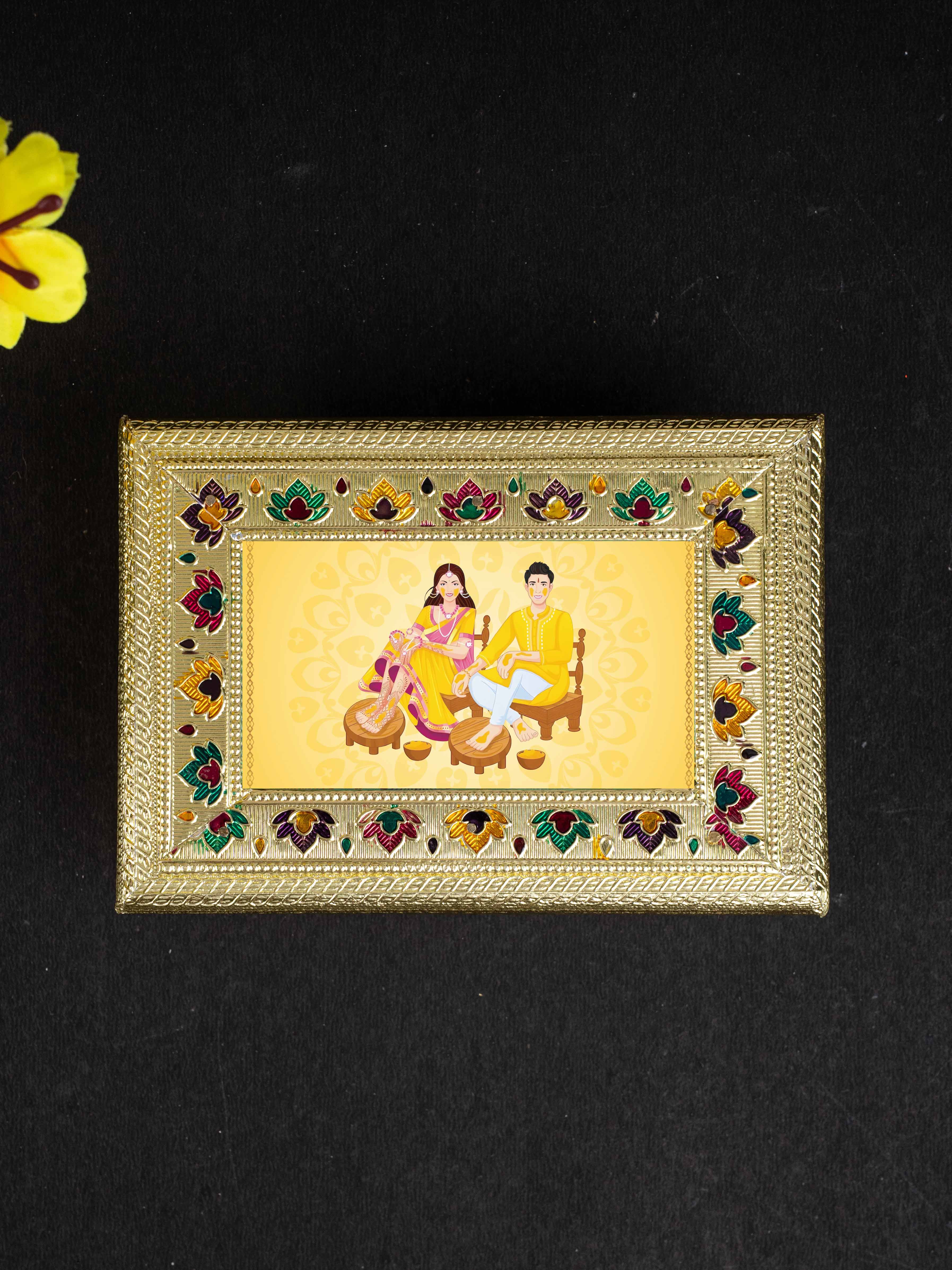 Customized - Meenakari Dry Fruit Box - 7x5 inch - Gold - WBG1838