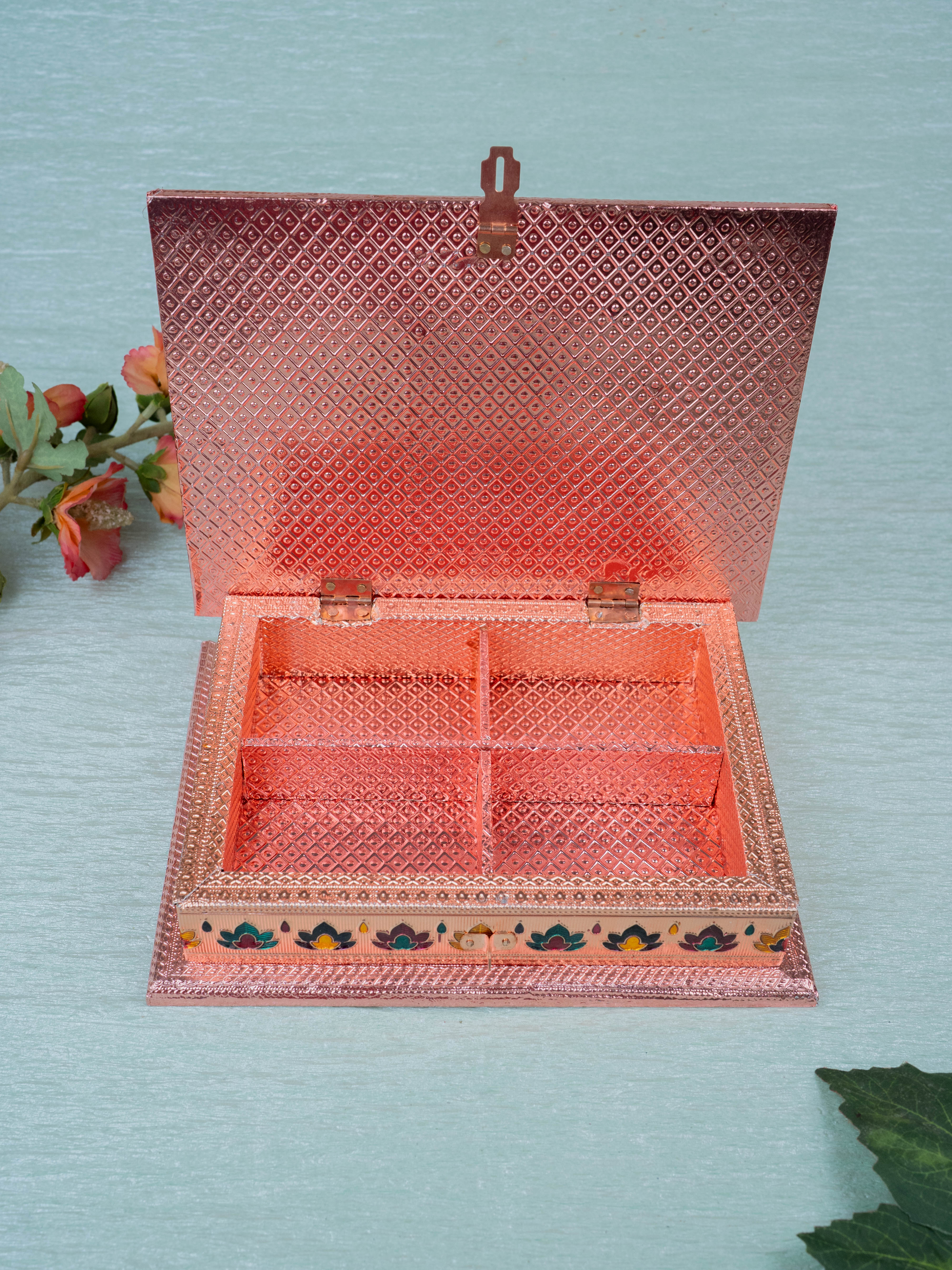 Customized - Meenakari Dry Fruit Box - 9x6 inch - Copper - WL5340
