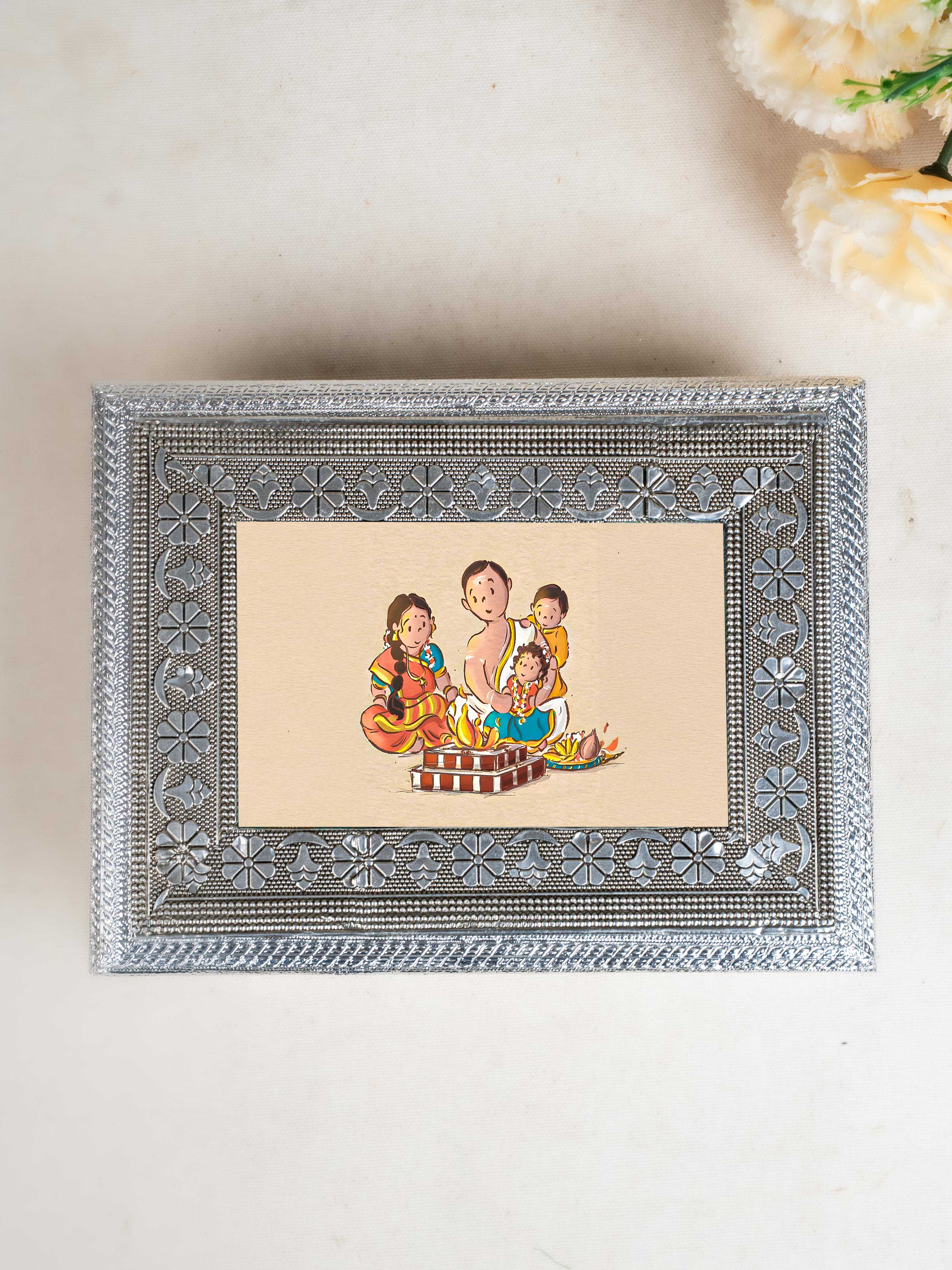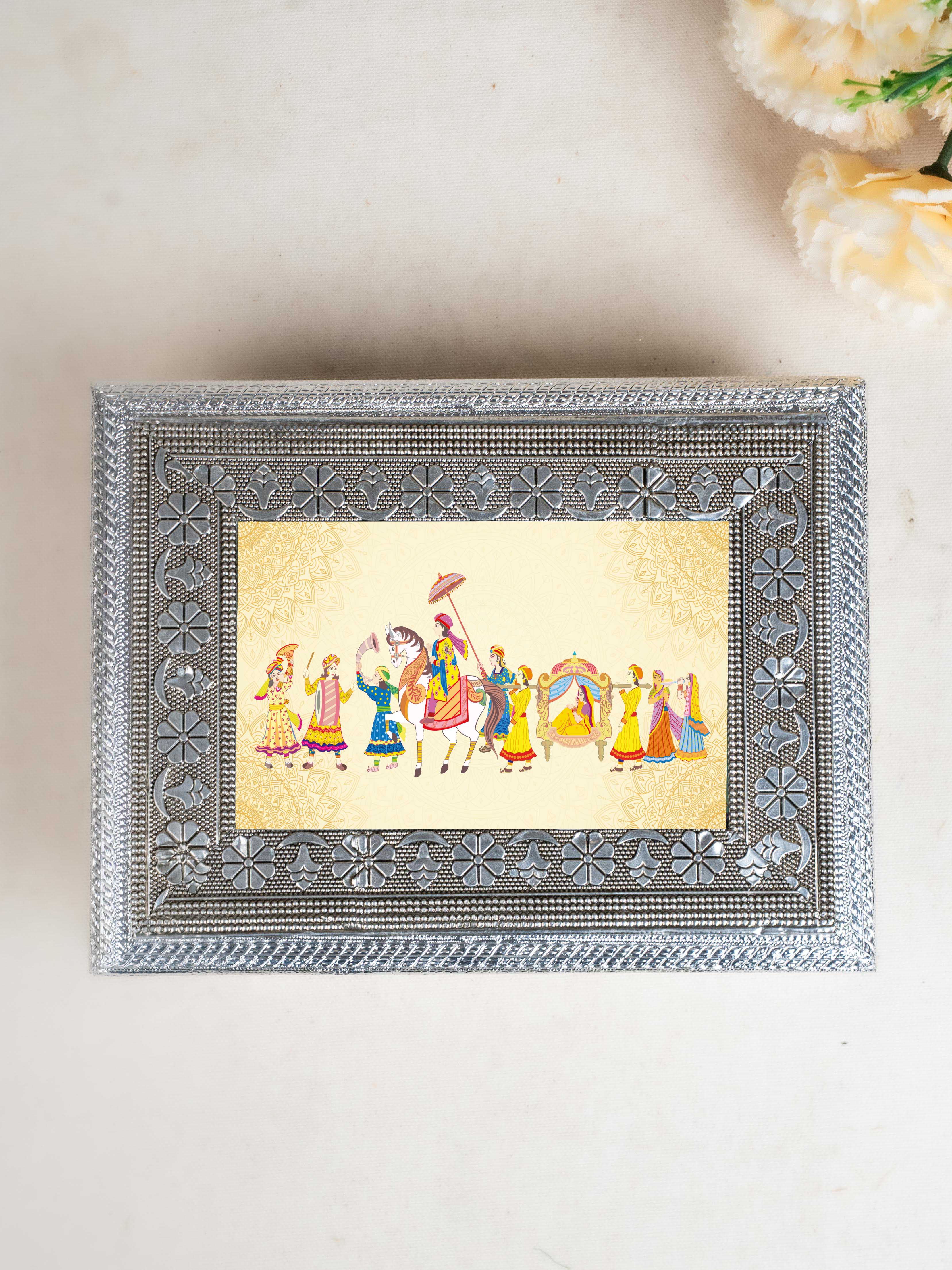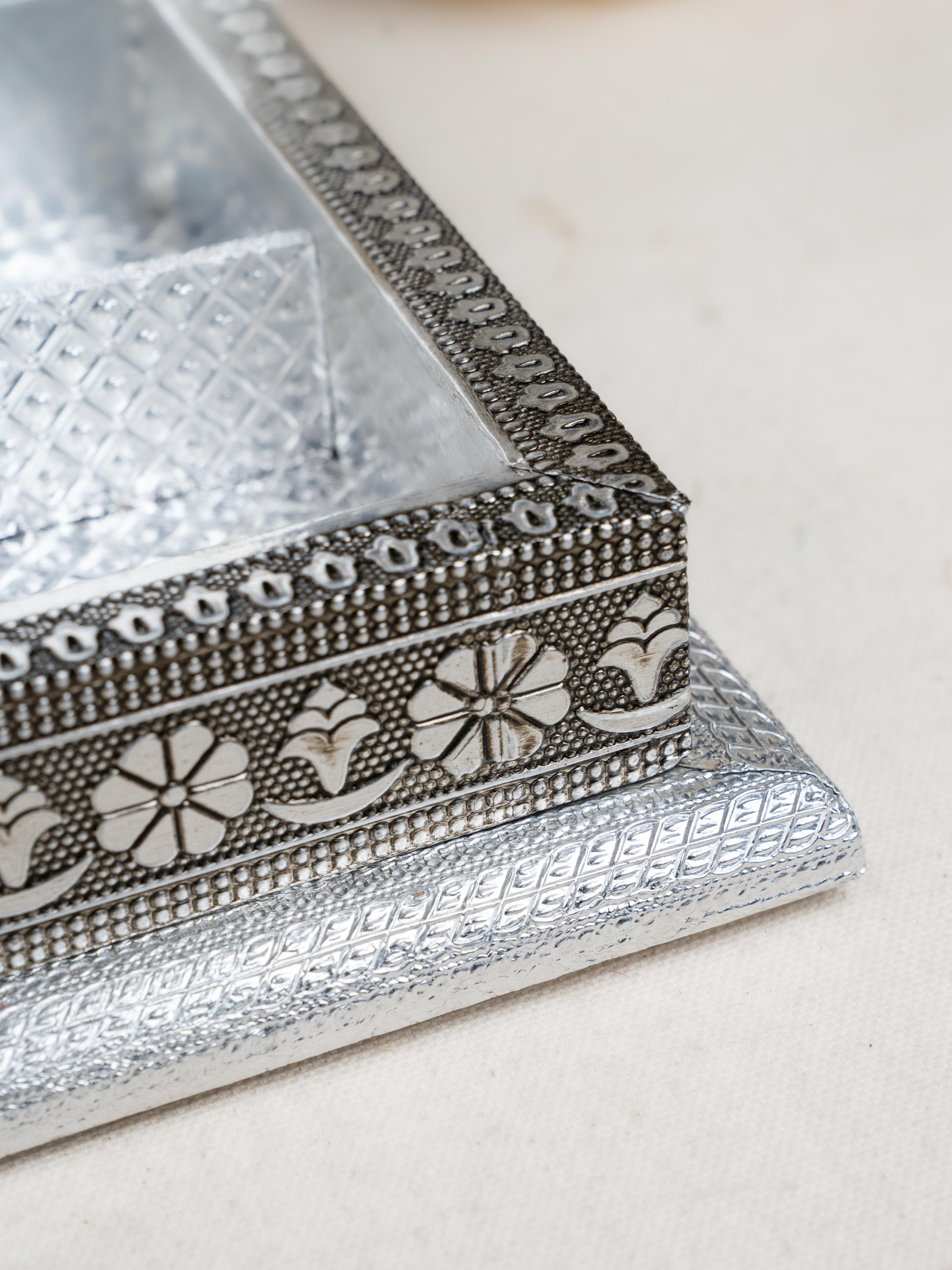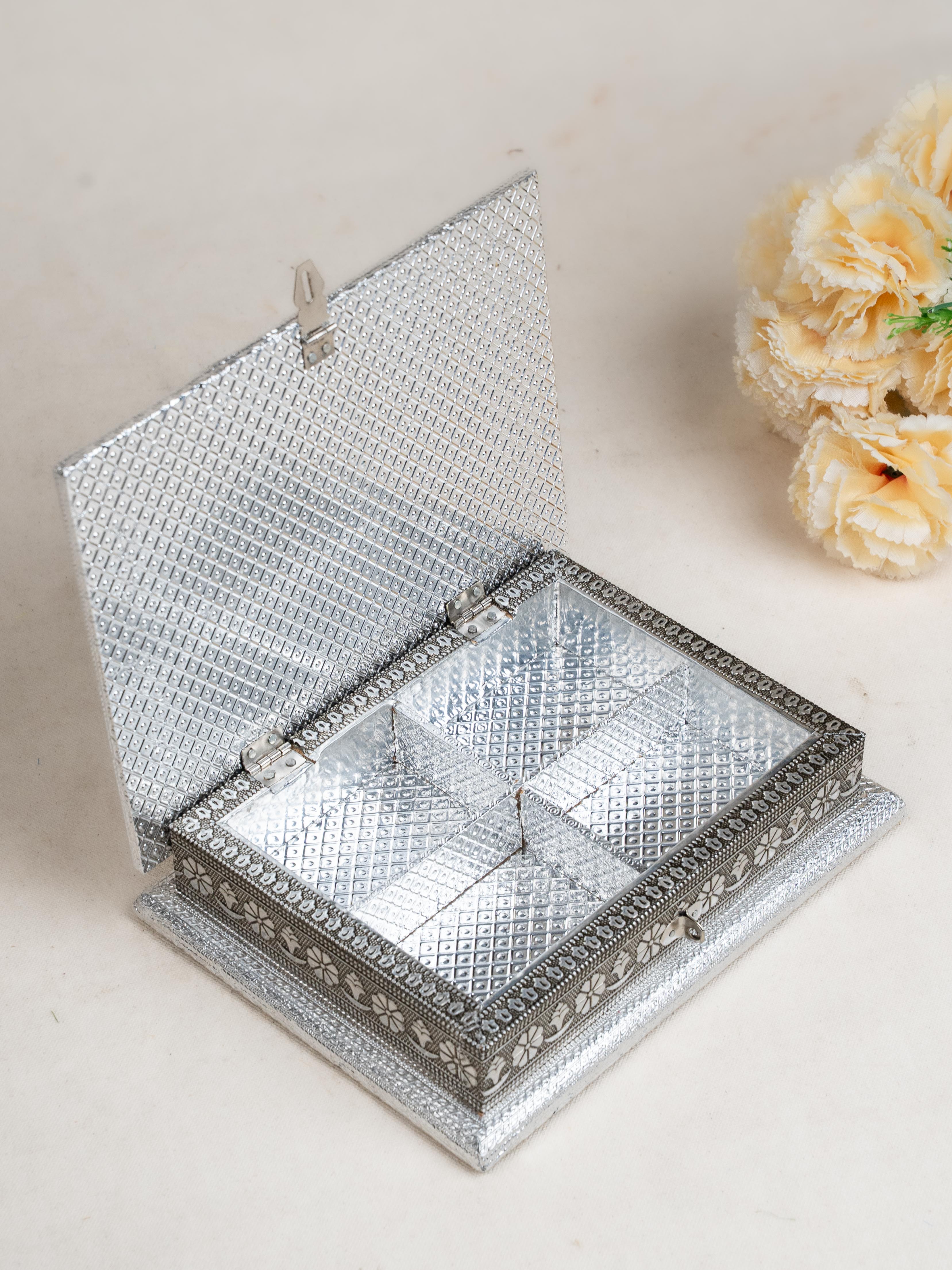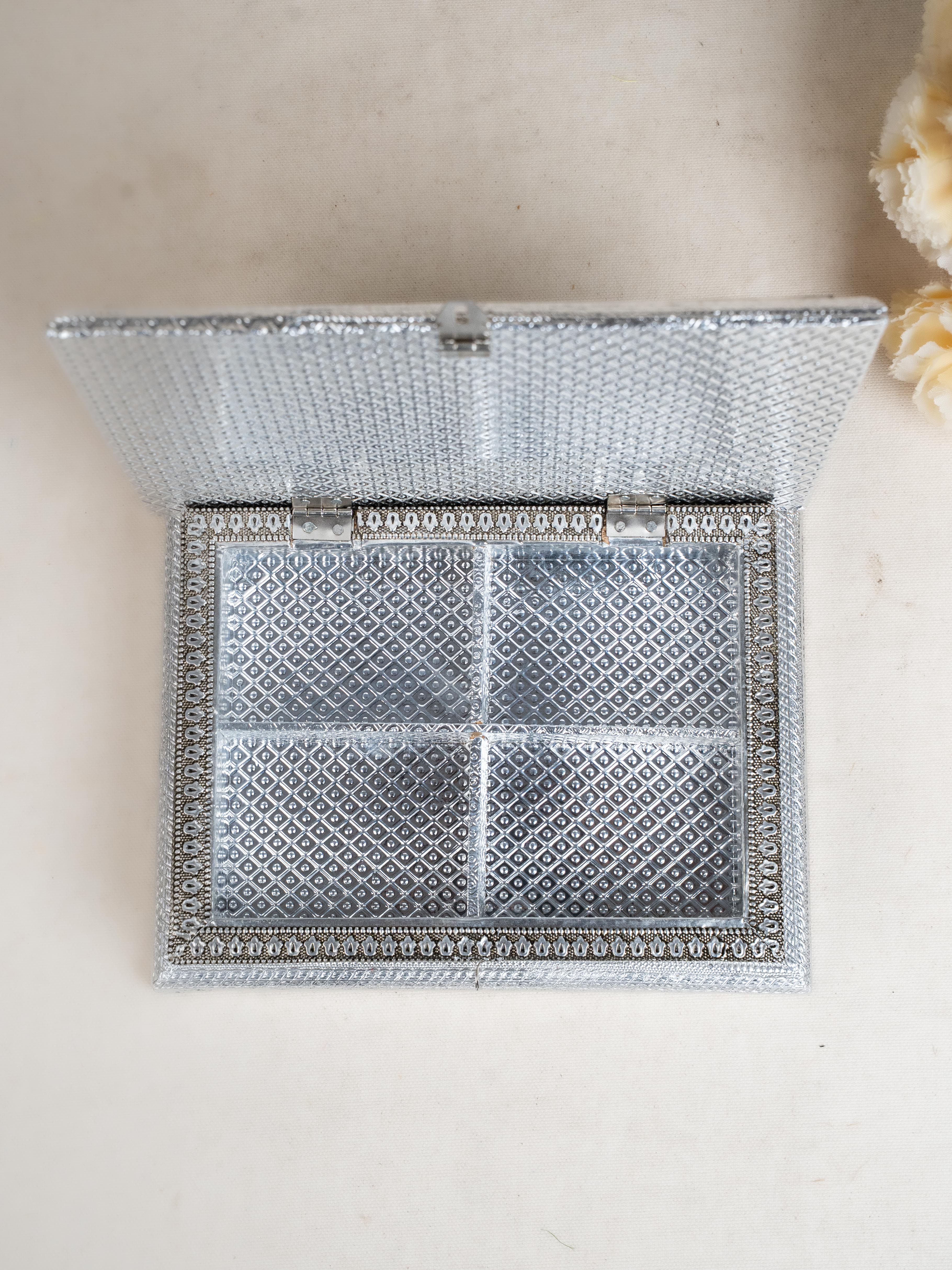 Customized - Meenakari Dry Fruit Box - 9x6 inch - Silver - WL5354