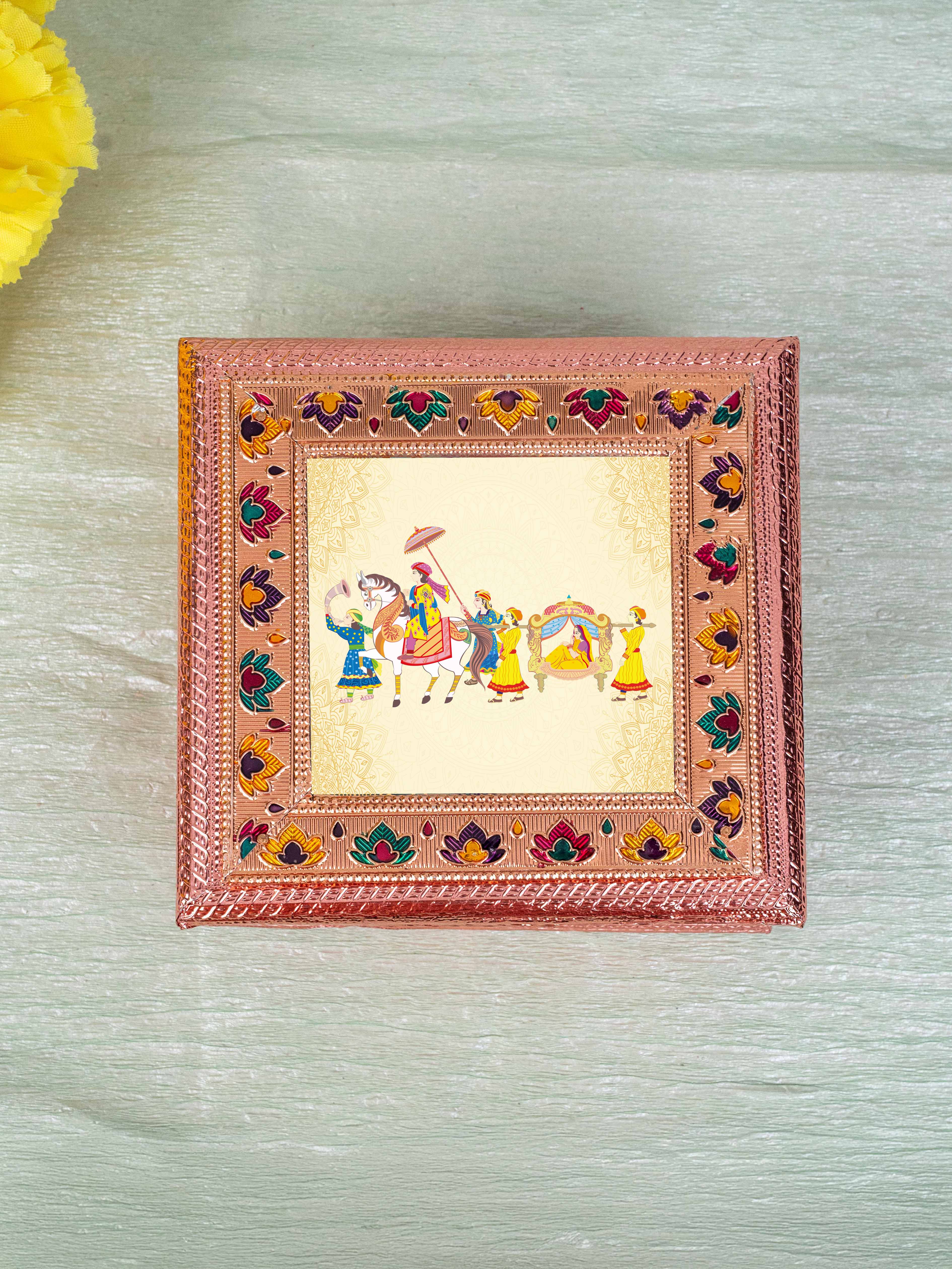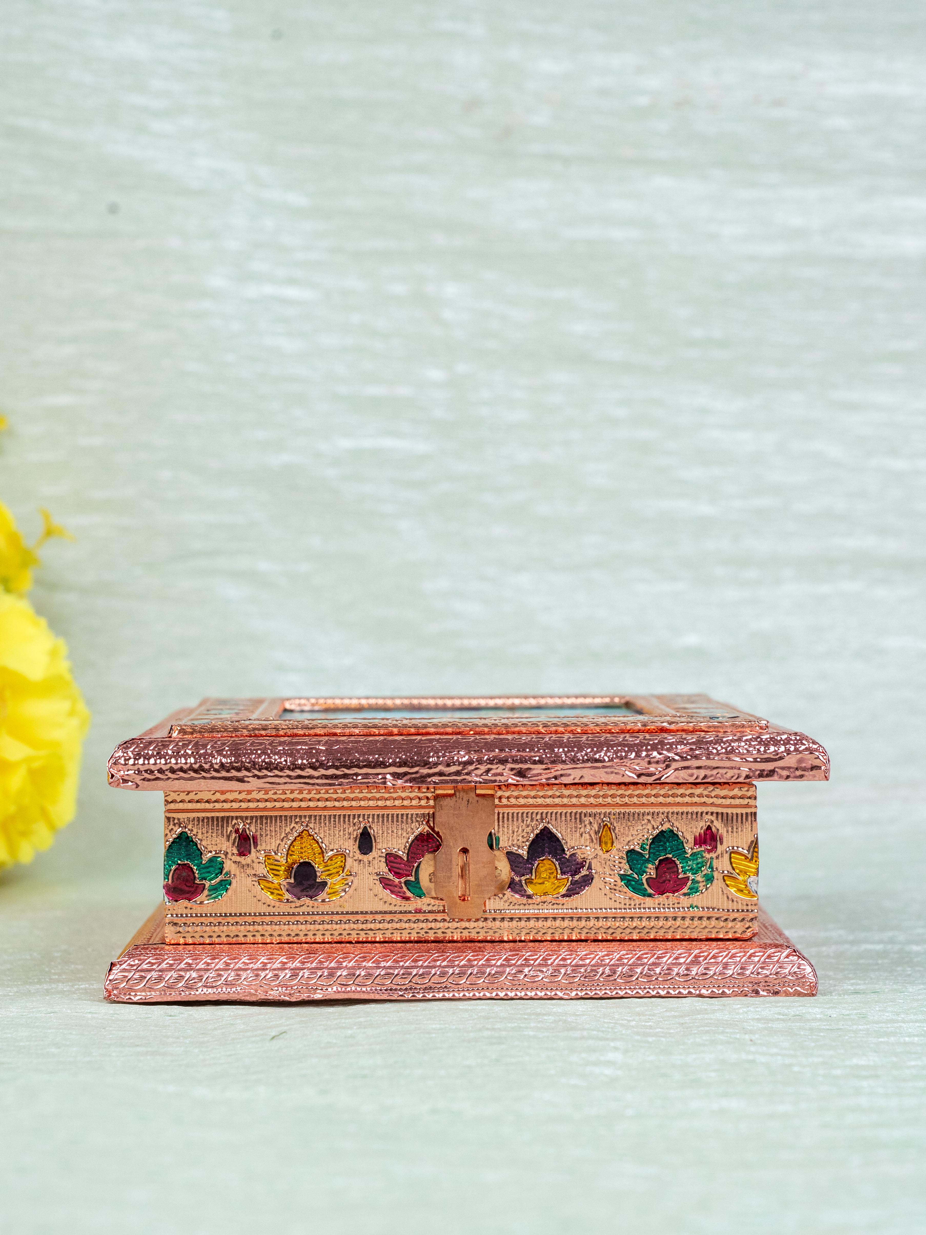 Customized - Meenakari Dry Fruit Box - Copper - 6x6 inch - WBG1825