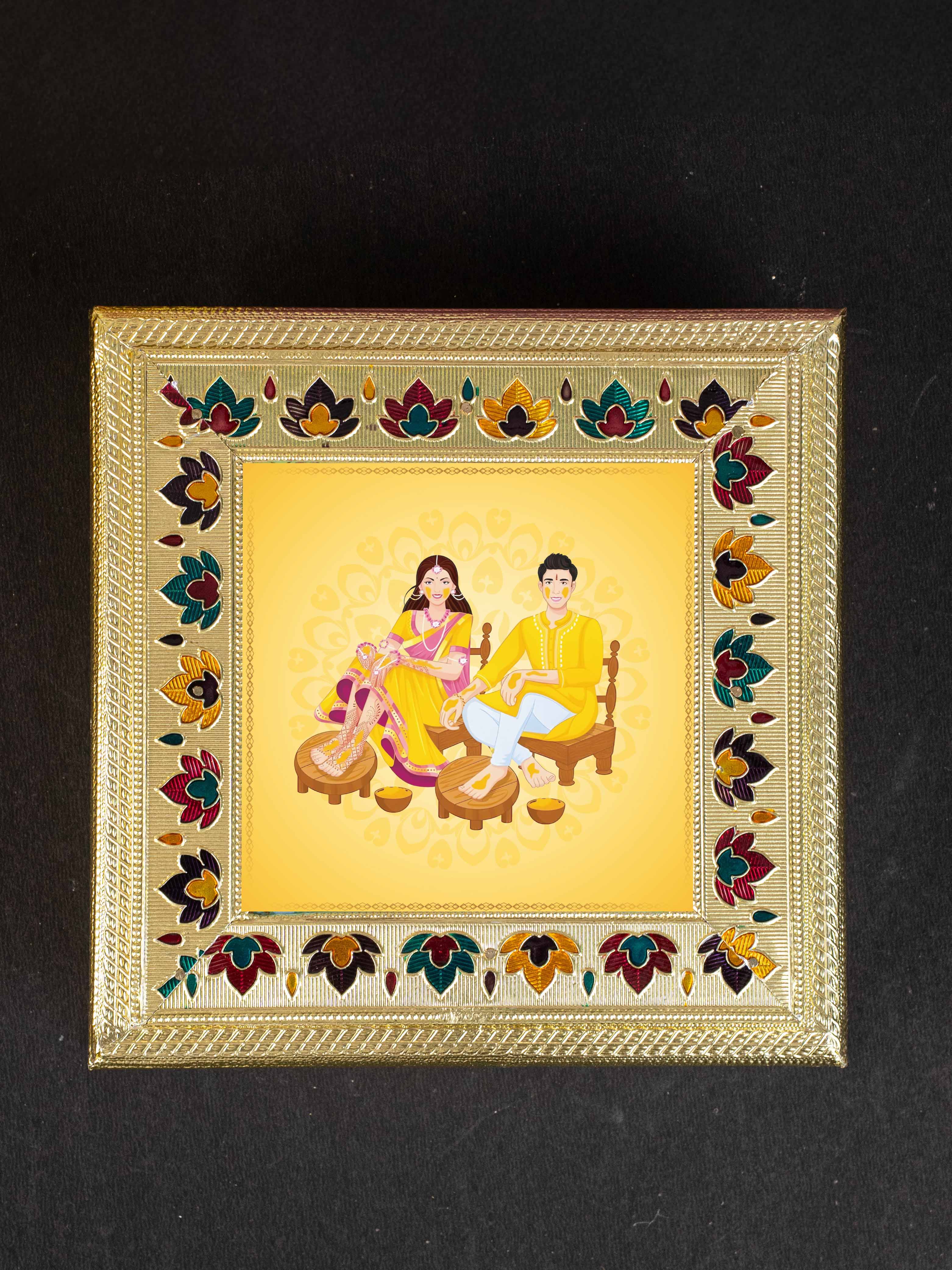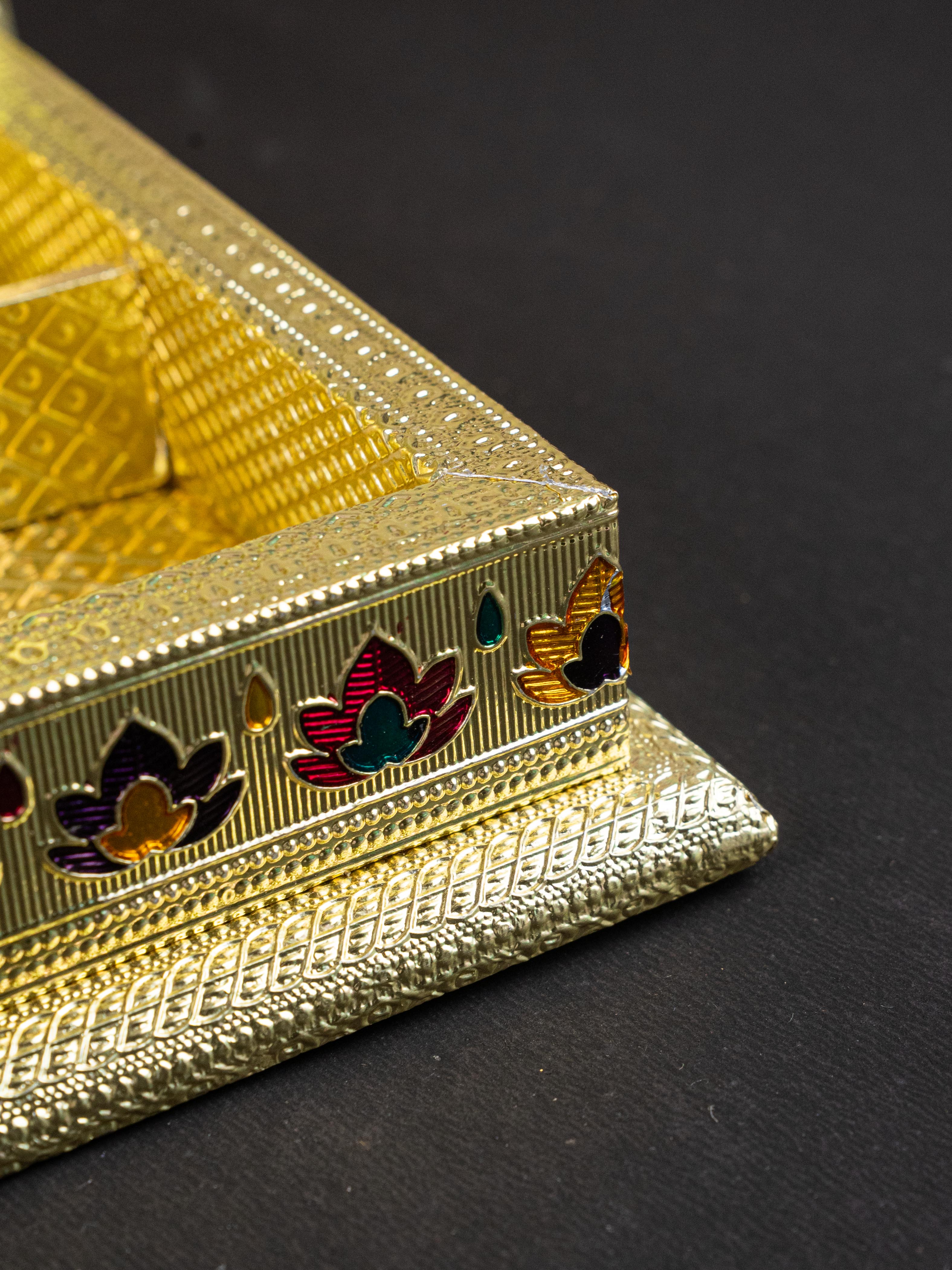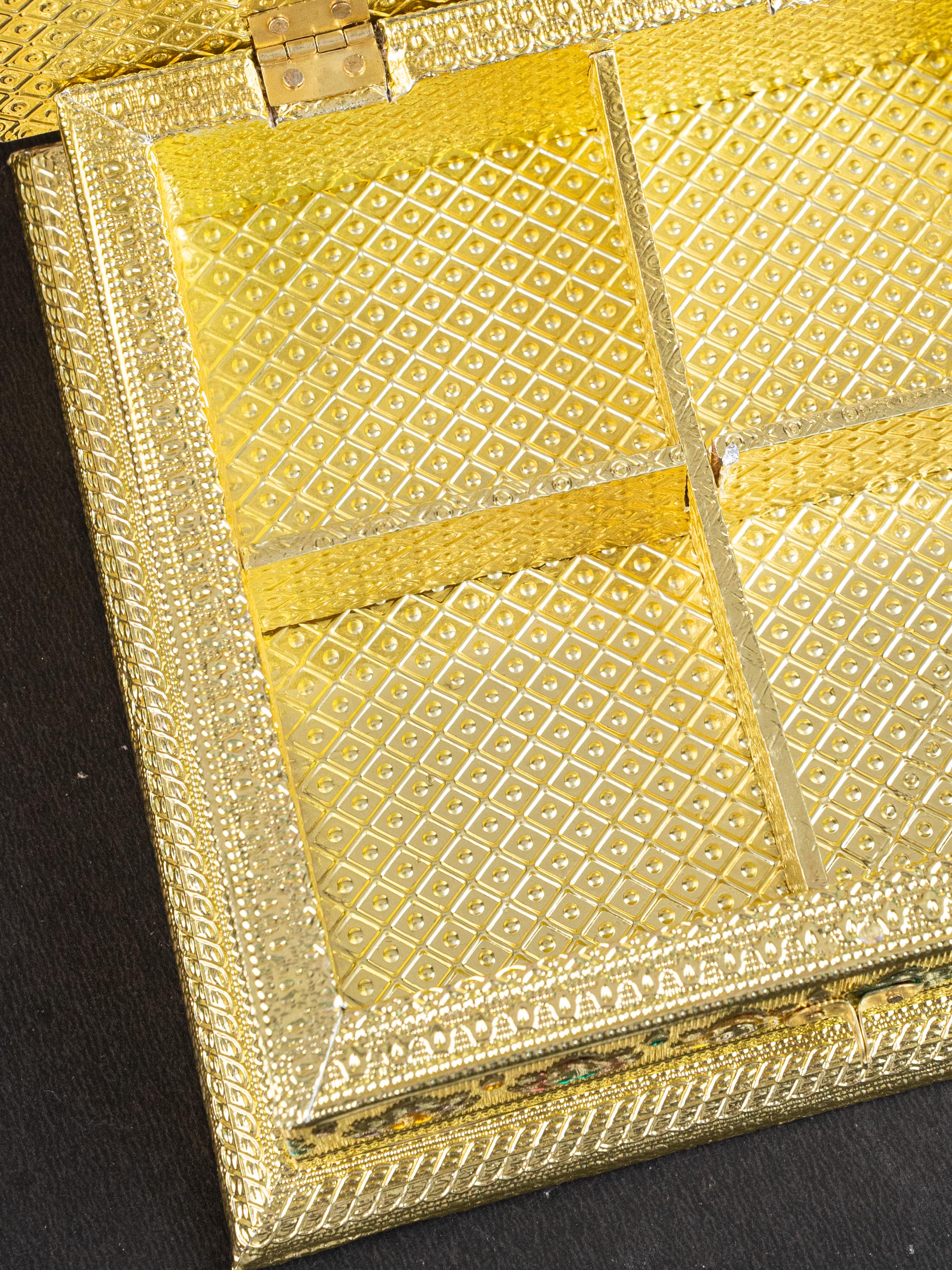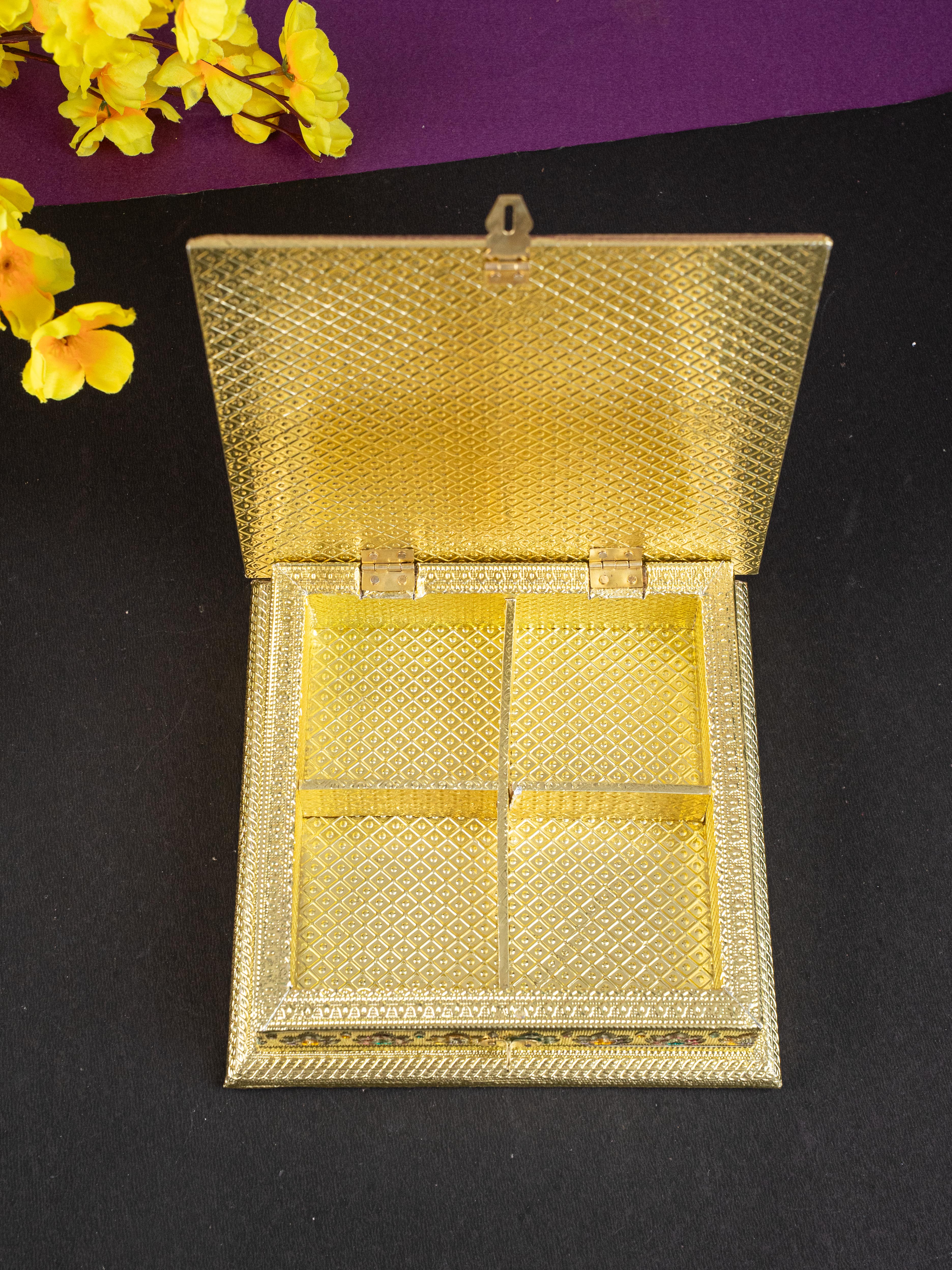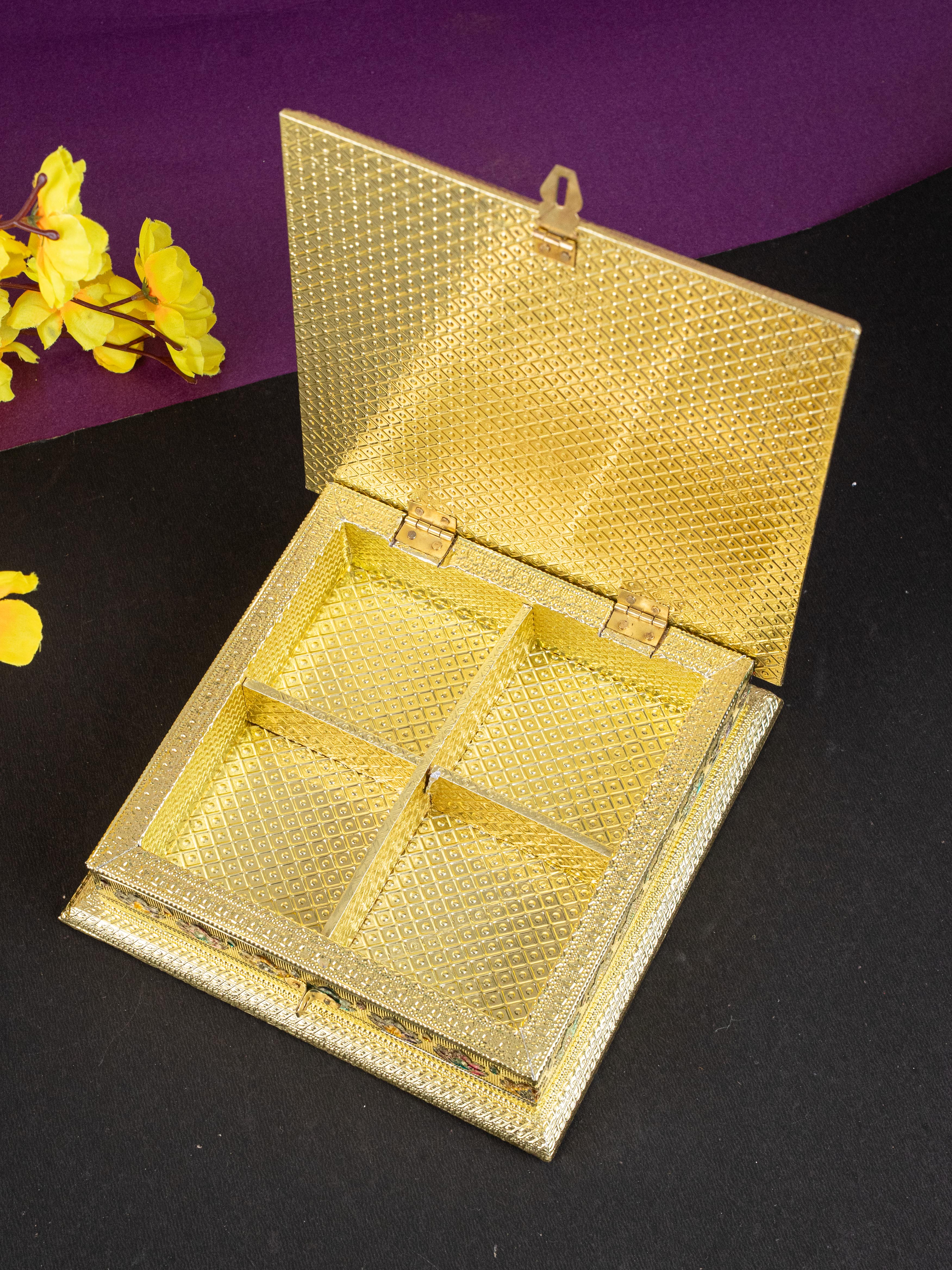 Customized - Meenakari Dry Fruit Box - Gold - 8x8 inch - WL5261
