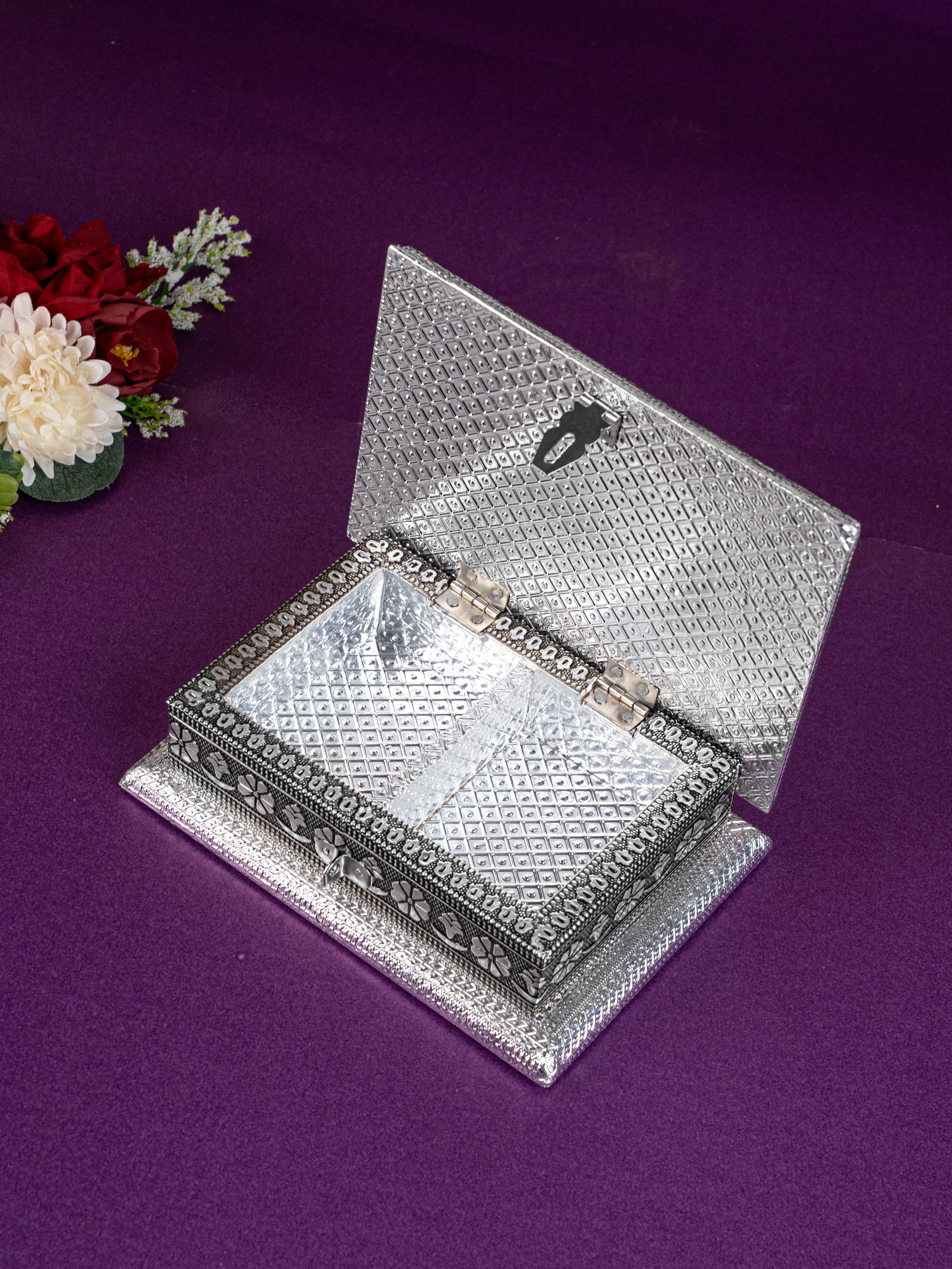 Customized - Oxidized Dry Fruit Box - 7x5 inch - Silver - WBG1831