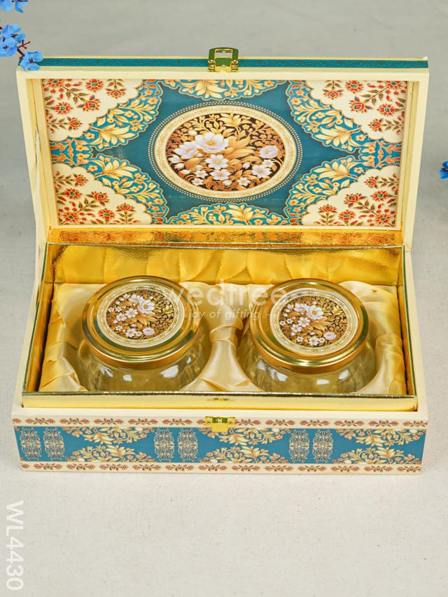 Decorative 2 Jar Dry Fruit Box - Teal Blue - WL4430