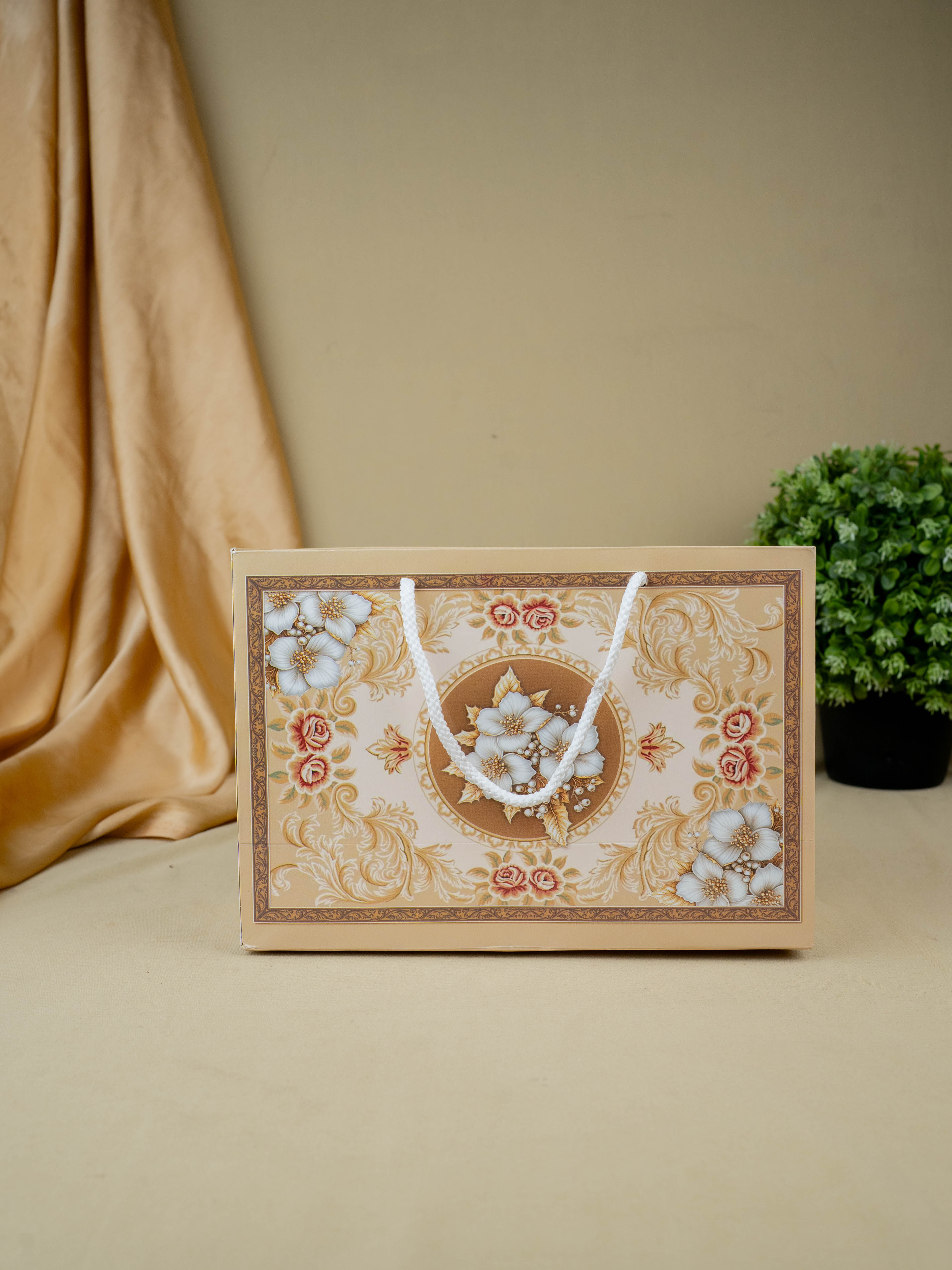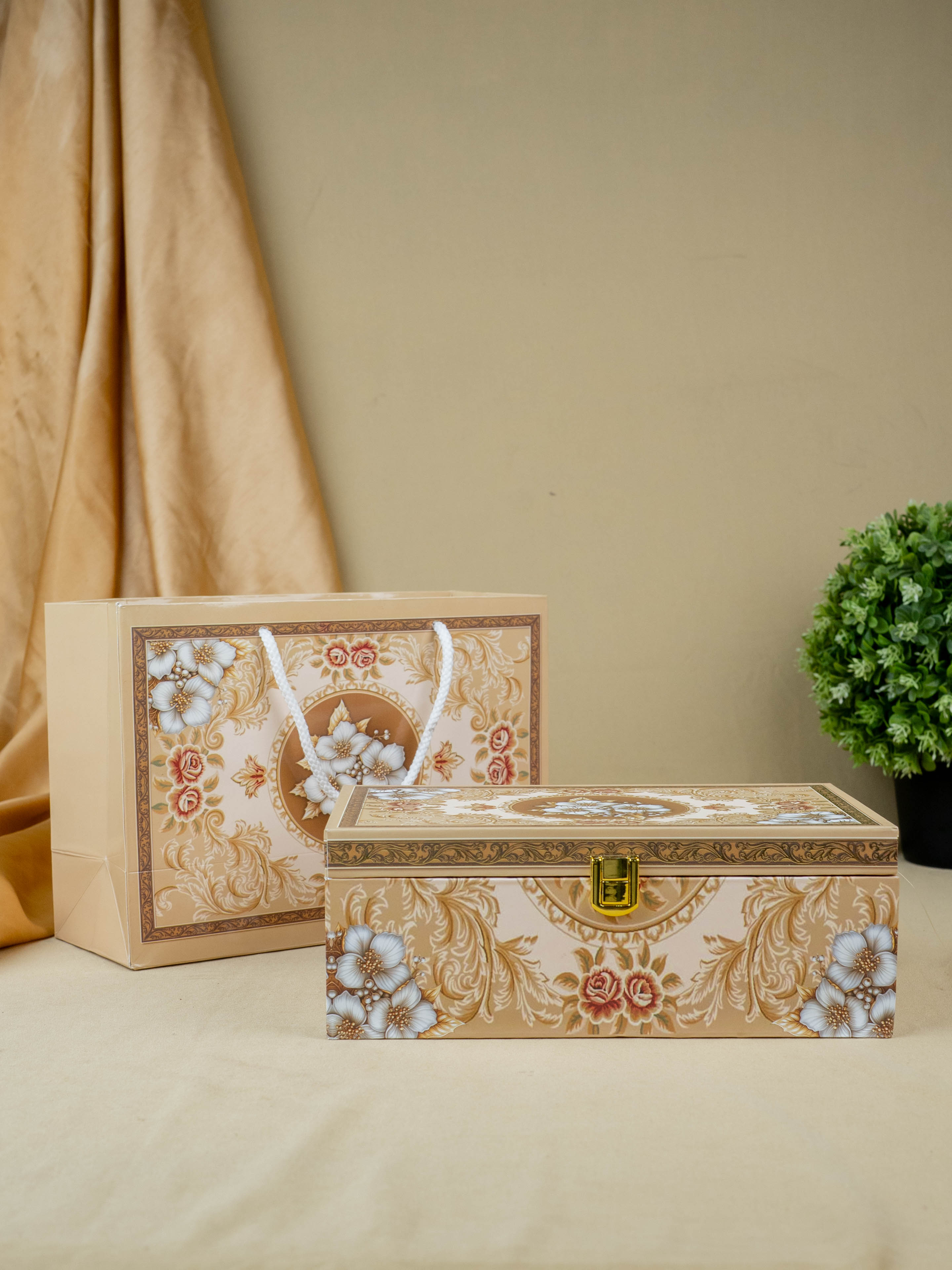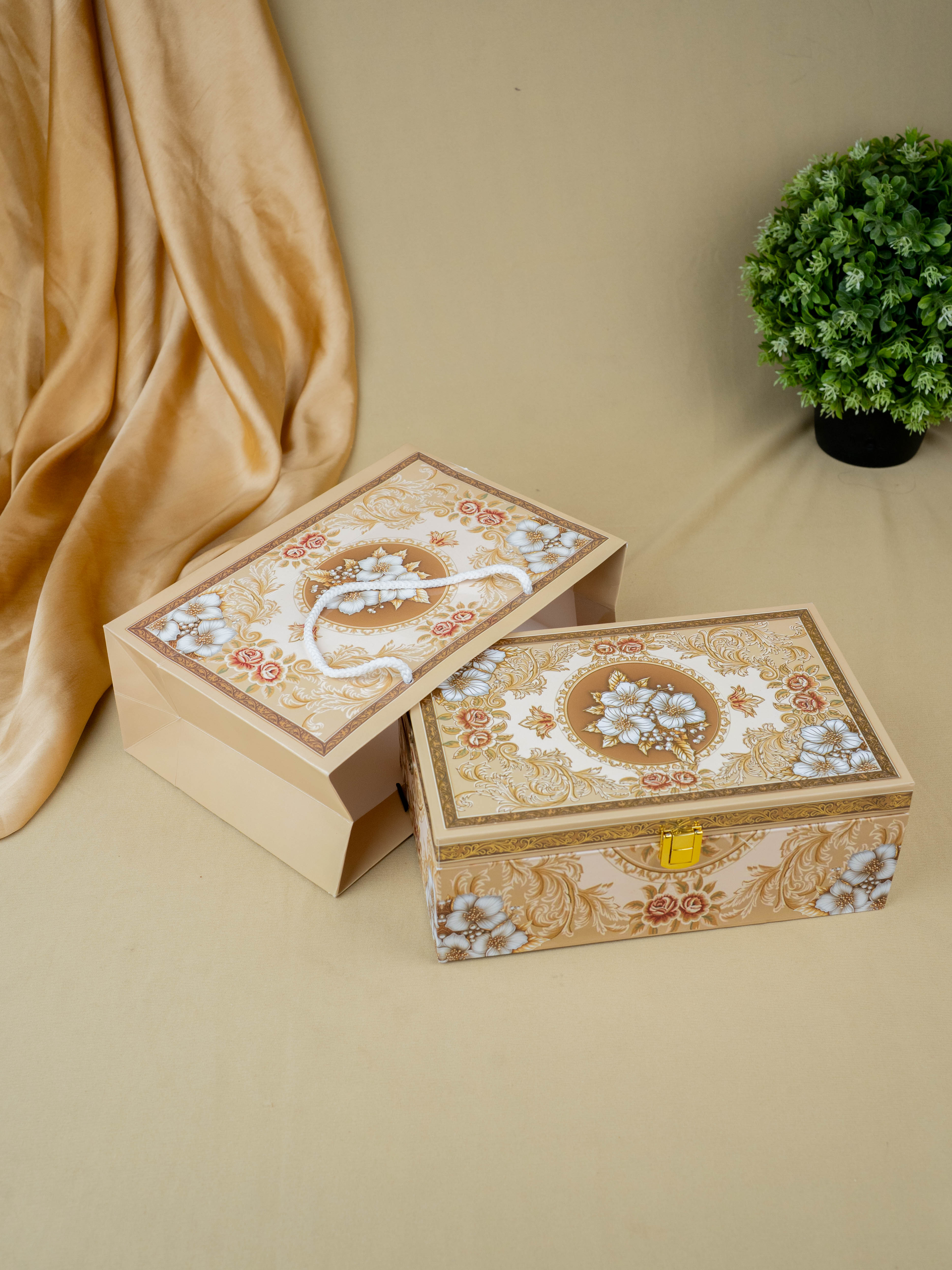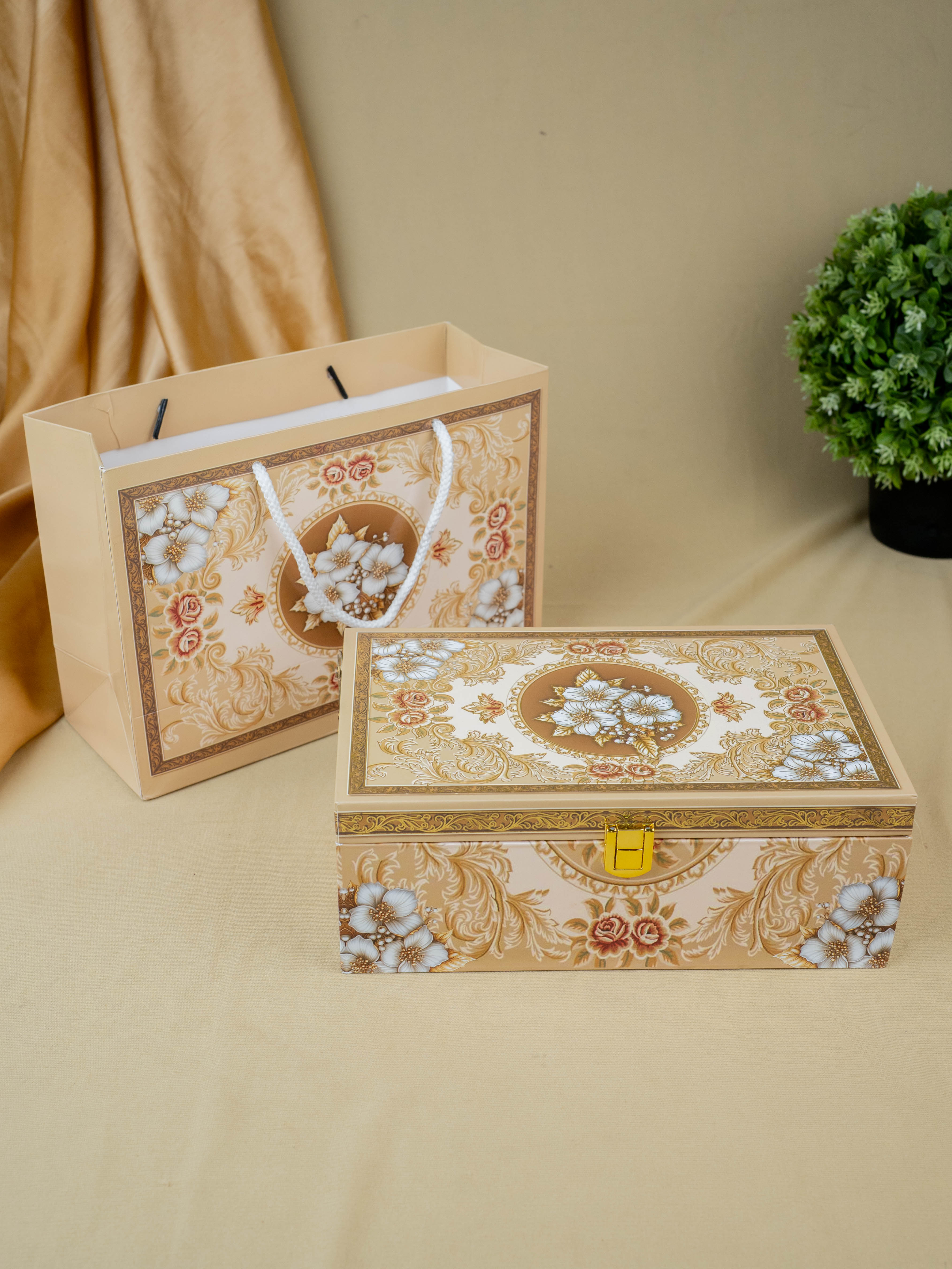 - Here's a Gorgeous Dry Fruit Box Adorned with Floral Prints all Over.