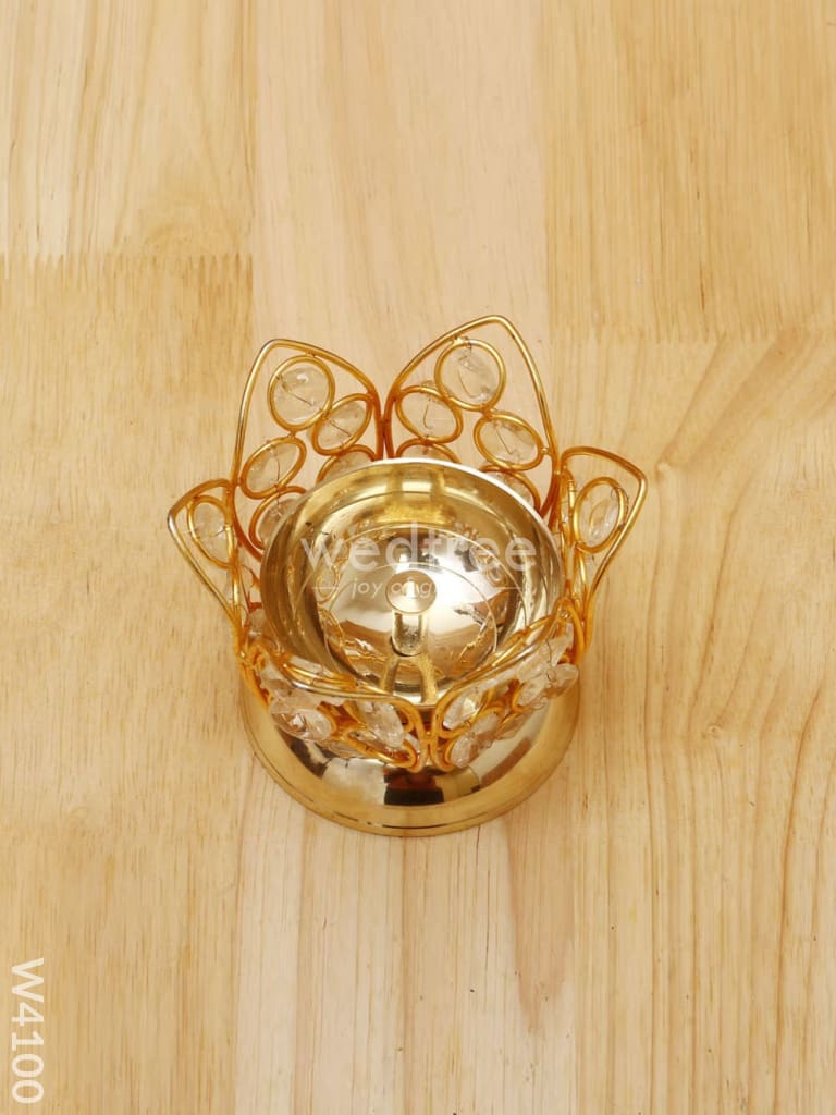 Decorative Lotus shaped Crystal and Brass Diya 2.5 inch - W4100