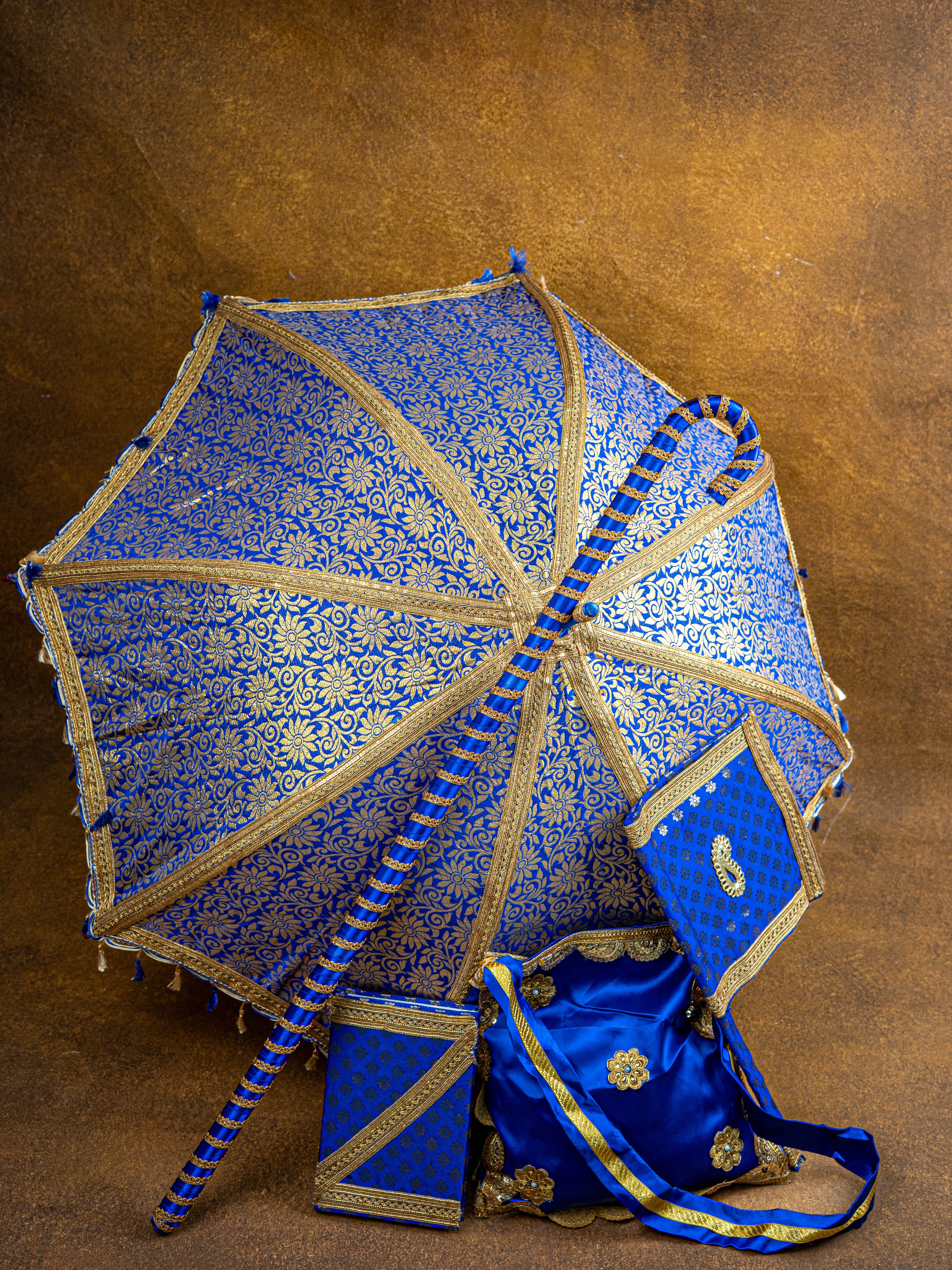 - The set contains an umbrella, walking stick, hand fan, side bag and a book (Sundarakandam from Ramayana).