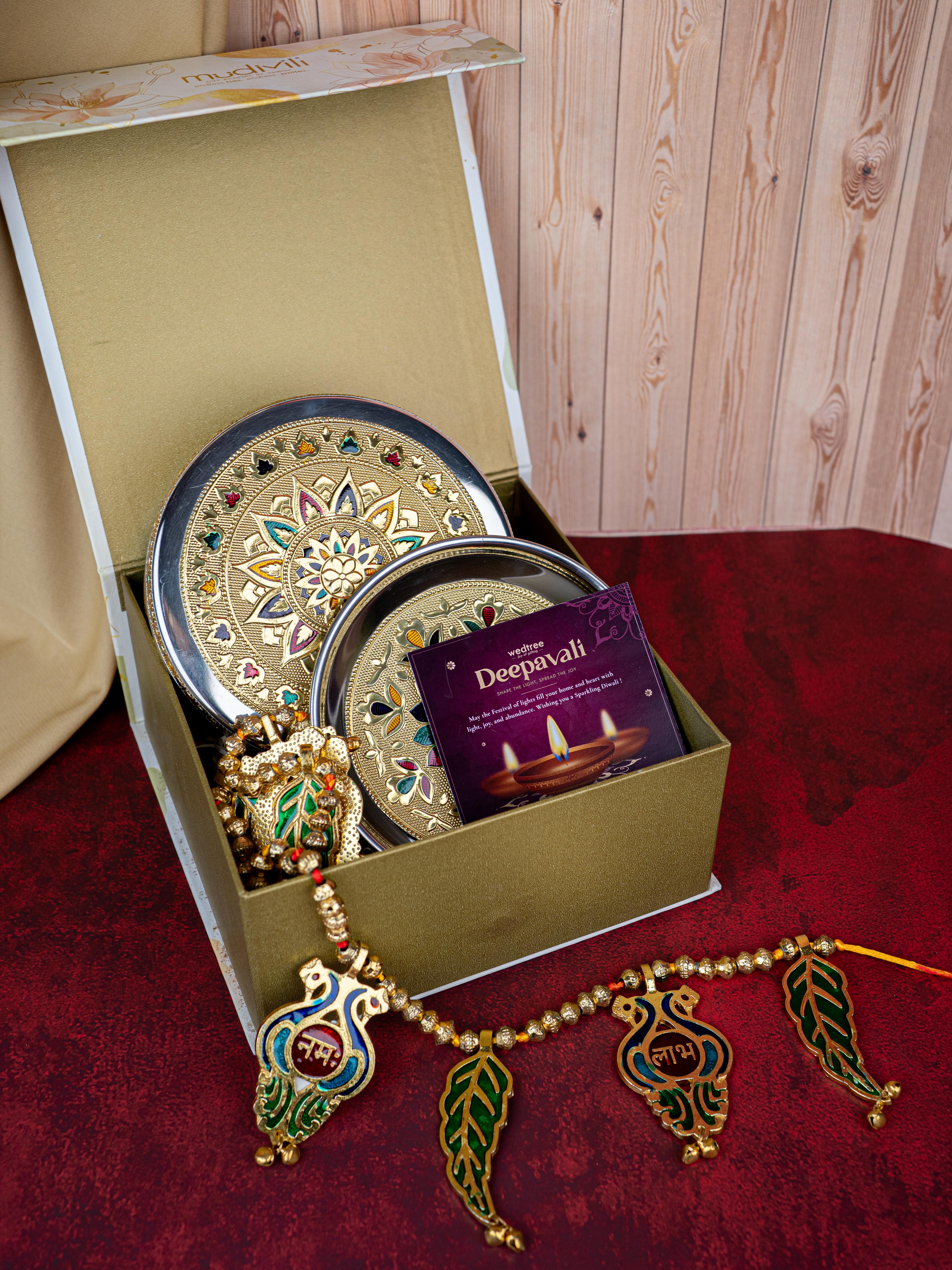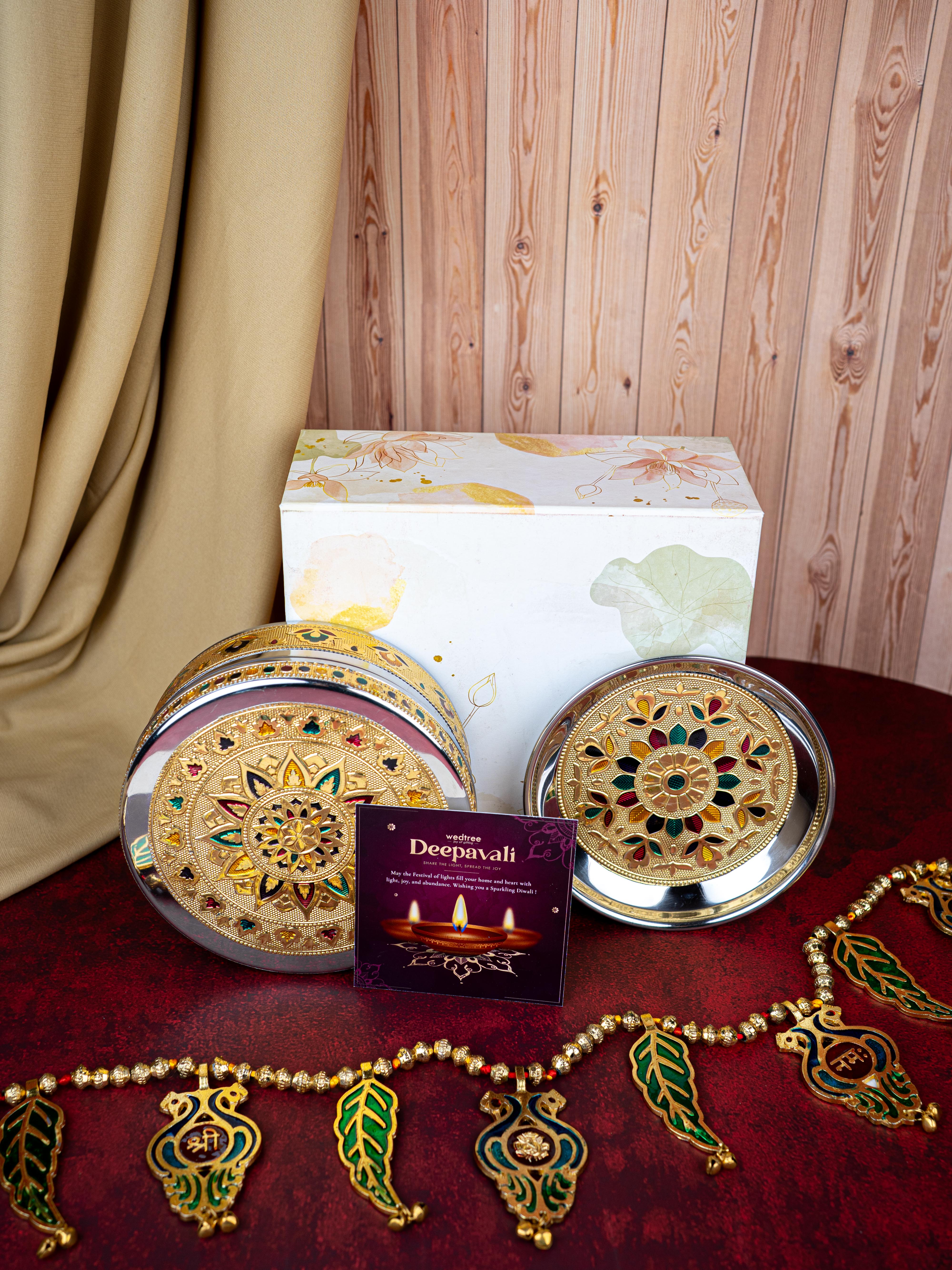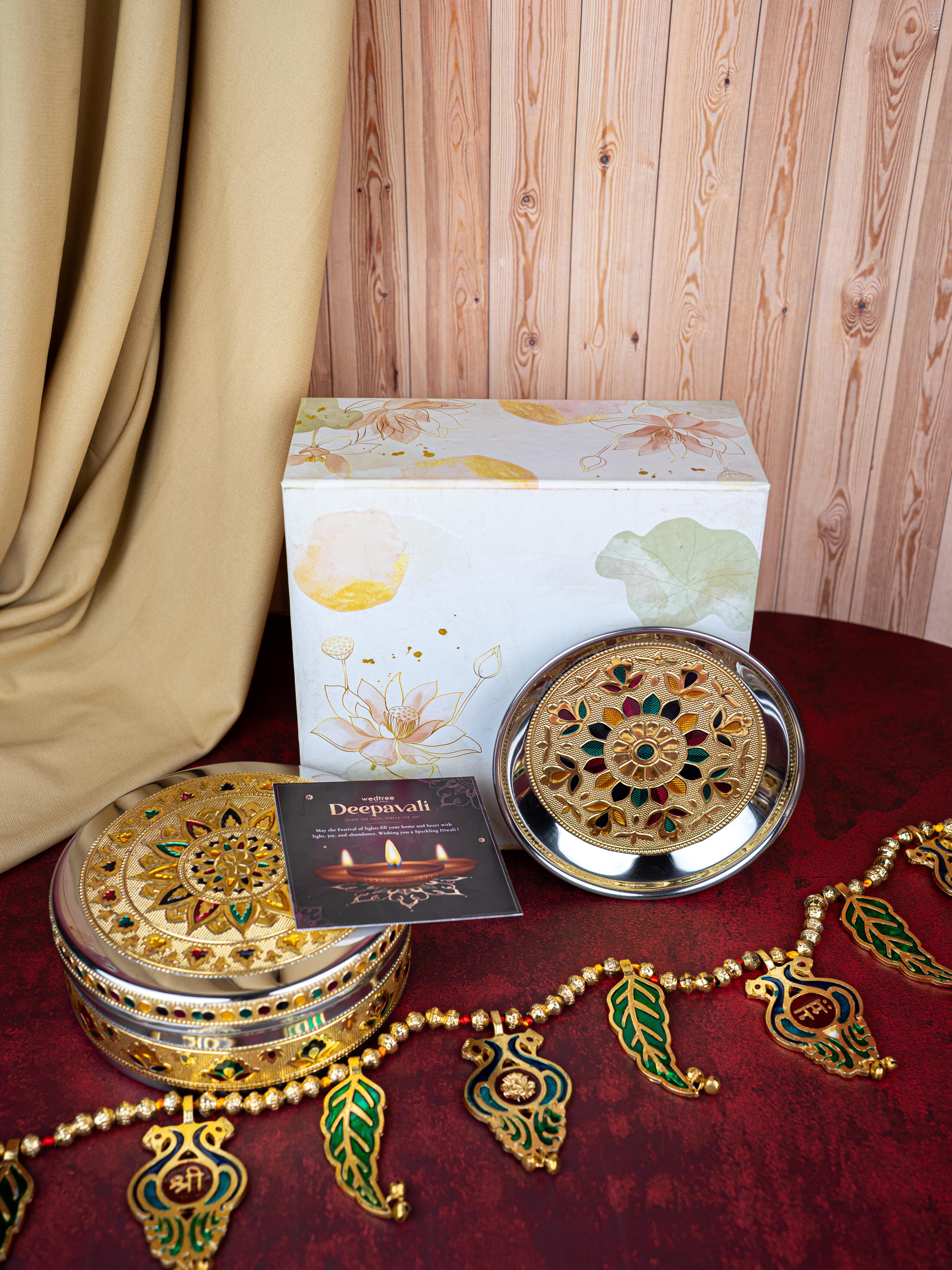 Deepavali: Box with Meenakari Poori Box, Thoran & Plate - WDC0020