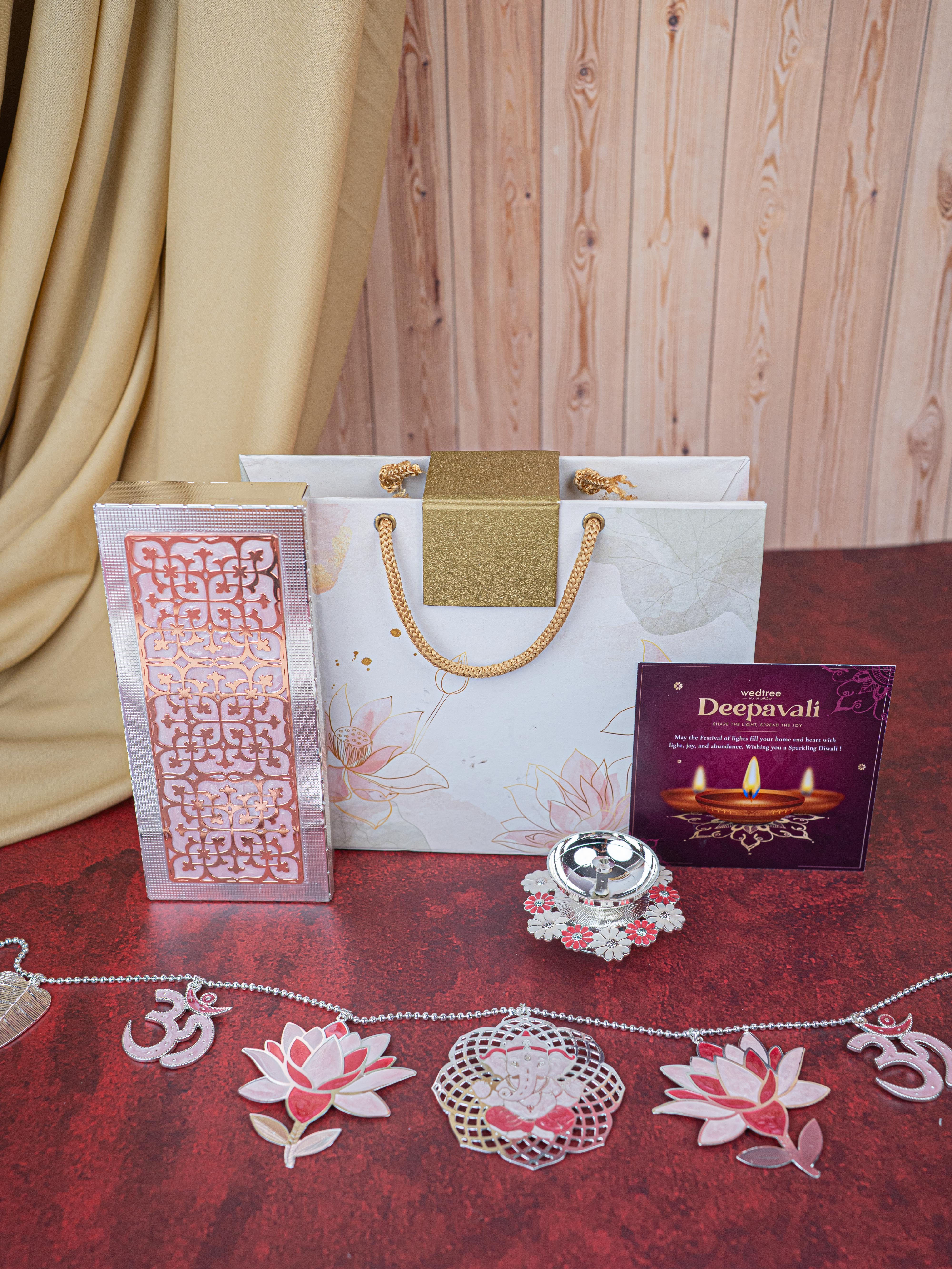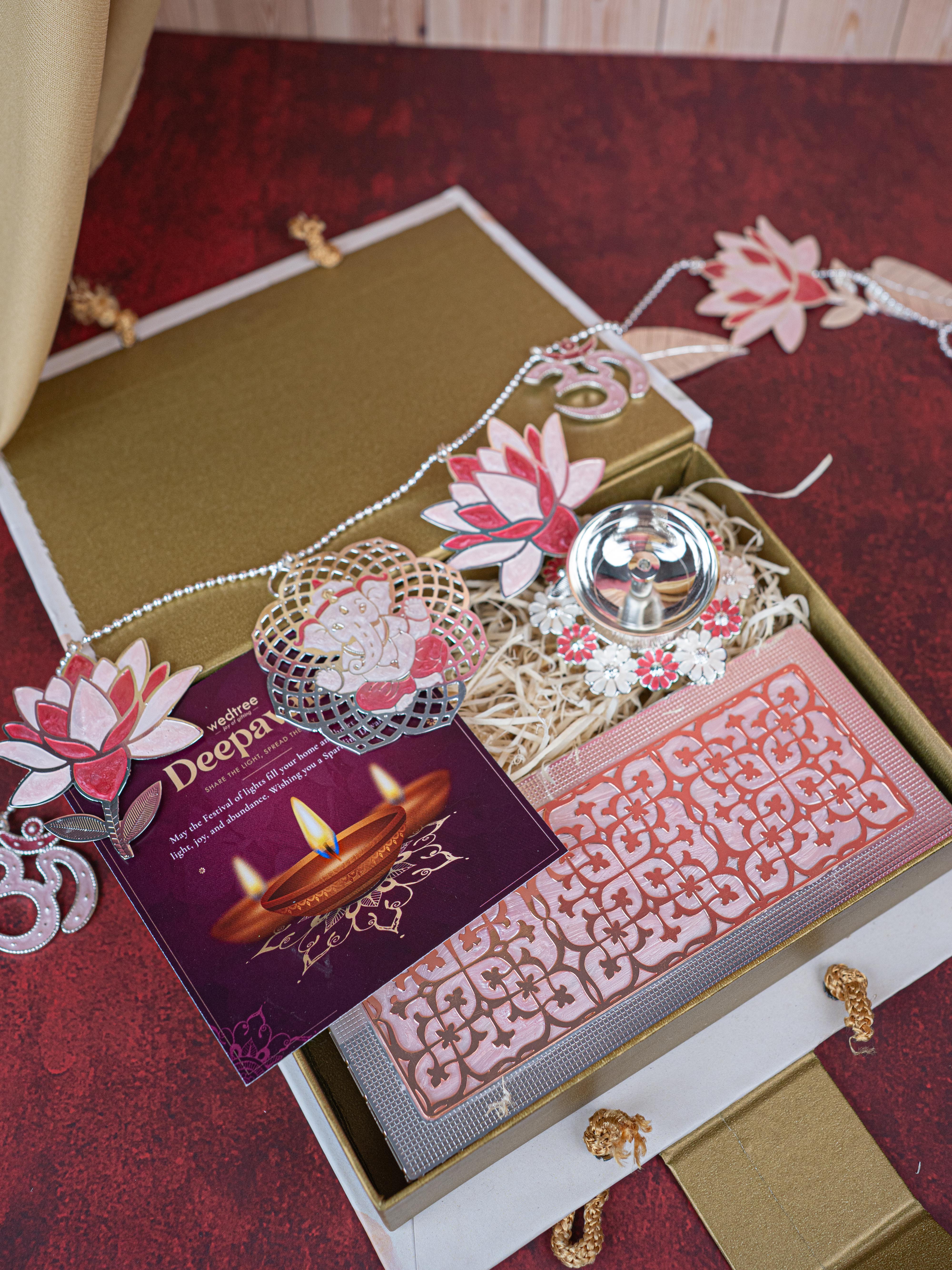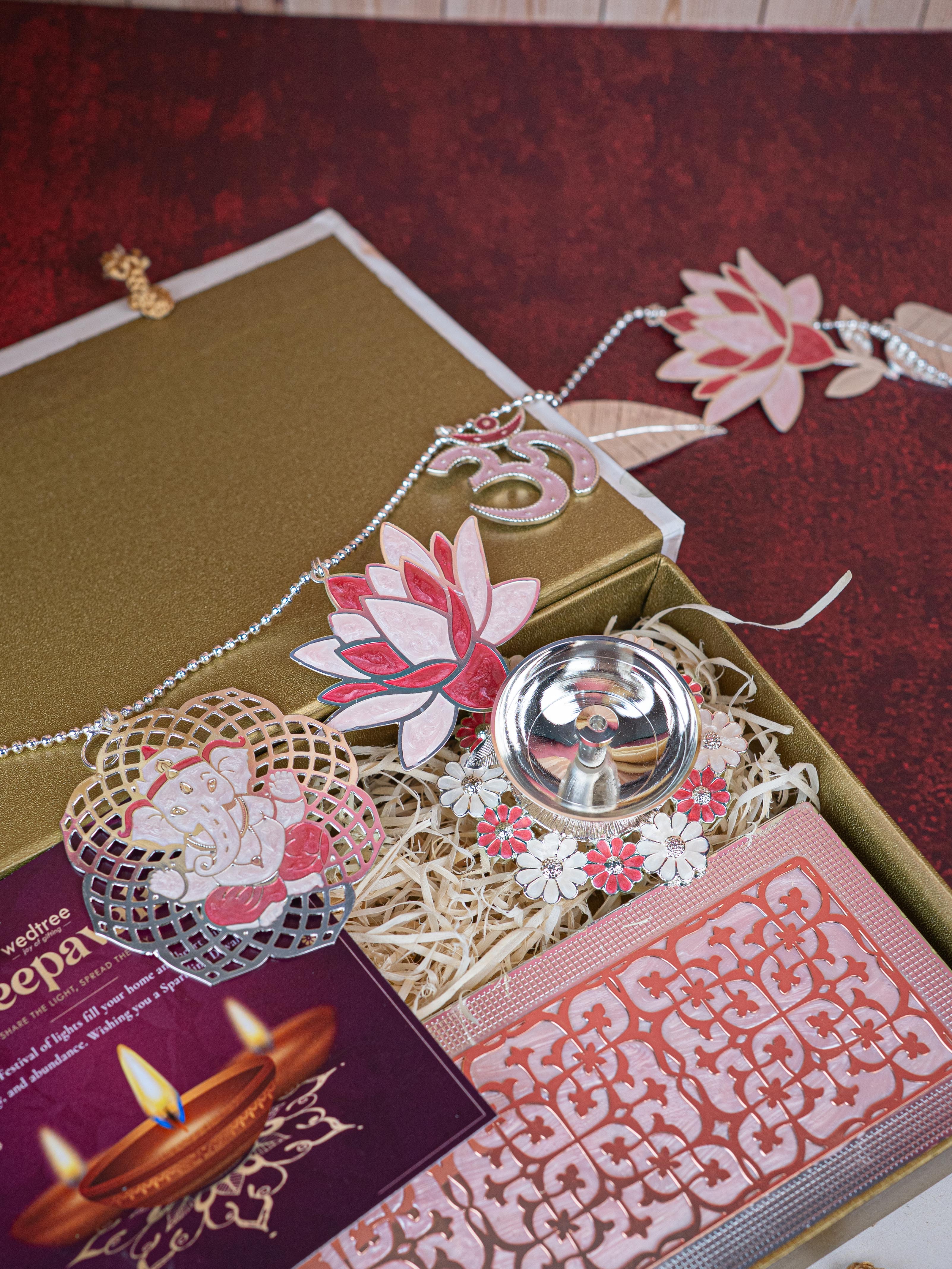 Deepavali: Gift Box with Metal Box, Flower Diya & Lotus Ganesha Thoran - WDC0013