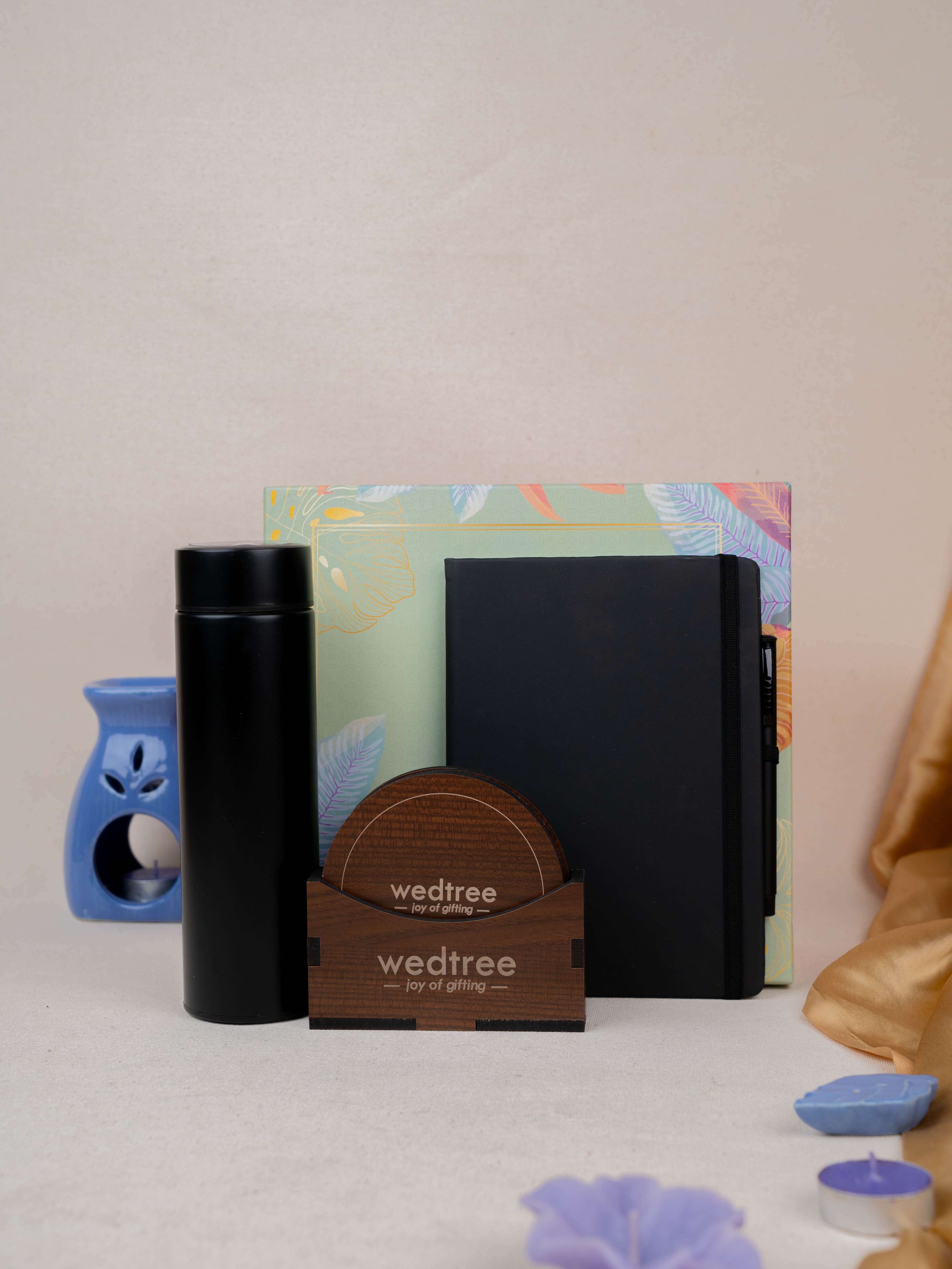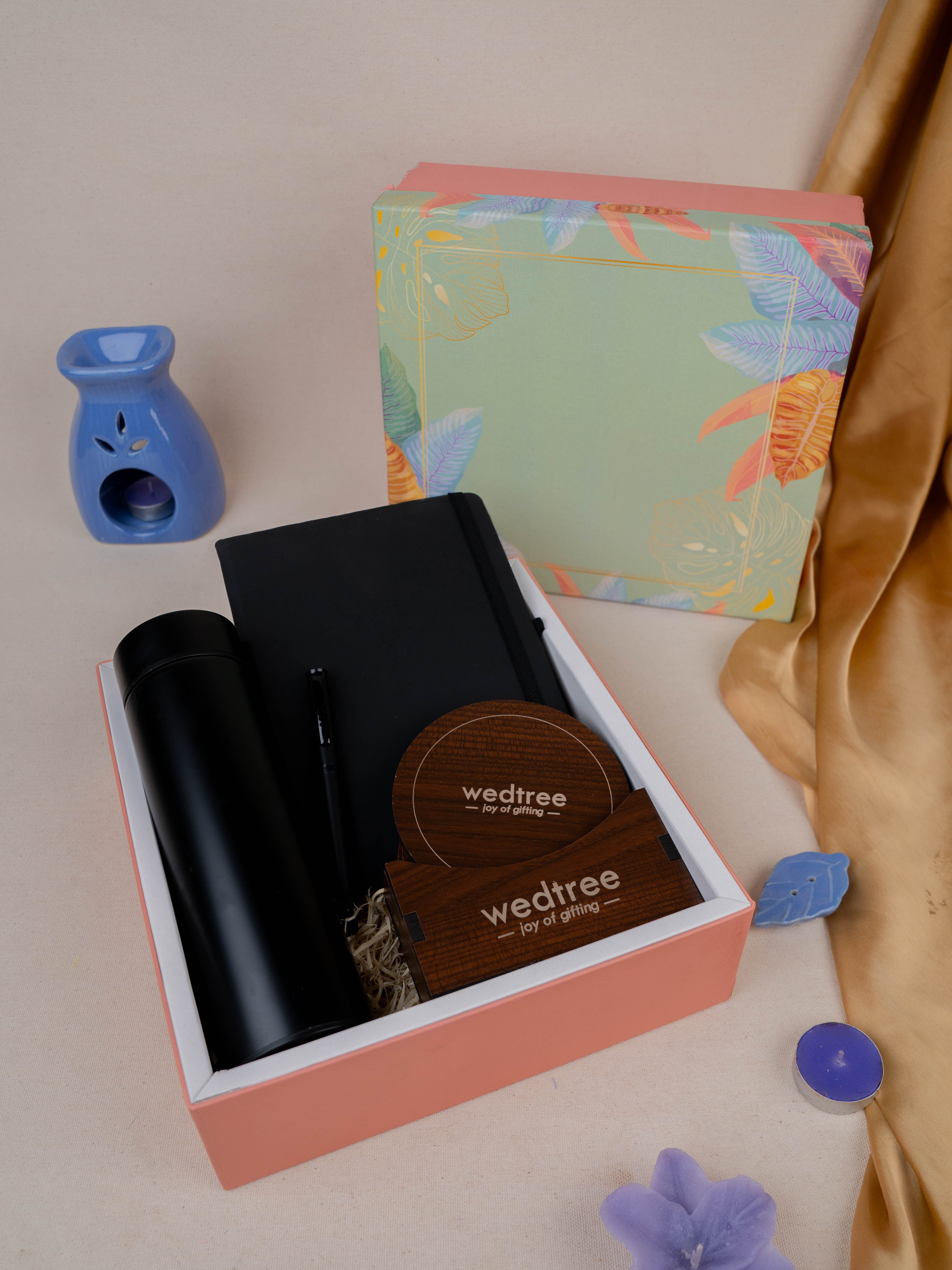 Deepavali: Mudivili Box with Flask & Diary with Pen Set & Tea Coaster - WDC0008