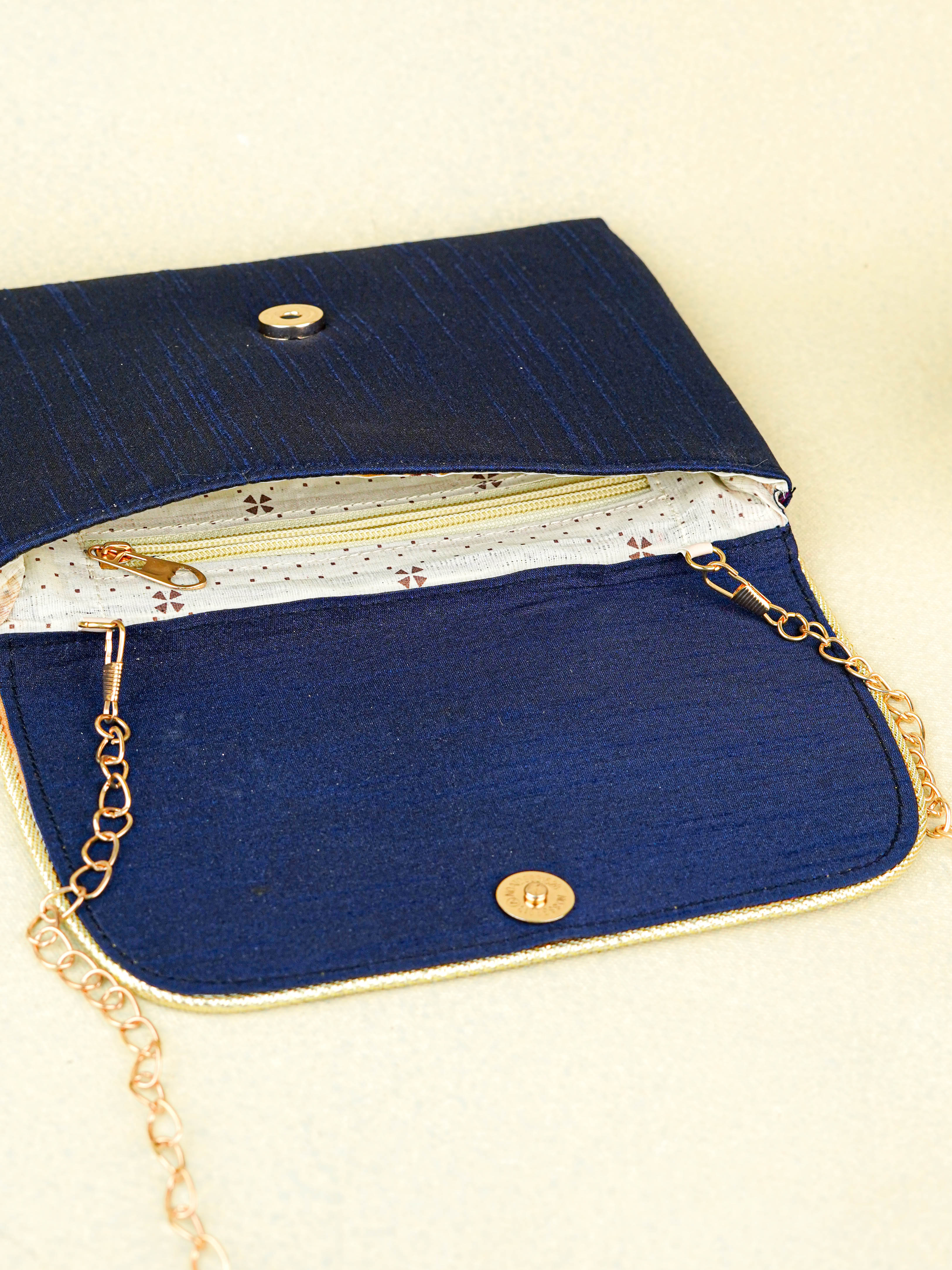 - Complemented by a Sleek Golden Chain Handle, this Clutch Offers Versatility, Allowing it to be Carried as a Handheld Purse or a Stylish Sling Bag.