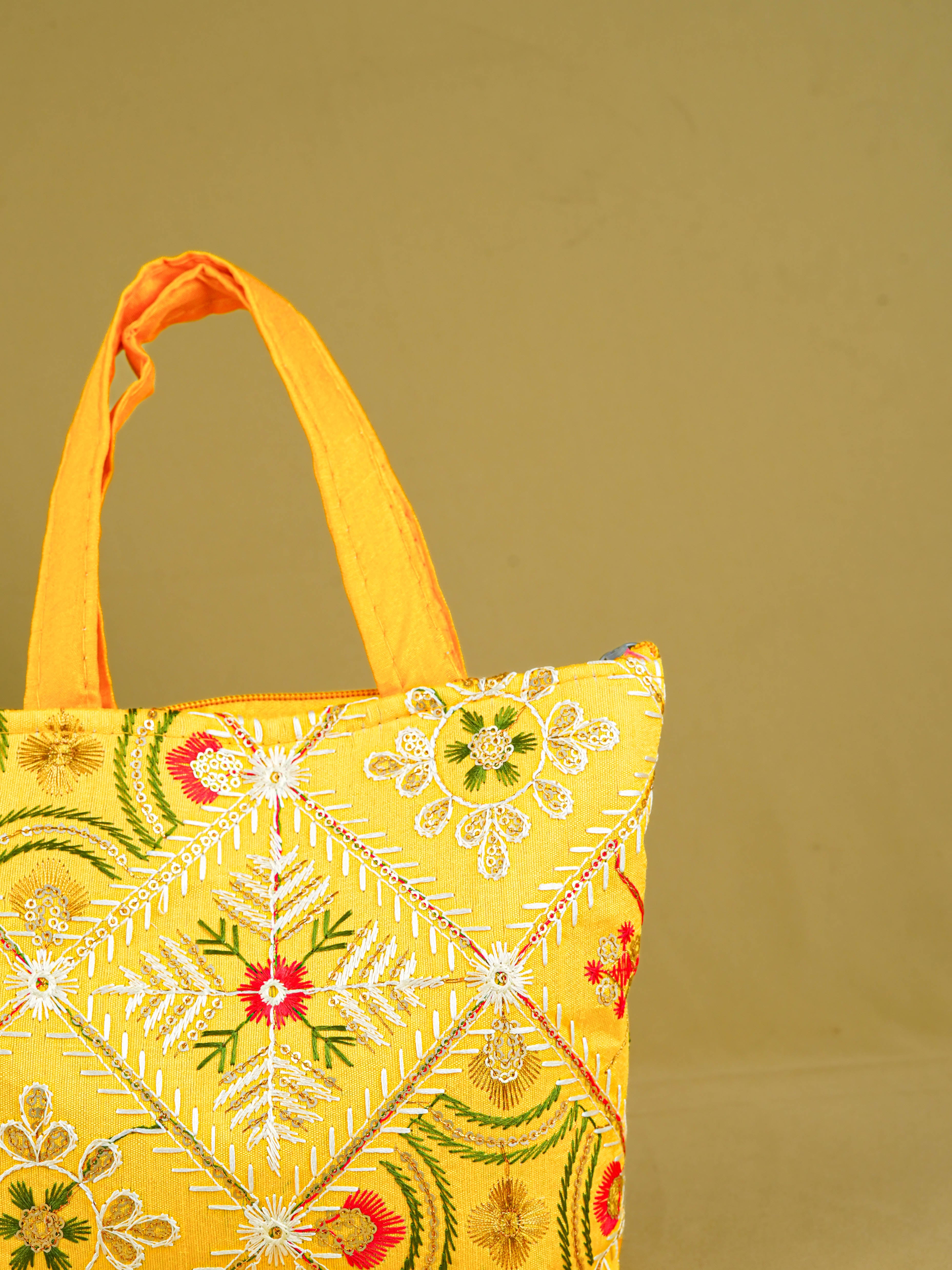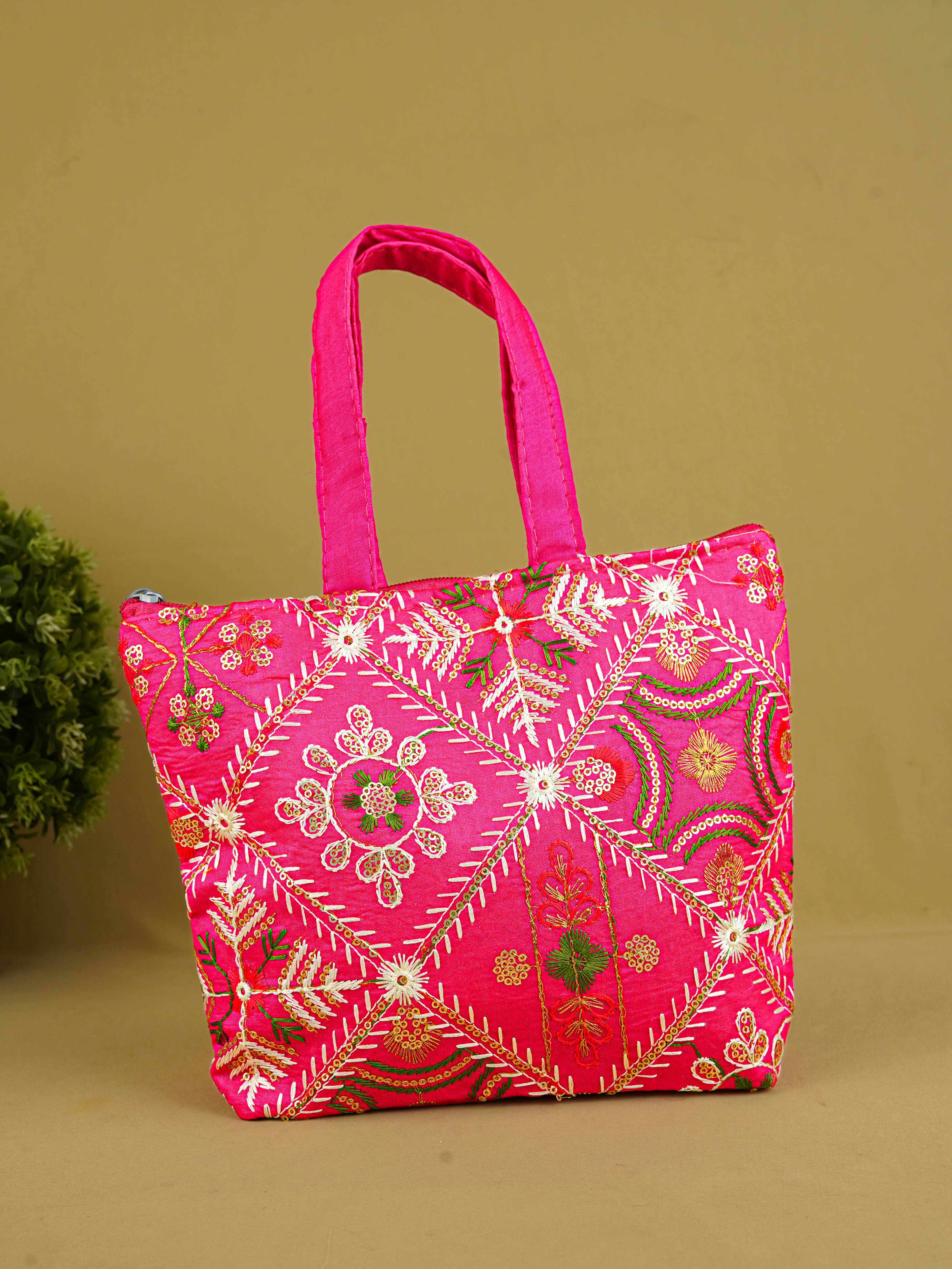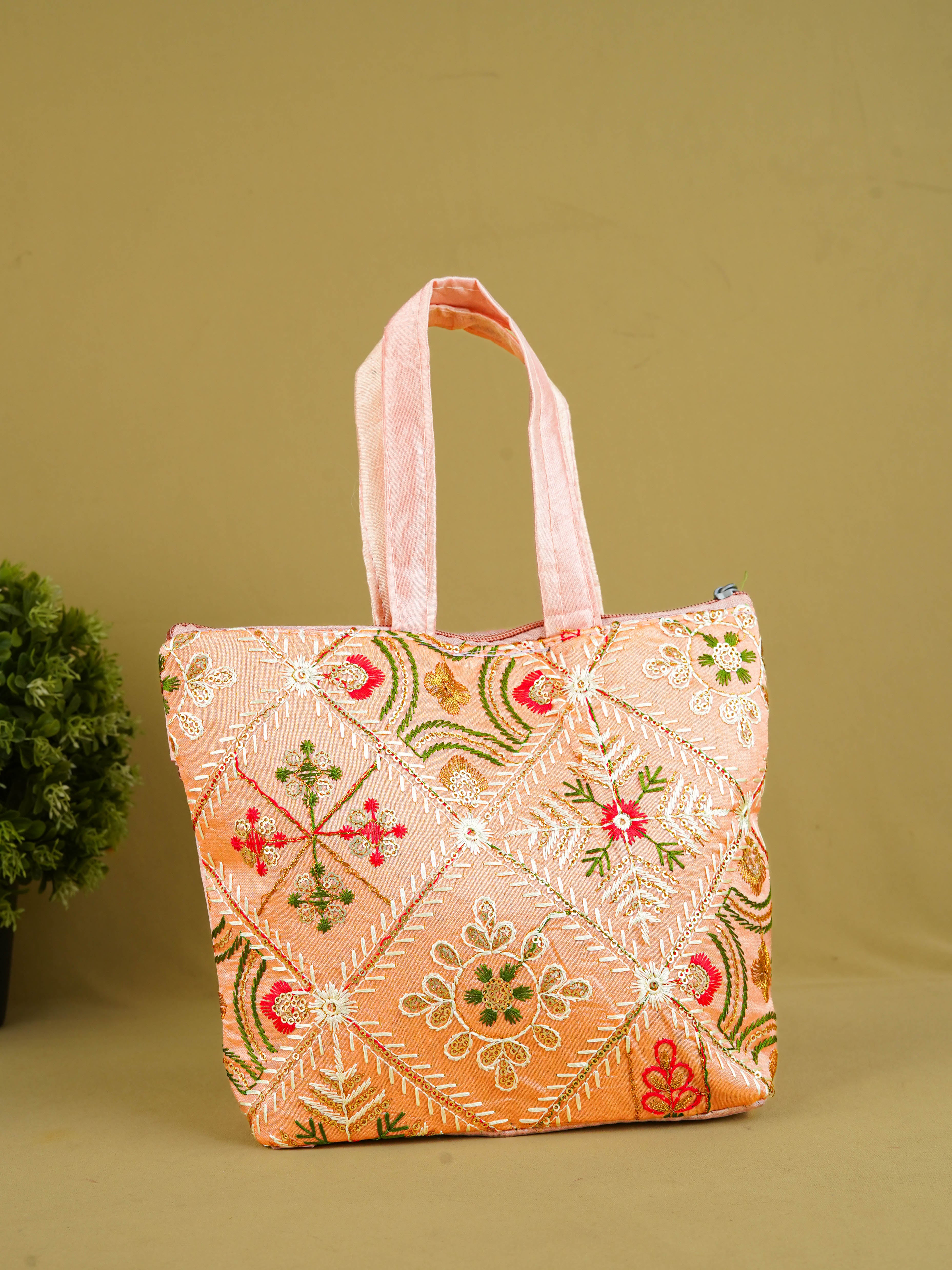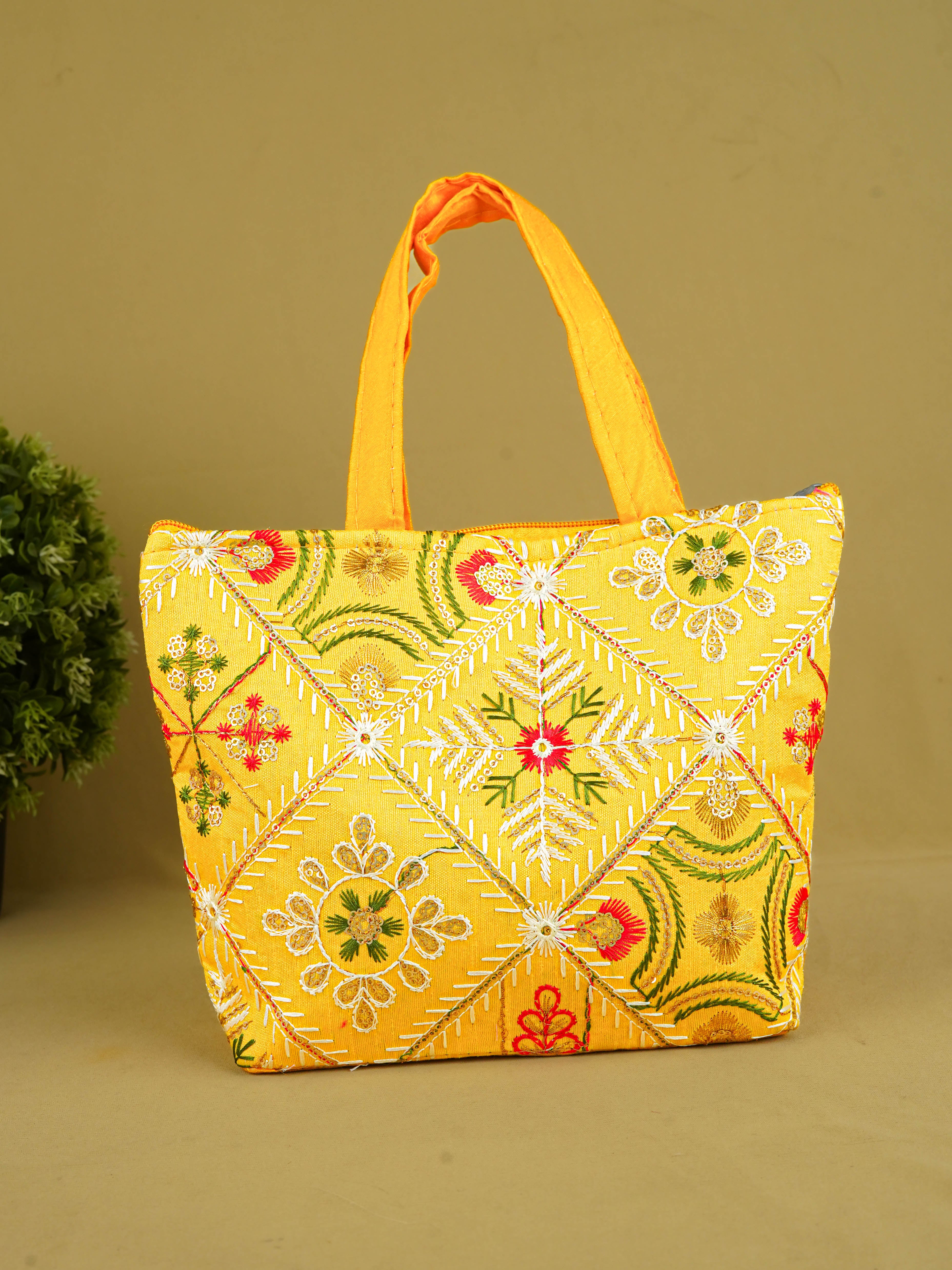 - Check out this lovely and cute return gift handbag that is embellished with Embroidery Design all throughout.