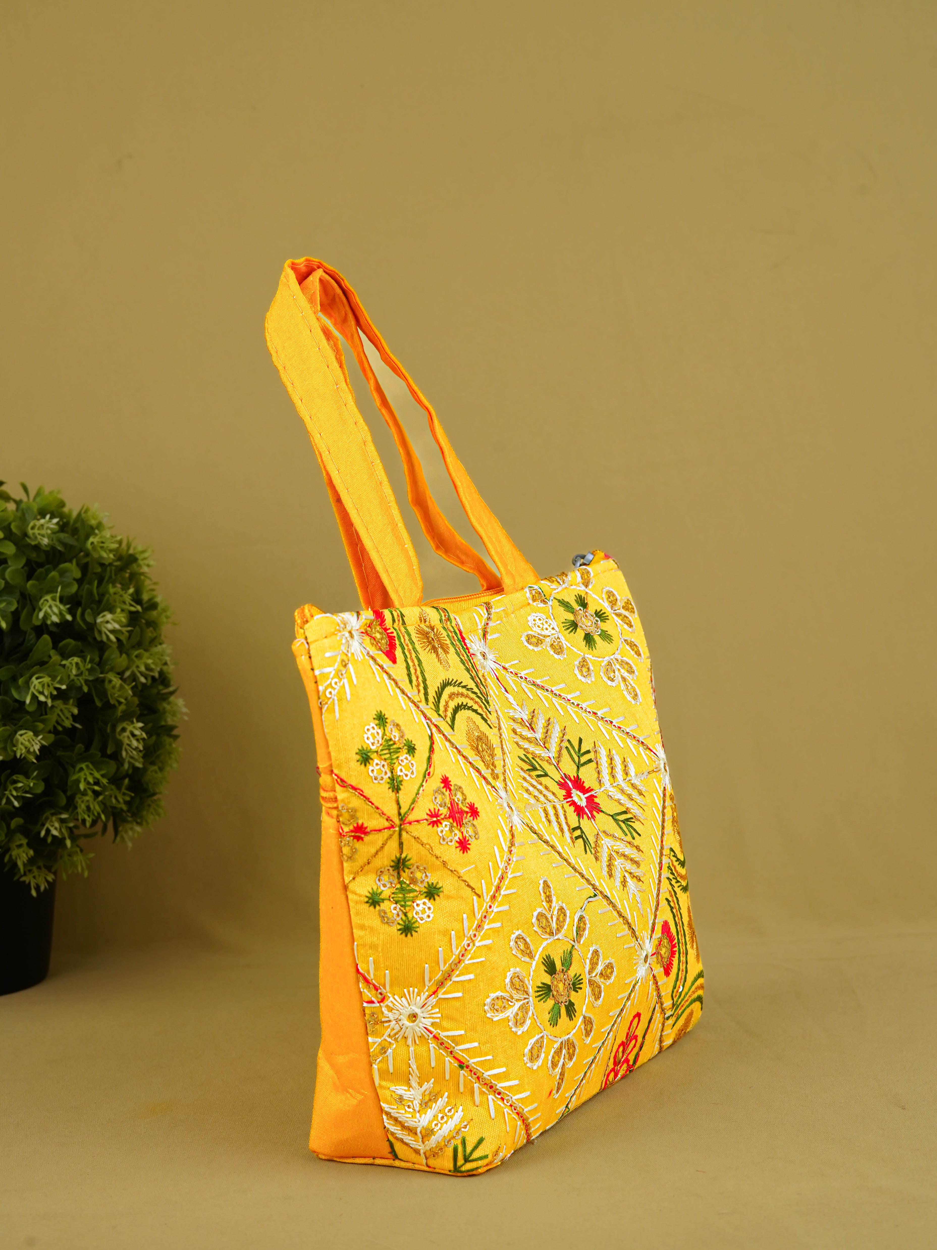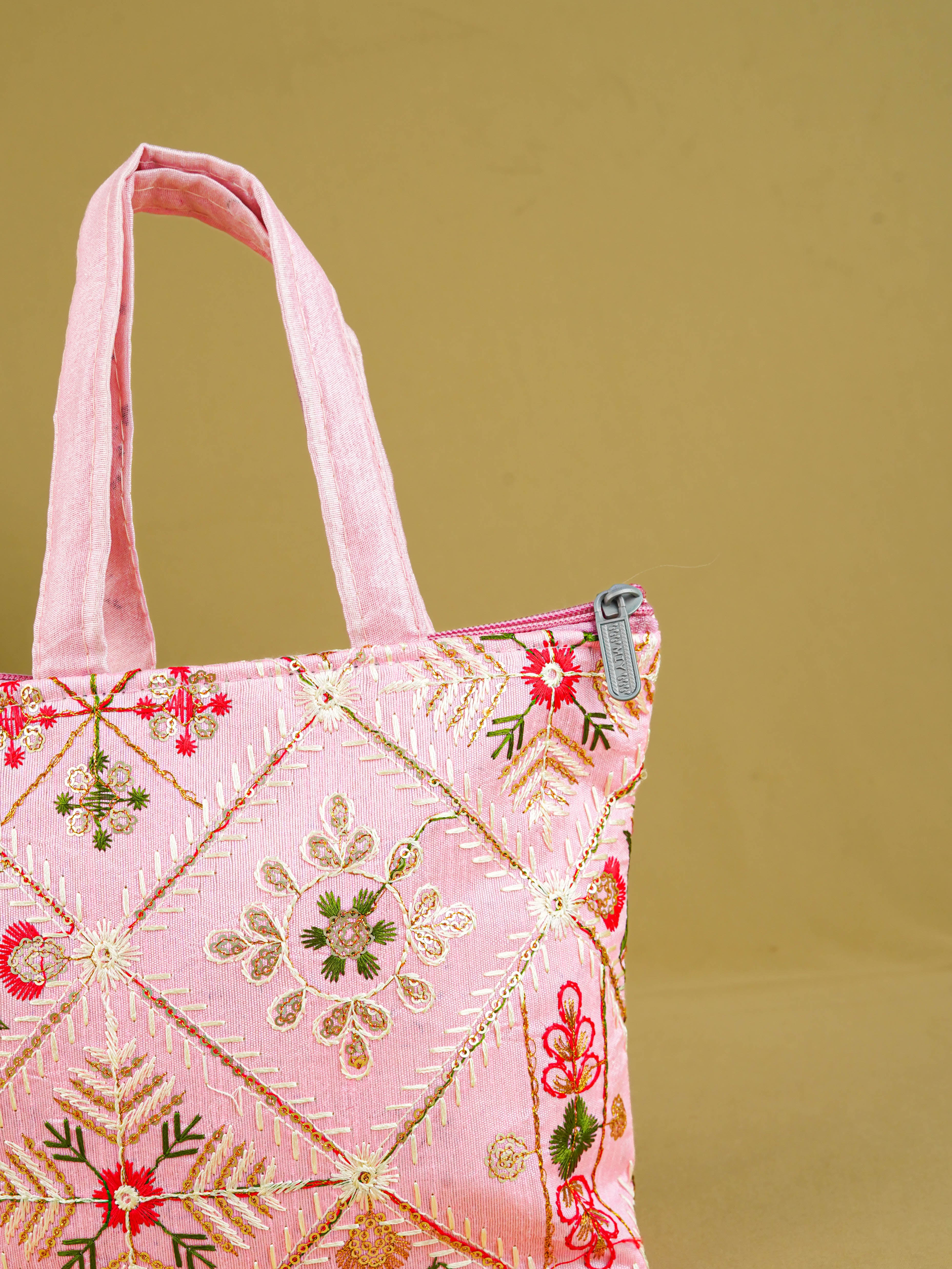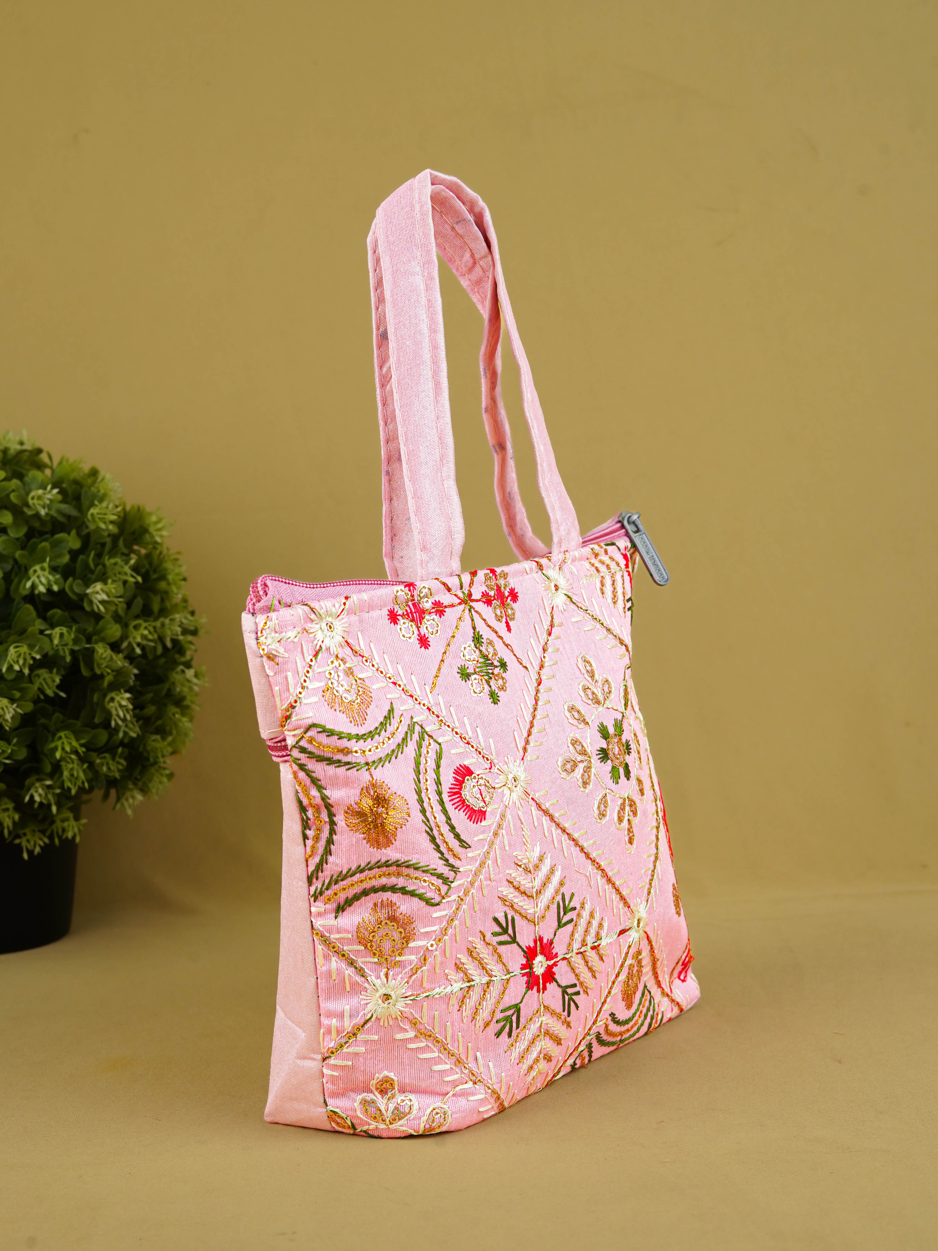 - Check out this lovely and cute return gift handbag that is embellished with Embroidery Design all throughout.