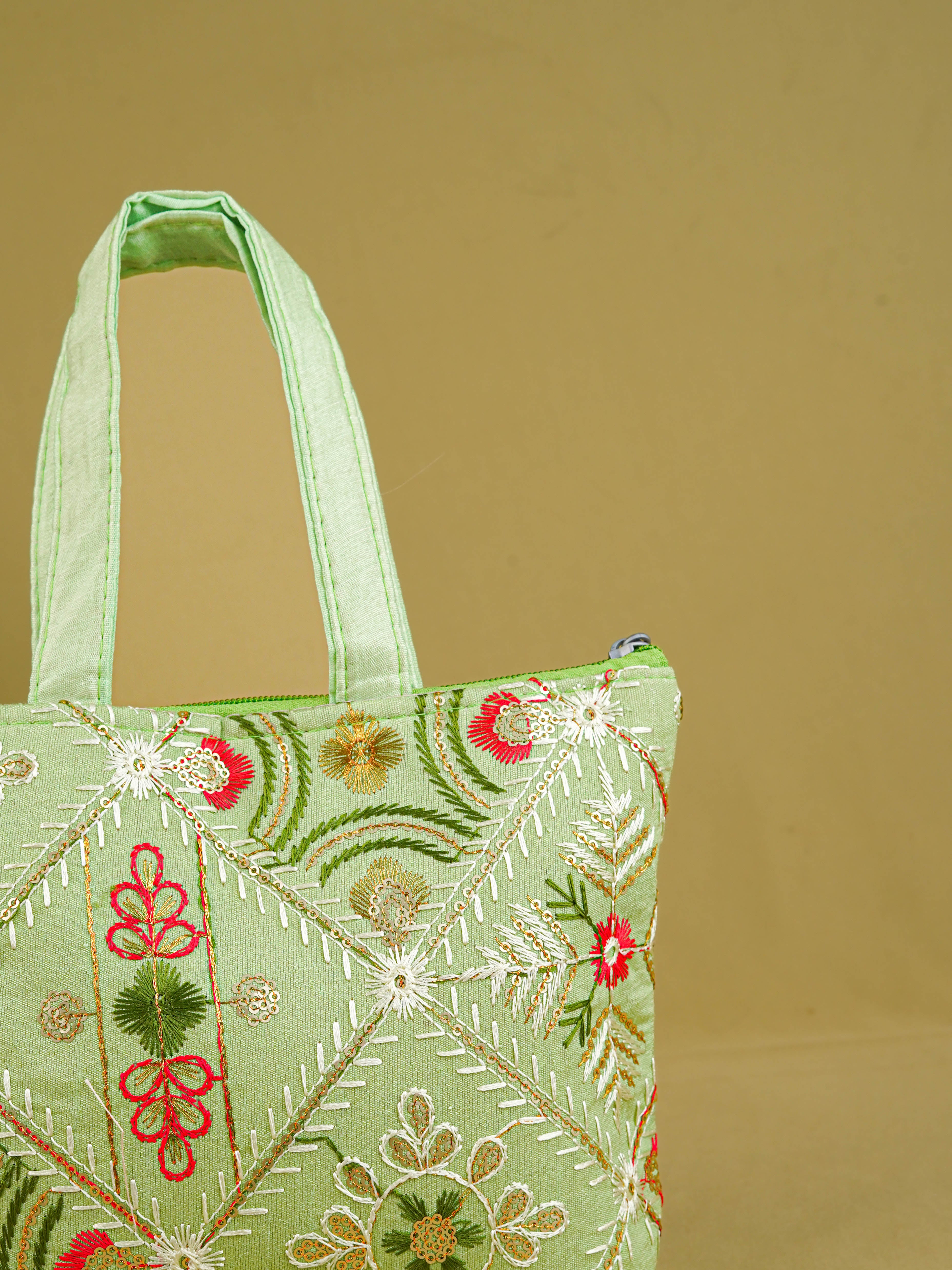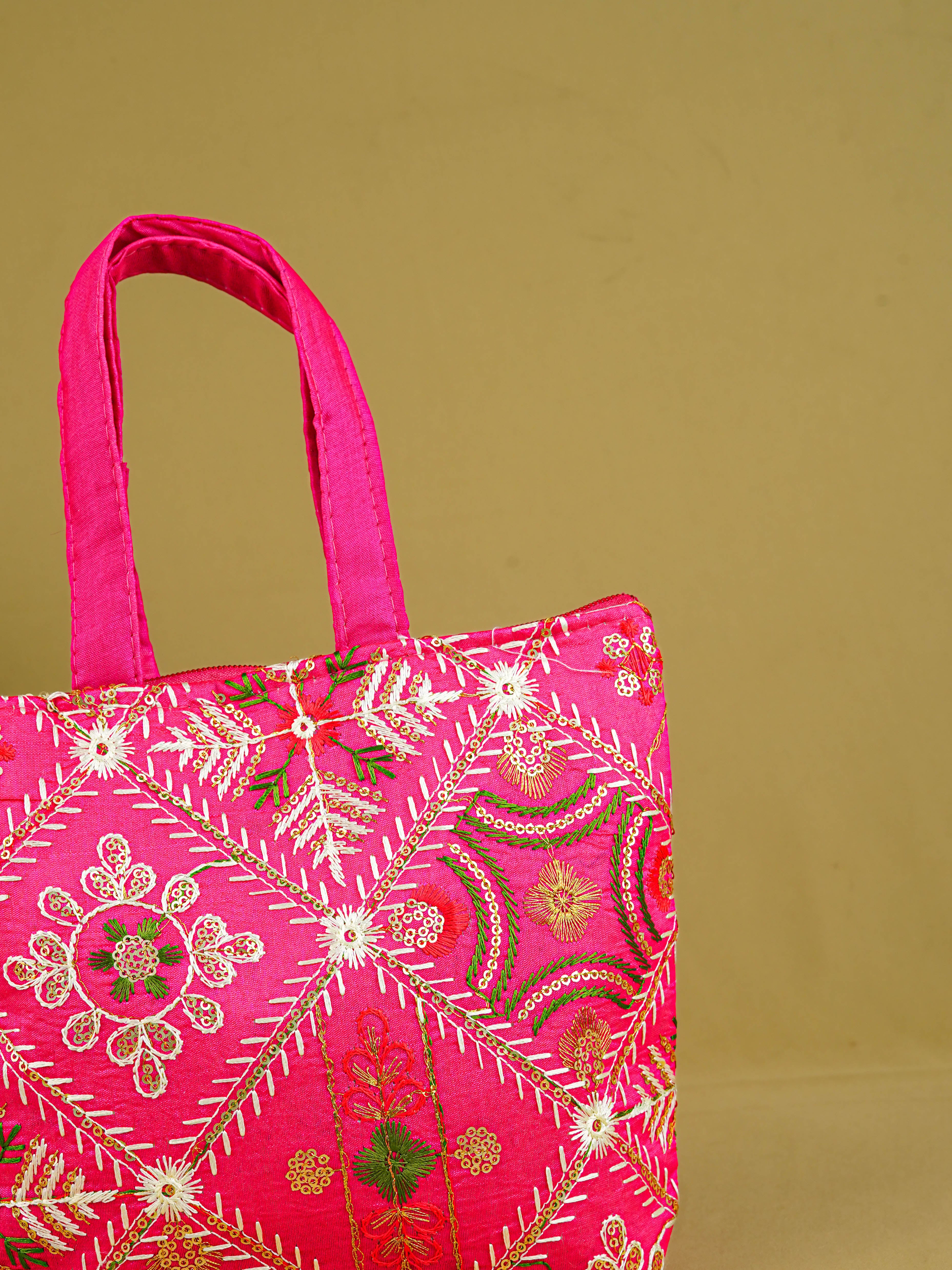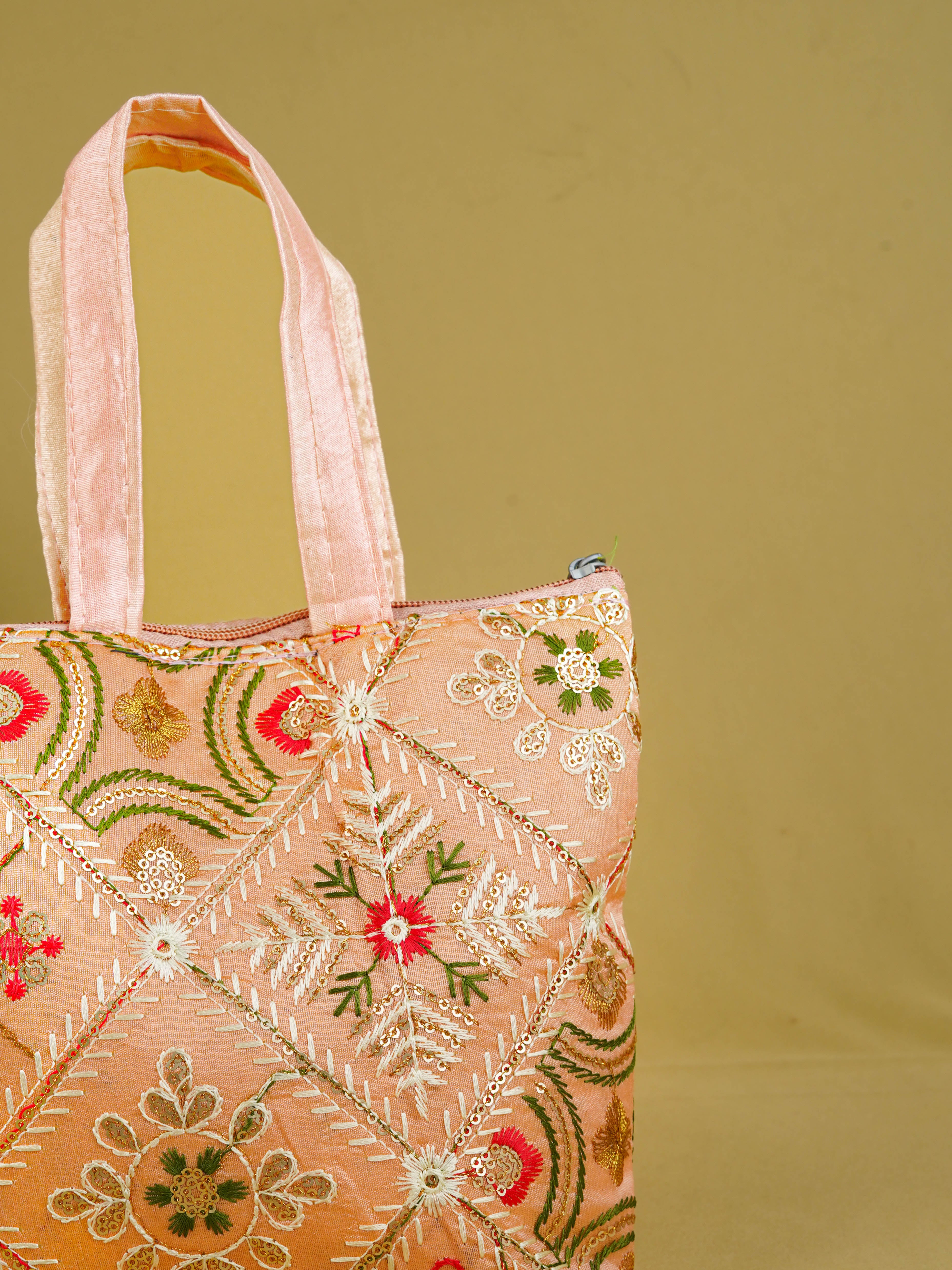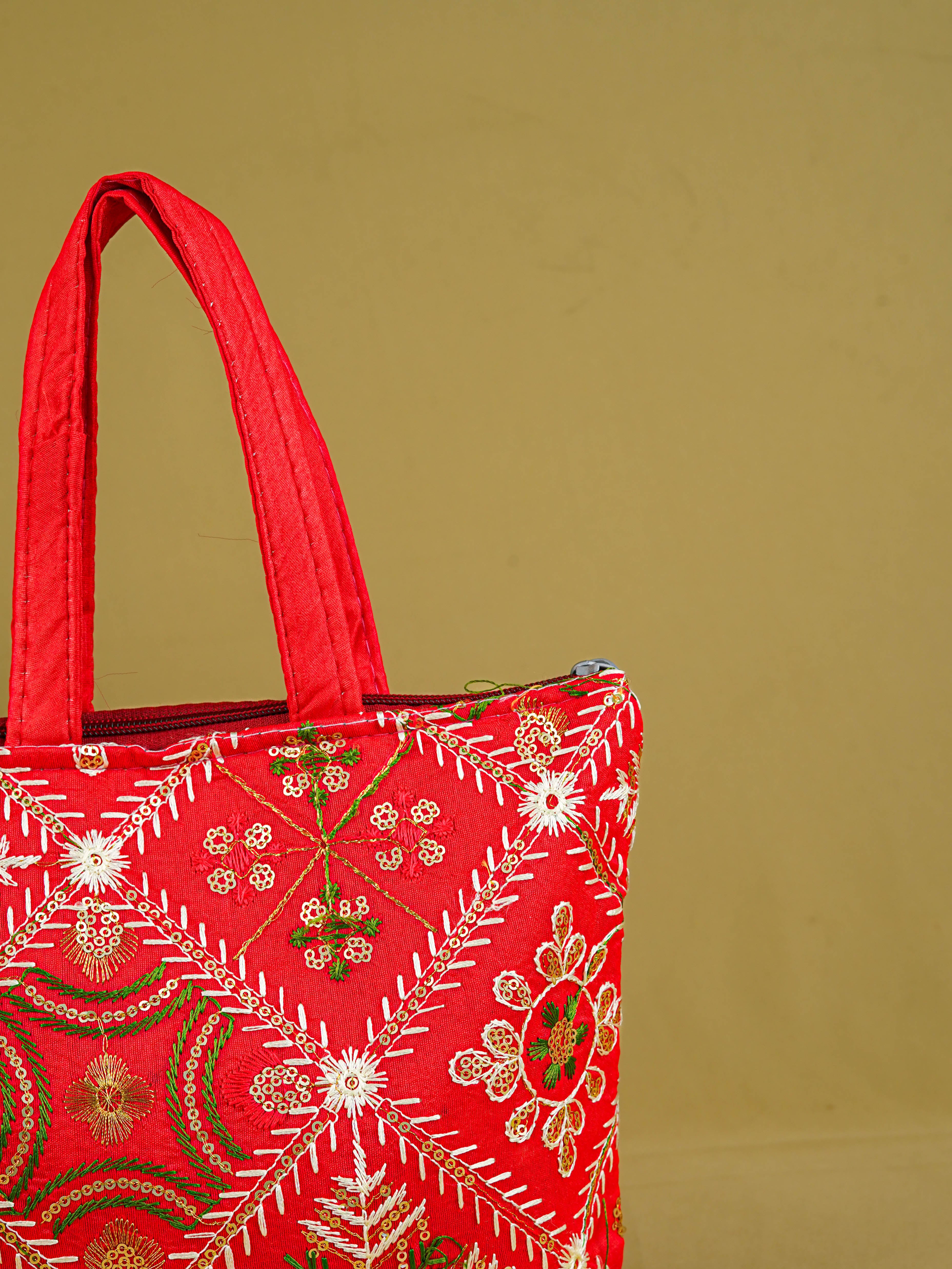 - Check out this lovely and cute return gift handbag that is embellished with Embroidery Design all throughout.